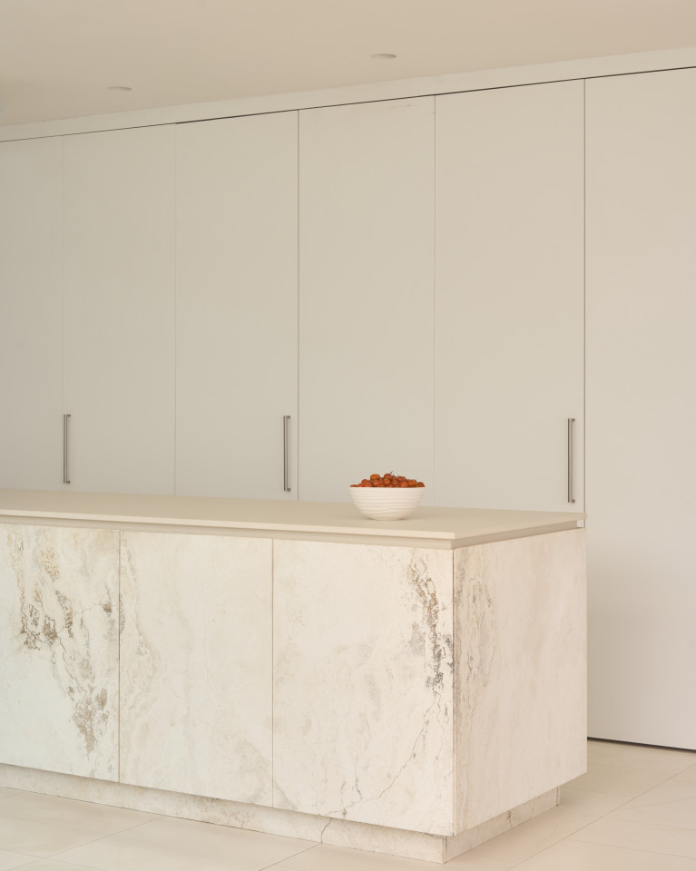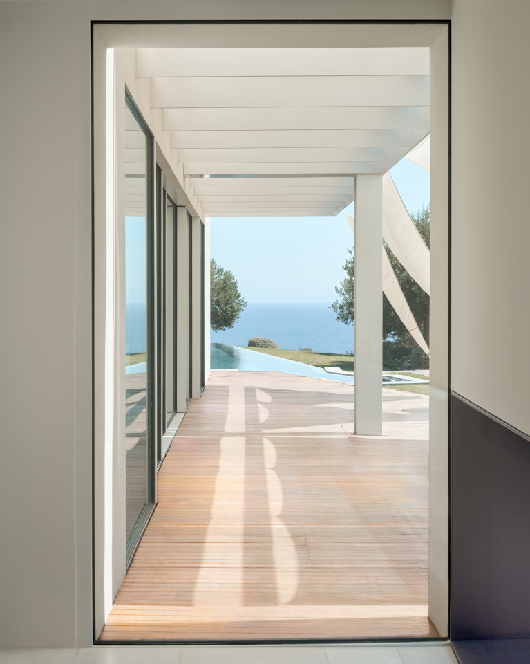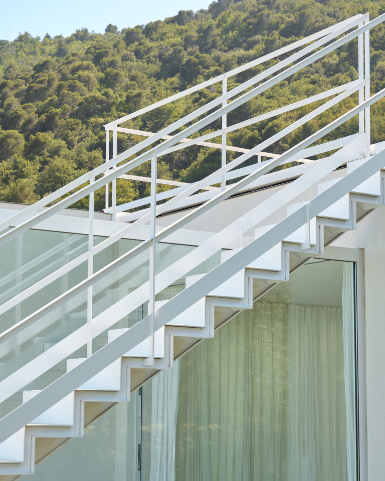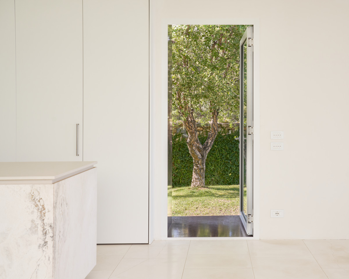 Die Raumaufteilung von Amadriade fließt organisch, wobei jeder Raum sanft in den nächsten übergeht. Die Farbpalette ist einheitlich - gedämpft, strukturiert und elegant - und bietet eine zeitlose und vielseitige Kulisse für die Erzählung von Geschichten. Weite Öffnungen verbinden den Innenraum mit der umgebenden Landschaft und schaffen Momente, in denen Architektur und Natur mühelos in einer Aufnahme verschmelzen.