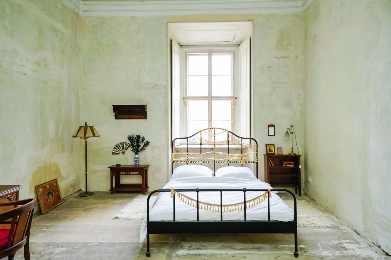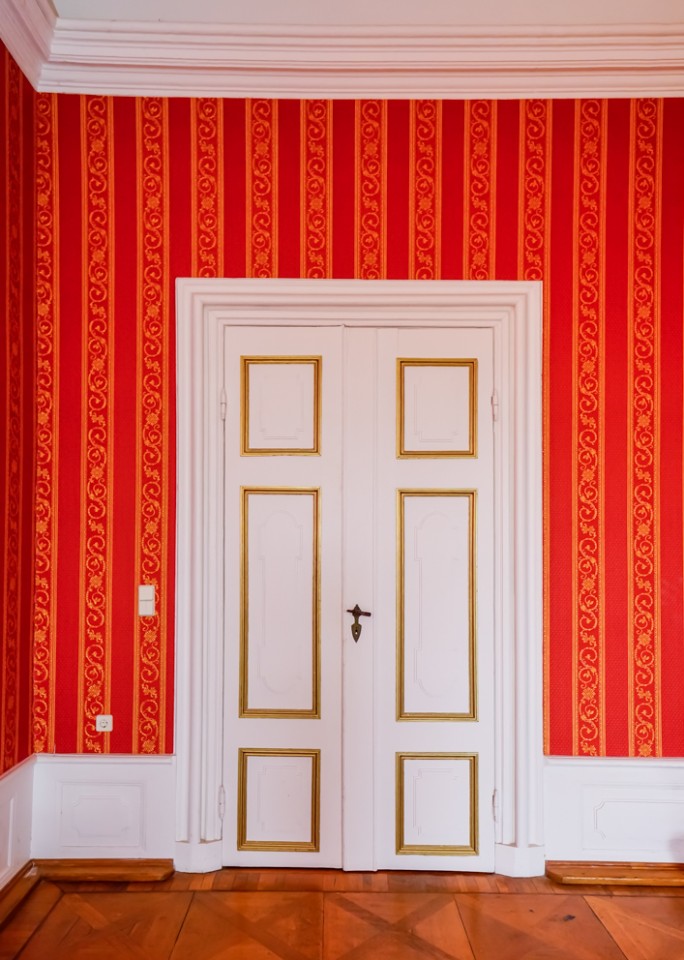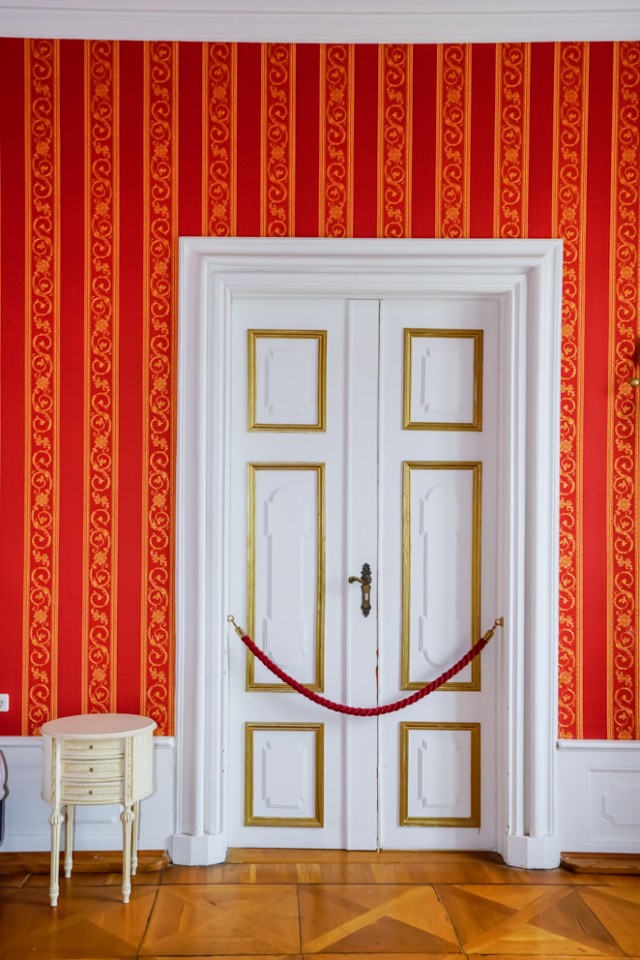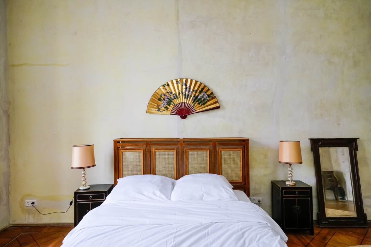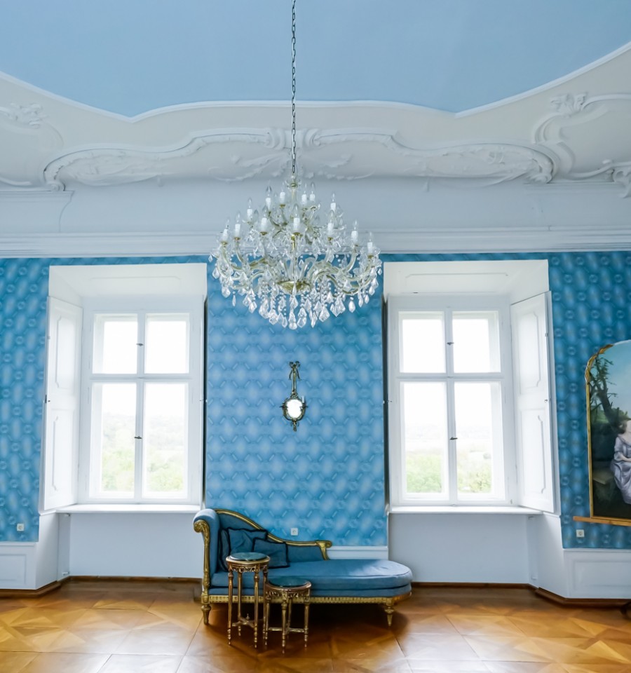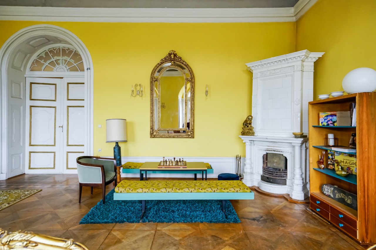 Viele der Zimmer haben blau-weiße, pastellfarbene Wände oder leidenschaftliche Rot- und Goldtöne, und an den Altbaudecken sind noch viele Gemälde und Stuckarbeiten erhalten.