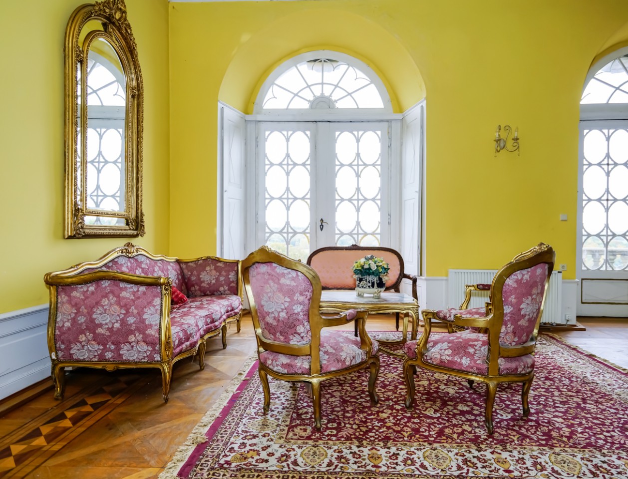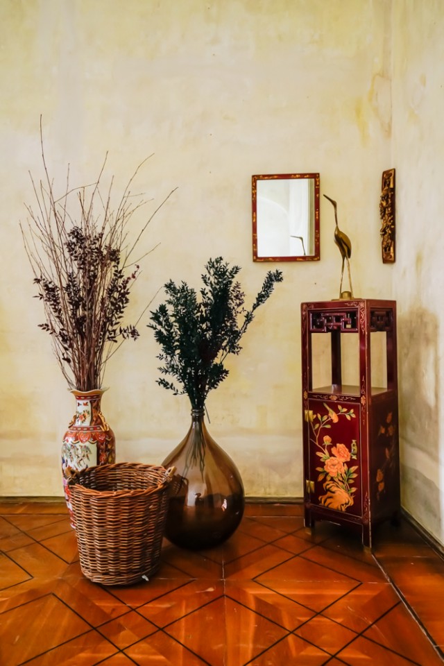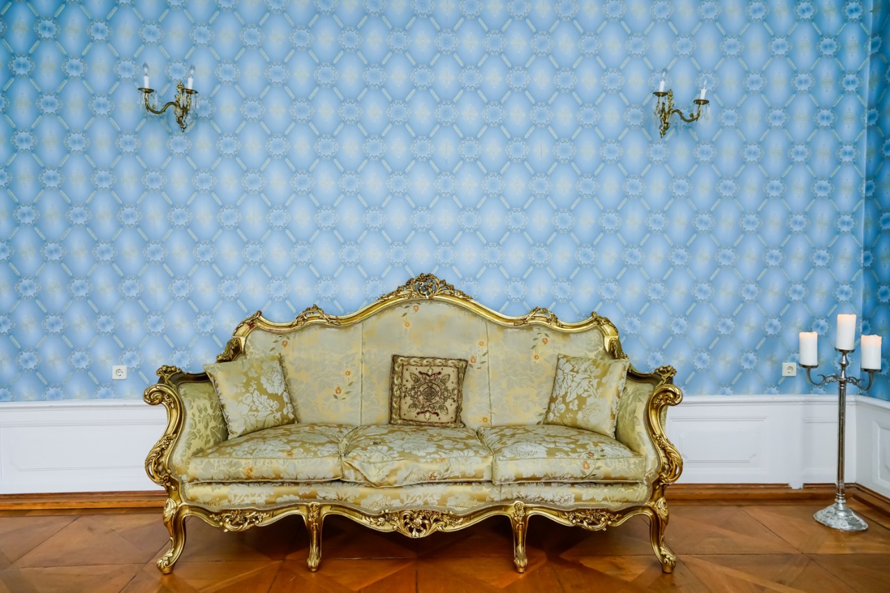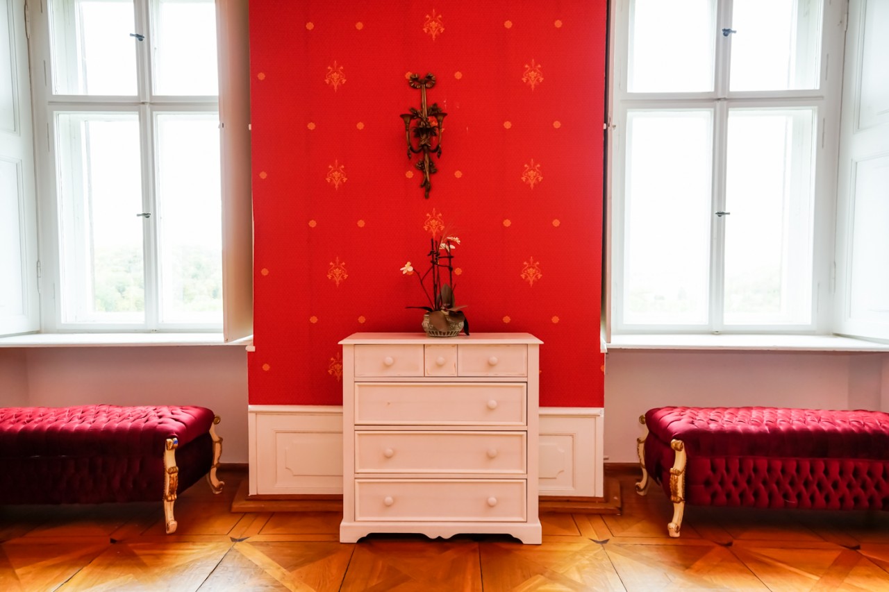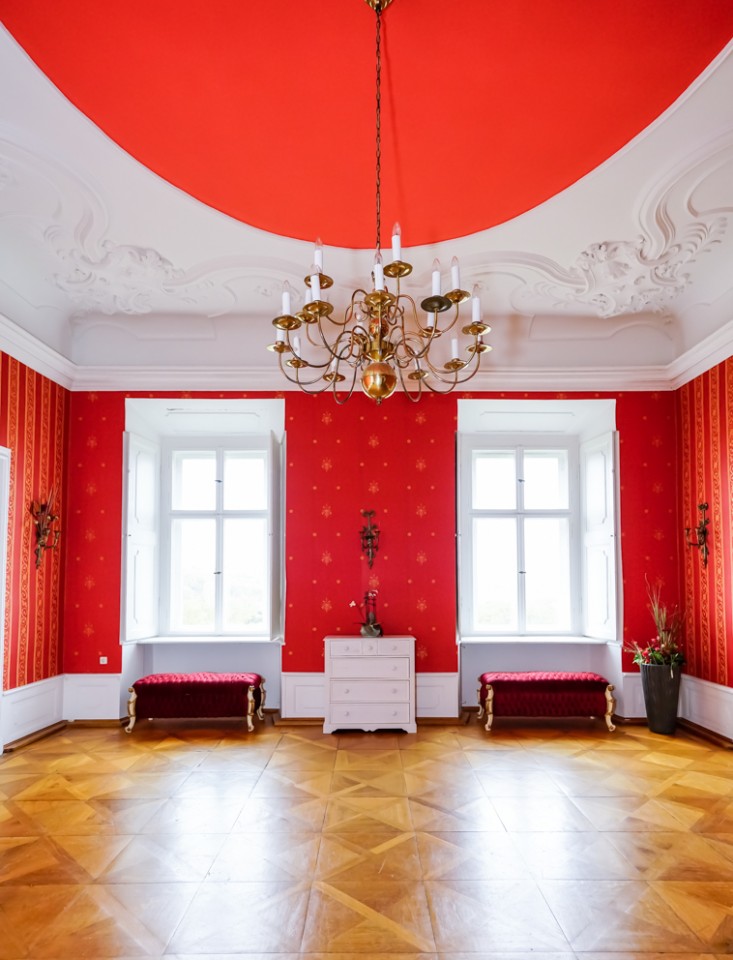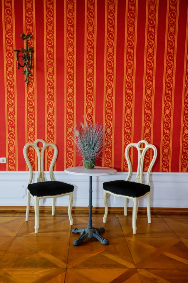 Viele der Zimmer haben blau-weiße, pastellfarbene Wände oder leidenschaftliche Rot- und Goldtöne, und an den Altbaudecken sind noch viele Gemälde und Stuckarbeiten erhalten.