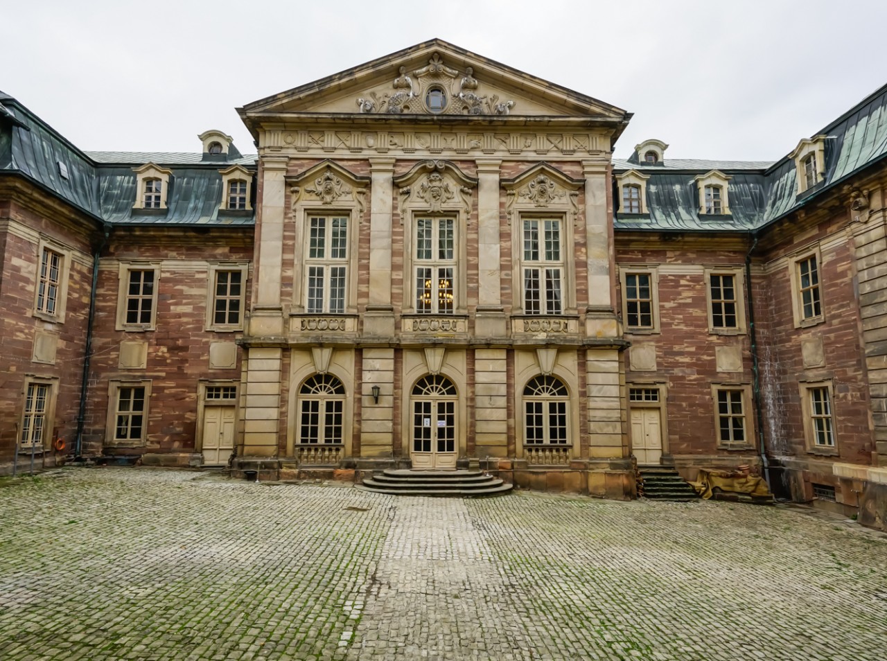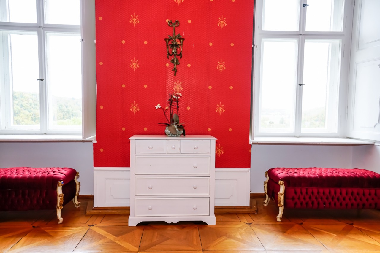 Das Schloss hat 18 Zimmer, 4 Etagen, darunter einen Ballsaal, einen Keller und ein Untergeschoss. Ein Innenhof und eine italienische Terrasse überblicken die Gärten und die Ruinen eines alten Teehauses, das zu den "Historischen Parks in Anhalt" gehört. Geschmückt mit 11 Steinfiguren, die Göttern, Göttinnen und Fabelwesen ähneln (von Joseph Blühme in den Jahren 1726-291 geschaffen), bewahrt das Schloss sein königliches Aussehen und Gefühl, was zum Teil auf die verschiedenen Besitzer zurückzuführen ist, darunter Fürsten und Kaiser, die es in der Vergangenheit hatte.