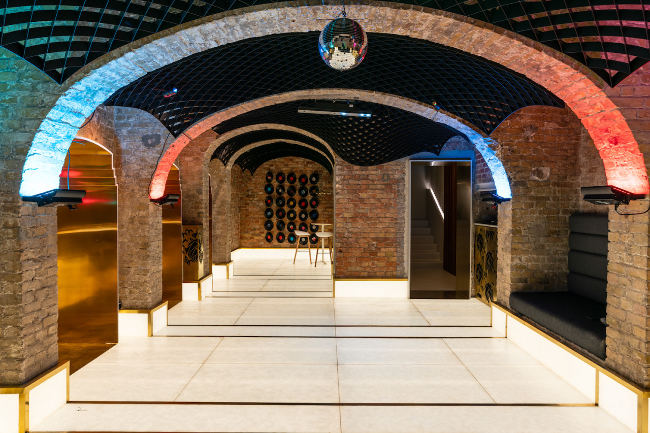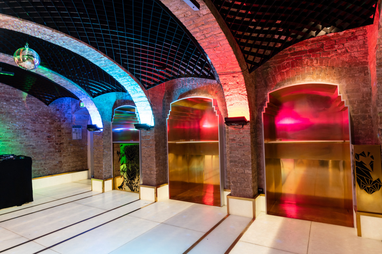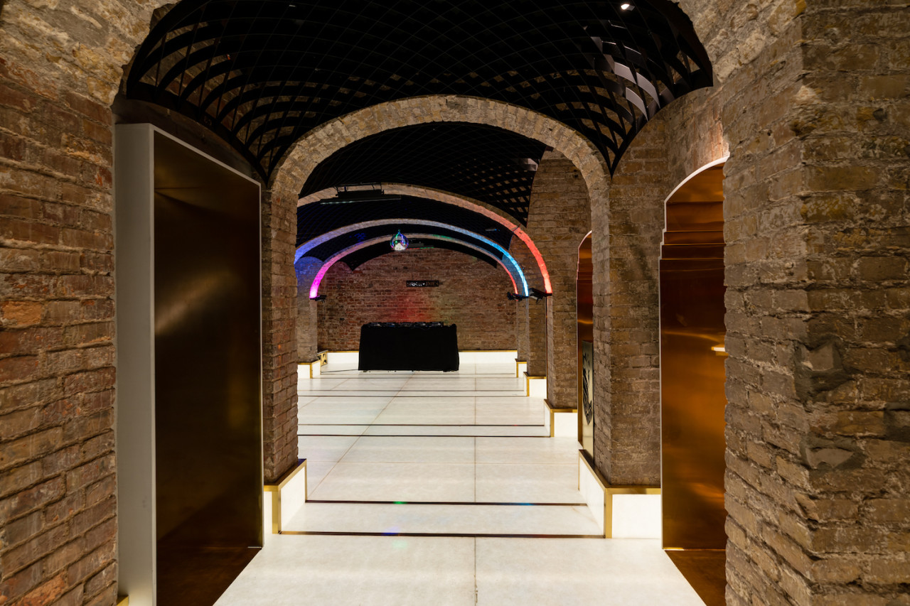 In the heart of the interior, a gallery-like ambiance emerges: speaker-clad walls, a central DJ booth beneath a kinetic disco ball, and curated vinyl displays against arched ceilings set the stage for creative convergence—be it musical, visual, or dramatic. Vintage elements mingle with minimalist, modern forms, and bold neon accents animate vaulted cellars and undulating alcoves. Whether hosting a brand activation, filming a genre-bending production, or staging a celebratory gathering, this location is a symphony of architectural intrigue and atmospheric possibility, offering a singular canvas for the creative industries.