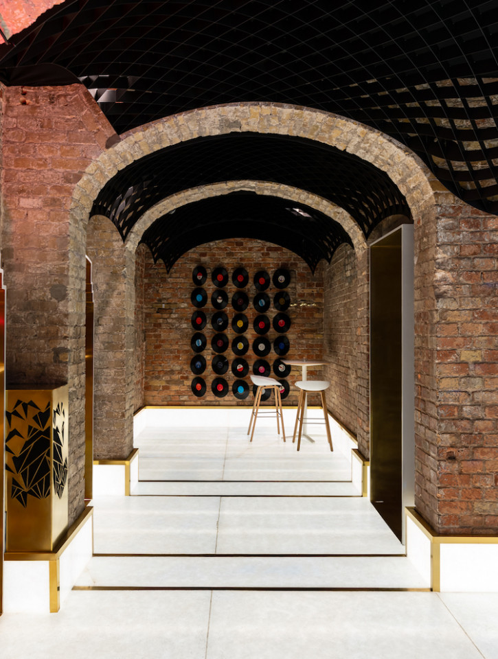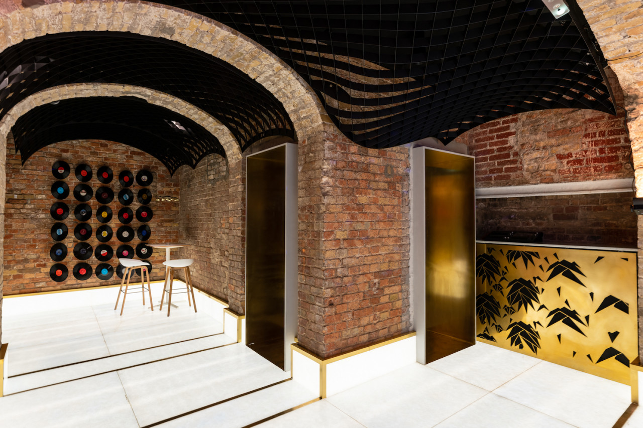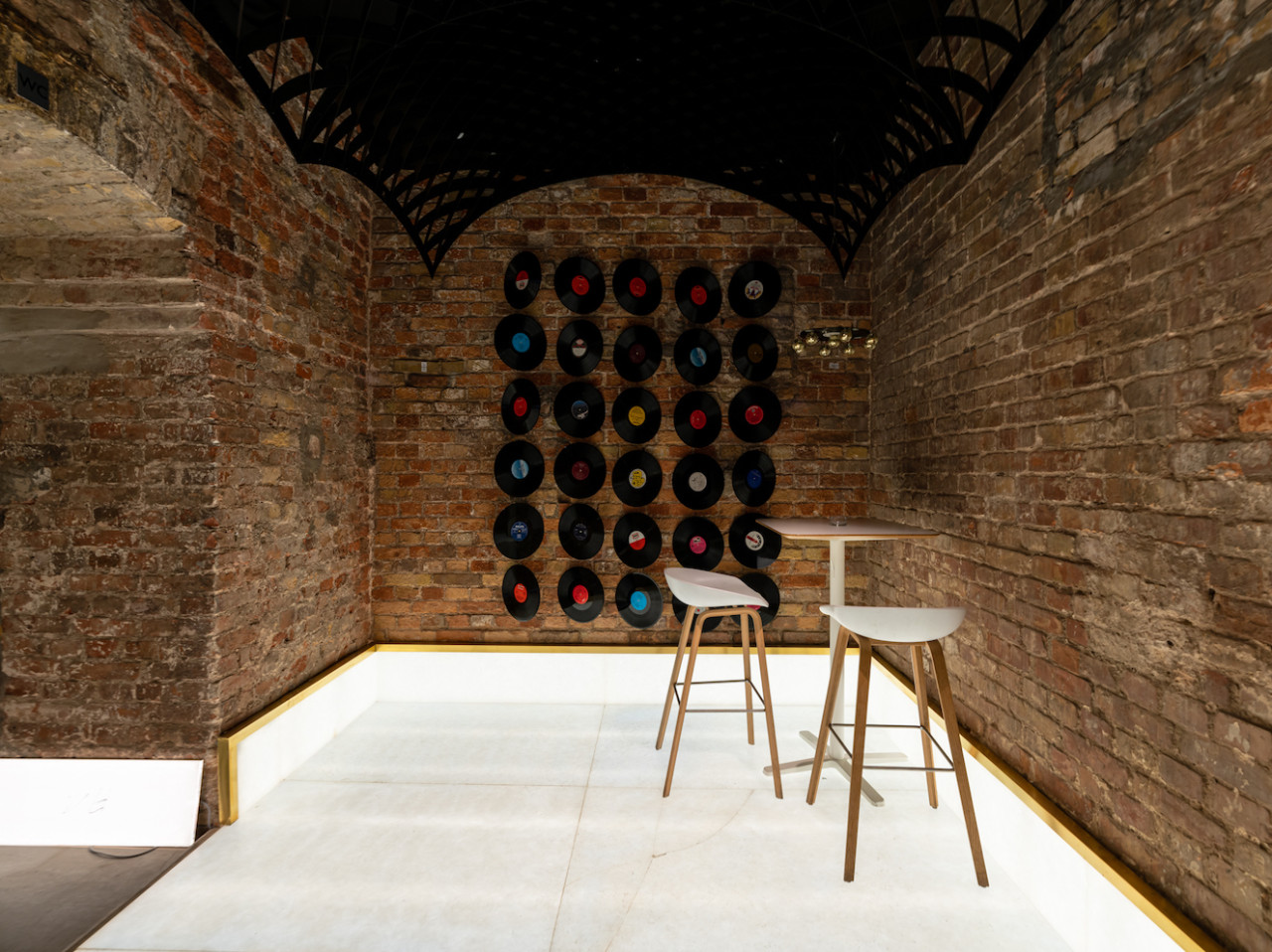 In the heart of the interior, a gallery-like ambiance emerges: speaker-clad walls, a central DJ booth beneath a kinetic disco ball, and curated vinyl displays against arched ceilings set the stage for creative convergence—be it musical, visual, or dramatic. Vintage elements mingle with minimalist, modern forms, and bold neon accents animate vaulted cellars and undulating alcoves. Whether hosting a brand activation, filming a genre-bending production, or staging a celebratory gathering, this location is a symphony of architectural intrigue and atmospheric possibility, offering a singular canvas for the creative industries.