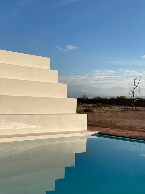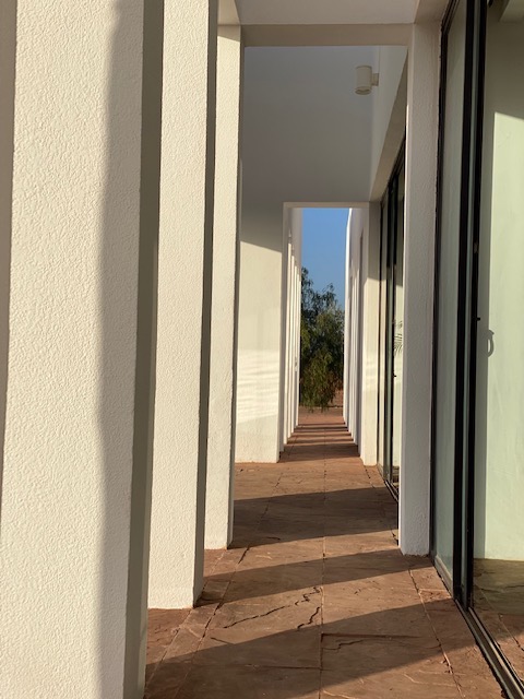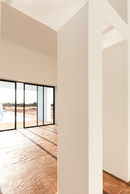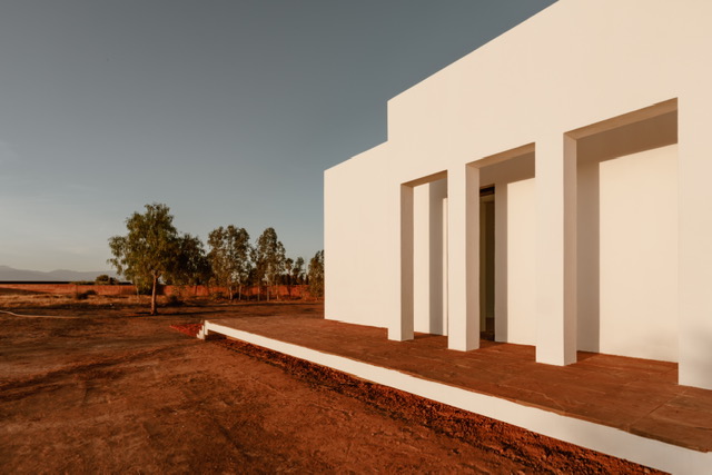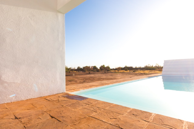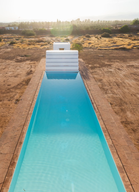 Das Studio befindet sich in den Außenbezirken der Stadt Marrakesch in Marokko. Dieses Studio im Freien wurde in einem auffälligen grafischen Stil gebaut. Seine architektonischen Merkmale kombinieren große weiße, flache Wände, Treppen, die aus dem Wasser aufsteigen, mit Säulen, verschlungenen Ecken und einem hellen Innenraum und einer großartigen Umgebung. All diese Merkmale machen es zu einem perfekten Ort für Foto- und Filmaufnahmen.