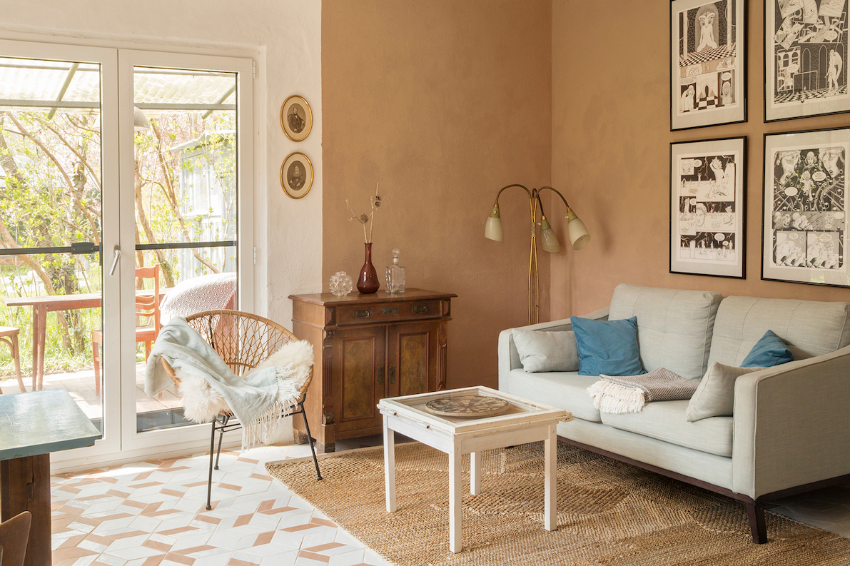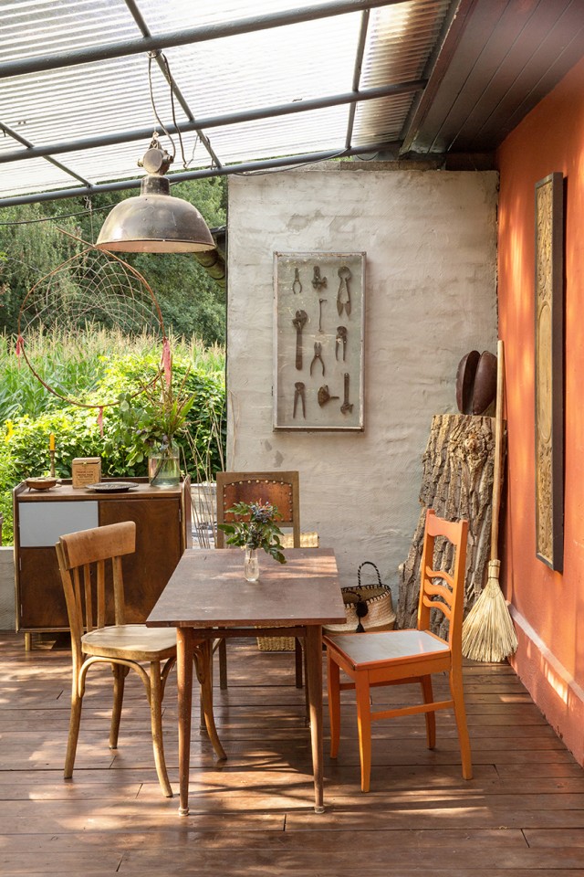Eingebettet in üppige Gärten und ruhige Landschaften, bietet dieses bezaubernde Anwesen eine perfekte Mischung aus rustikalem Charme und modernem Komfort. Jeder Raum ist ein Zufluchtsort der Ruhe und des künstlerischen Flairs, von den gemütlichen Essbereichen im Freien, die von eklektischem Dekor umrahmt sind, bis hin zu den sonnenbeschienenen Zimmern, die mit natürlichem Licht gefüllt und von Waldblicken umarmt sind. Der rustikale Sonnenraum mit Blick auf die malerische Landschaft und die Schlafzimmer, die mit Betten aus Holzpaletten und sanfter Beleuchtung das ruhige Ambiente widerspiegeln, laden in jeder Ecke zur Entspannung ein. Die Wohnräume sind mit antiken Möbeln ausgestattet, die einen Hauch von zeitloser Eleganz verleihen, ergänzt durch moderne Annehmlichkeiten, die für Komfort und Bequemlichkeit sorgen. Eine einladende Küchenzeile mit blattgemusterten Tapeten und ein rustikales Gewächshaus in der Nähe verstärken die Verbindung des Hauses mit der Natur und machen es zu einem reizvollen Rückzugsort für diejenigen, die Ruhe und Privatsphäre zu schätzen wissen. Die Außenbereiche des Anwesens sind schlichtweg spektakulär, mit lebendigen Gärten, ruhigen Wegen durch grüne Wälder und gemütlichen Ecken mit Sonnenliegen, die einen perfekten Ort zum Entspannen oder zum Genießen der Außenatmosphäre bieten. Darüber hinaus bieten die elegant eingerichteten Badezimmer mit Vintage-Touch und gemusterten Kacheln einen luxuriösen Rückzugsort, der den Komfort des eigenen Zuhauses bietet. Diese Immobilie ist die ideale Wahl für alle, die ein ruhiges Haus mit starkem Charakter und tiefer Verbundenheit zur natürlichen Umgebung suchen.