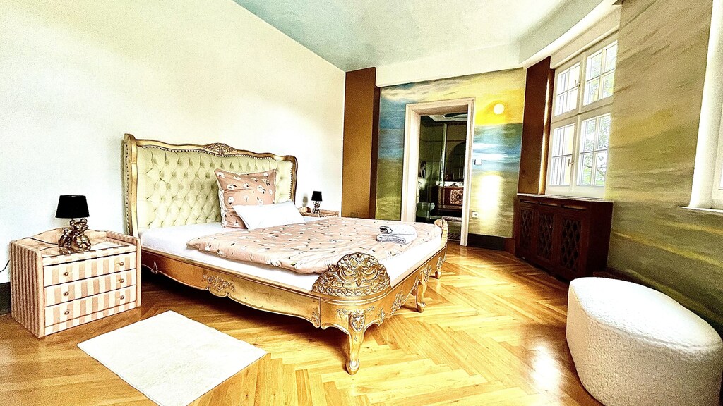 Die schicke Luxusmanufaktur-Villa mit ca. 700m², insgesamt 14 Zimmern, 8 Schlafzimmern, 6 Bädern + 4 separaten WCs, High-End-Küche, Aufzug, Garten, Yoga- und Fitnessraum und einem separaten Wellnesshaus mit Sauna bietet einzigartigen Komfort für Gruppen bis zu 20 Personen.