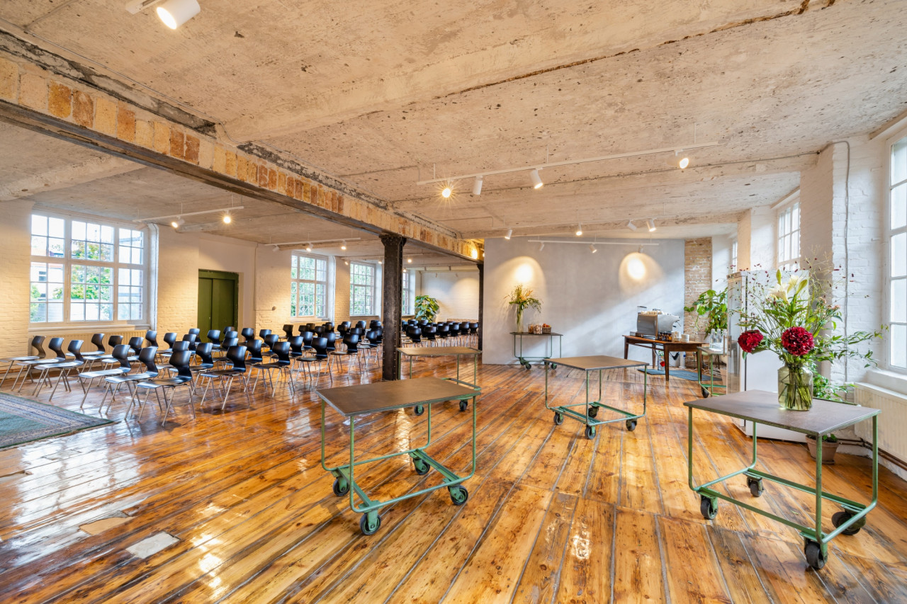 Mehr als 1000 m² Fläche, eingebettet in einen ruhigen Hinterhof mit privatem Garten - das ist kein gewöhnlicher Veranstaltungsort. Sechs große, flexible Räume auf fünf Etagen, von denen zwei in Kürze eröffnet werden, in einer ehemaligen Seifenfabrik im pulsierenden Herzen von Berlin-Neukölln.
