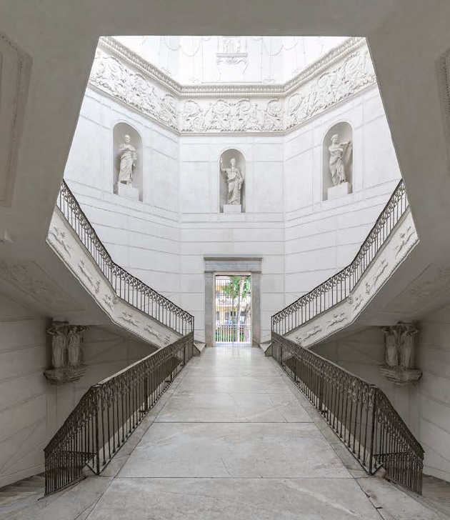 Diese große Marmortreppe in Neapel bietet eine dramatische und visuell beeindruckende Kulisse für Film- und Fotoproduktionen. Die skulpturale Symmetrie, die geschwungenen Kurven und die gewaltigen Proportionen vermitteln ein Gefühl von Monumentalität und Eleganz. Die architektonischen Details - gewölbte Korridore, klassische Säulen und Balustraden - verstärken die filmische Qualität, während das weiche natürliche Licht, das durch die Struktur fällt, Tiefe und Stimmung verleiht. Die zeitlose Steinpalette und der historische Charakter bieten eine raffinierte und doch vielseitige Kulisse, die sich sowohl für Modestrecken als auch für zeitgenössische visuelle Erzählungen eignet.