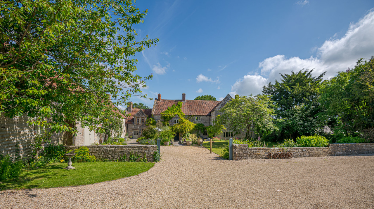 Ein mittelalterliches Anwesen in Somerset mit zwei separaten Scheunen und weitläufigem Gelände.