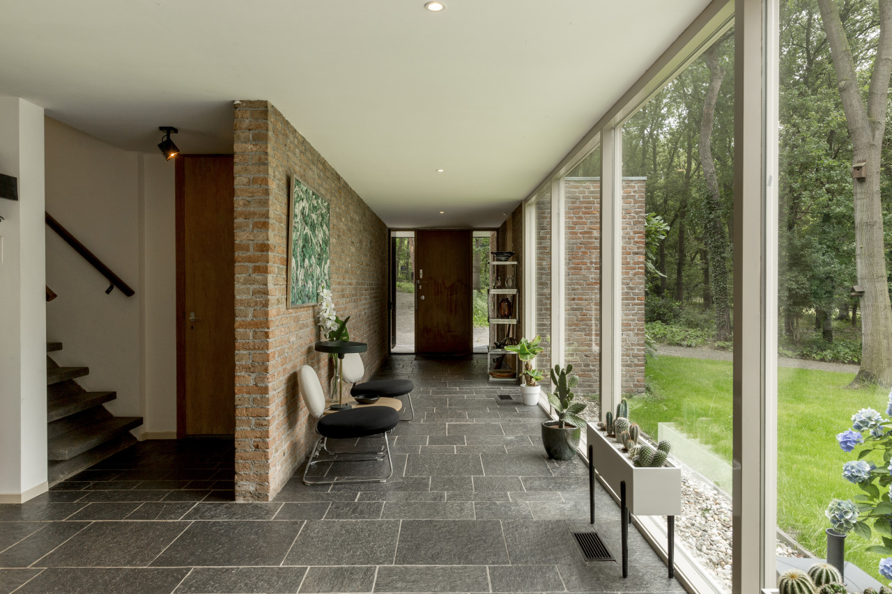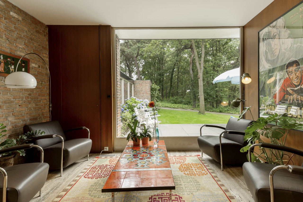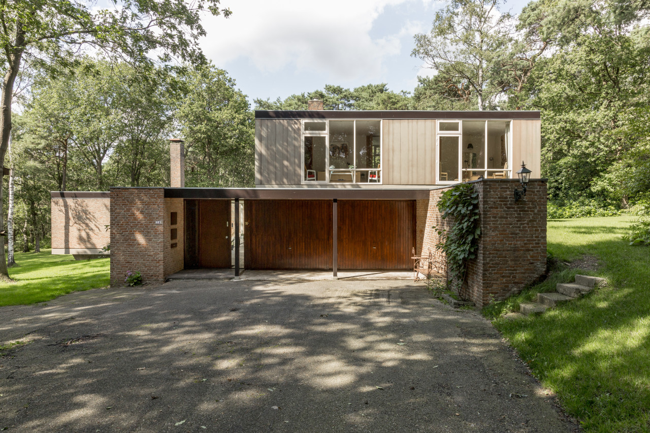 Dieses wunderschön erhaltene, moderne Haus aus der Mitte des letzten Jahrhunderts liegt in einer ruhigen Waldlandschaft und bietet ein beeindruckendes Gleichgewicht aus architektonischem Charme und natürlicher Ruhe - perfekt für Fotoshootings, Filmproduktionen und kreative Rückzugsorte.