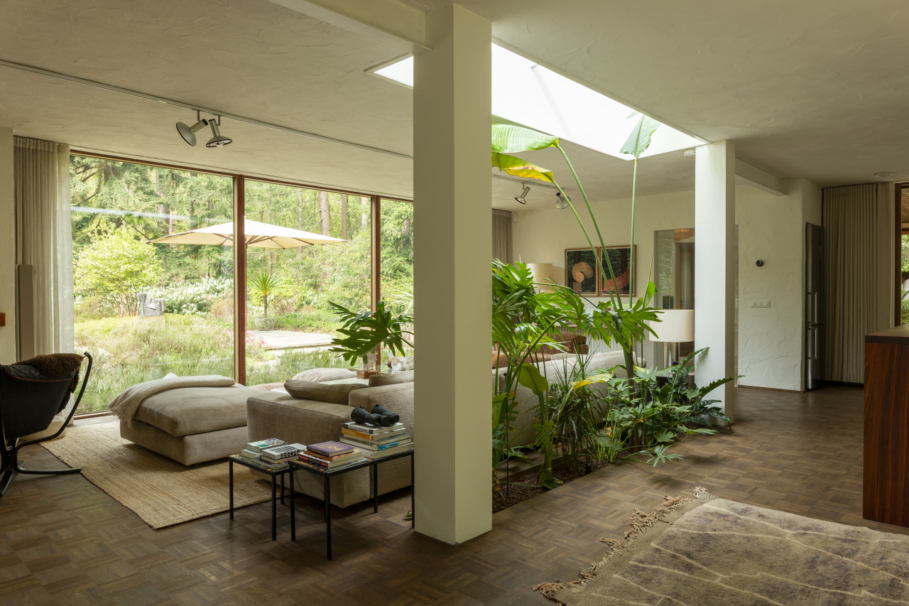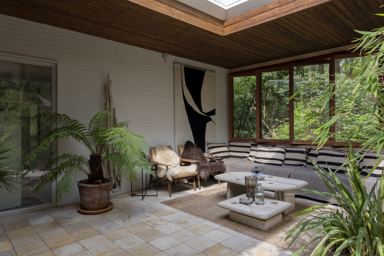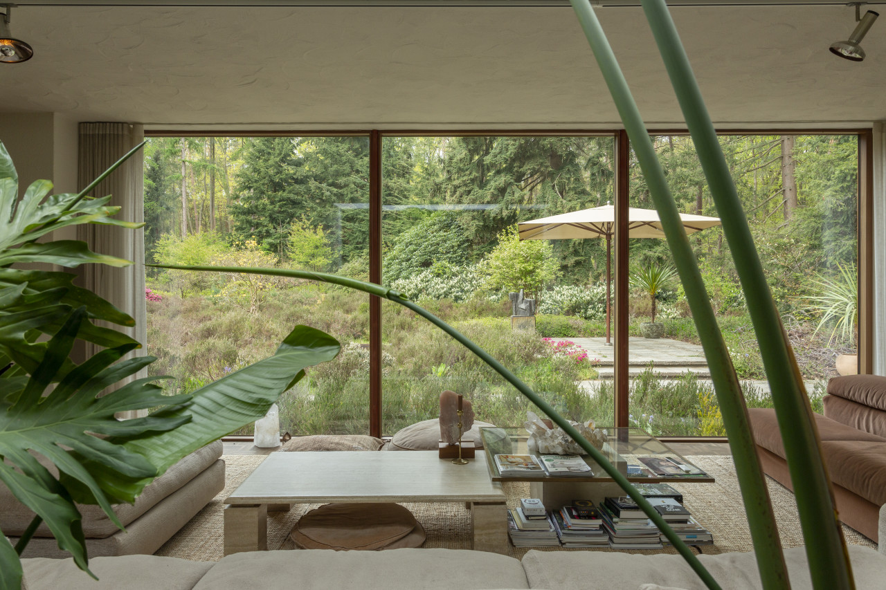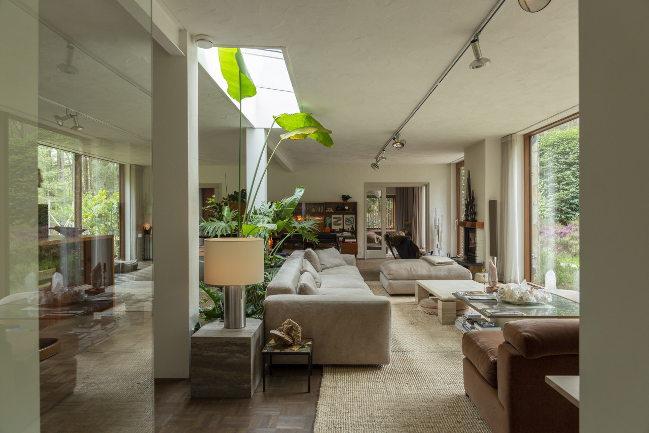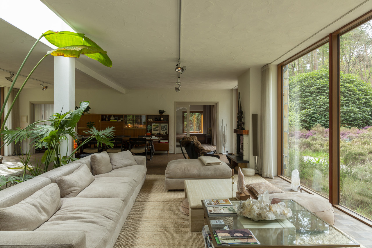 Entdecken Sie einen einzigartigen modernen Bungalow aus der Mitte des Jahrhunderts, umgeben von üppigem Grün, wo elegantes Design auf die beruhigende Präsenz der Natur trifft. Dieses weitläufige, lichtdurchflutete Haus verfügt über raumhohe Fenster, nahtlose Übergänge zwischen Innen- und Außenbereich und offen gestaltete Wohnräume, die sich perfekt für luxuriöse Unterhaltung und ruhige Entspannung eignen. Warme Holztöne, Steinverkleidungen und Designermöbel schaffen eine raffinierte Atmosphäre, während jedes Zimmer einen ruhigen Blick auf den Garten oder den Wald bietet. Die Küche des Küchenchefs ist mit hochwertigen Geräten und natürlichen Oberflächen ausgestattet, und die Bäder mit Spa-Charakter bieten einen beruhigenden Rückzugsort mit eleganten, organischen Akzenten. Mehrere Lounge- und Essbereiche bieten den perfekten Rahmen für Empfänge oder zum Entspannen, alles unterstrichen durch ausgewählte Kunst und Boutique-Details, die Wärme und Raffinesse in jeden Winkel bringen. Dieser Bungalow in ruhiger, privater Hanglage mit einfachem Zugang zur Stadt ist eine seltene Mischung aus Architektur und Natur und bietet gehobenes Wohnen vom Feinsten.