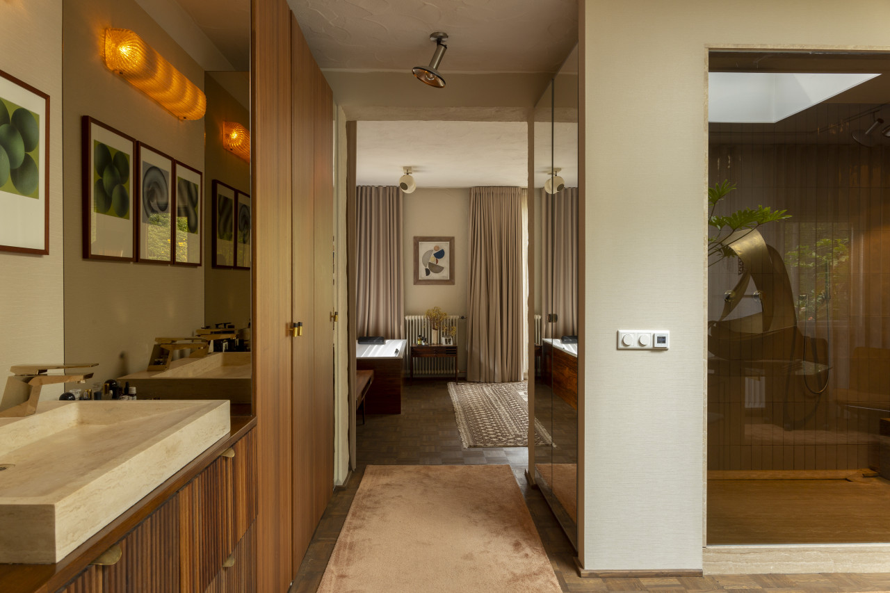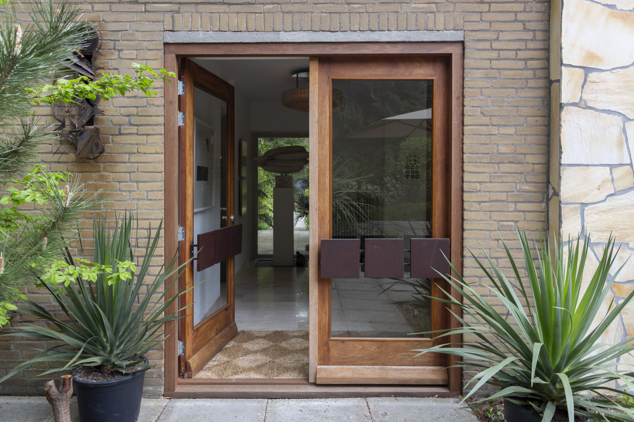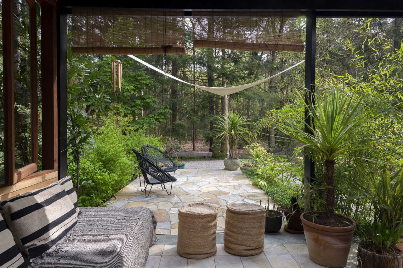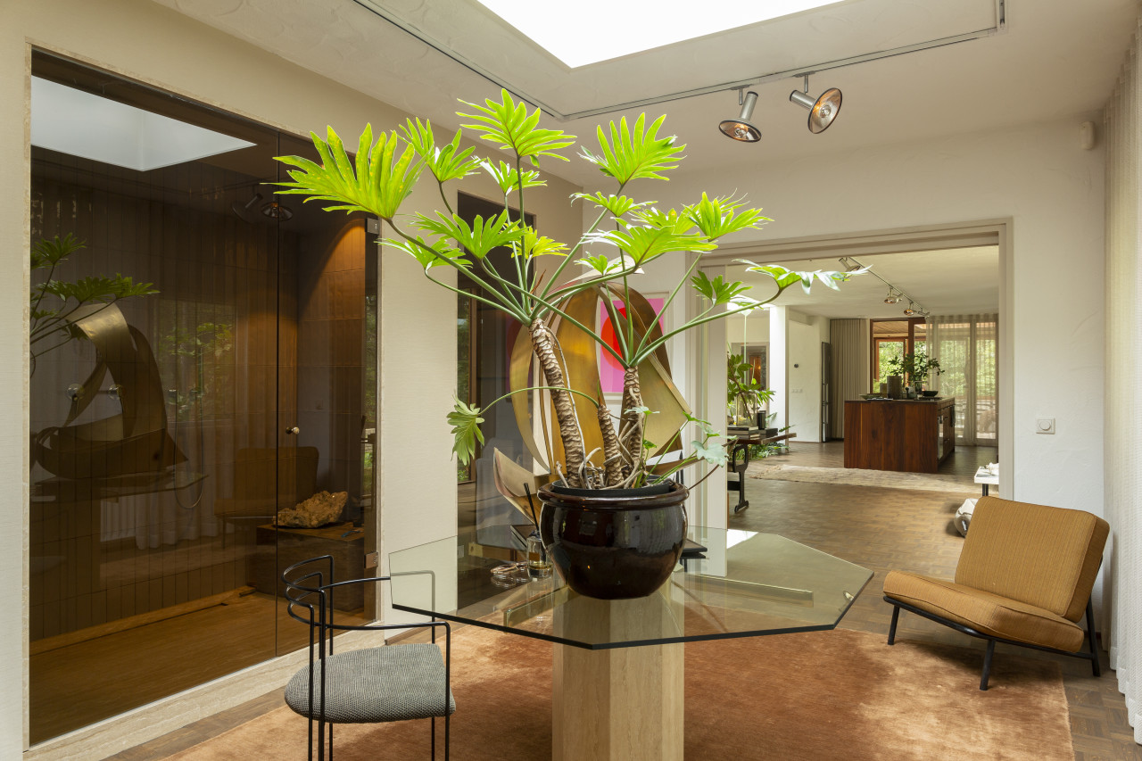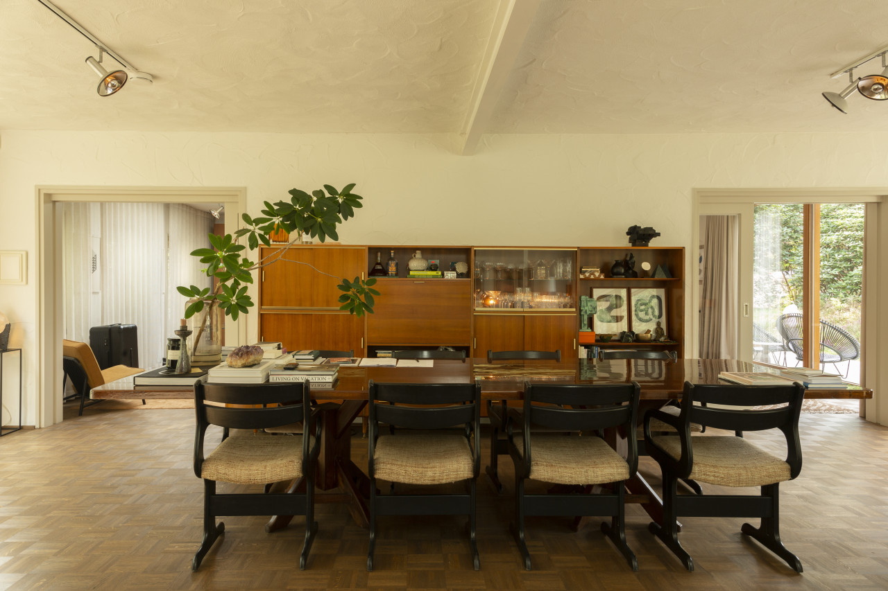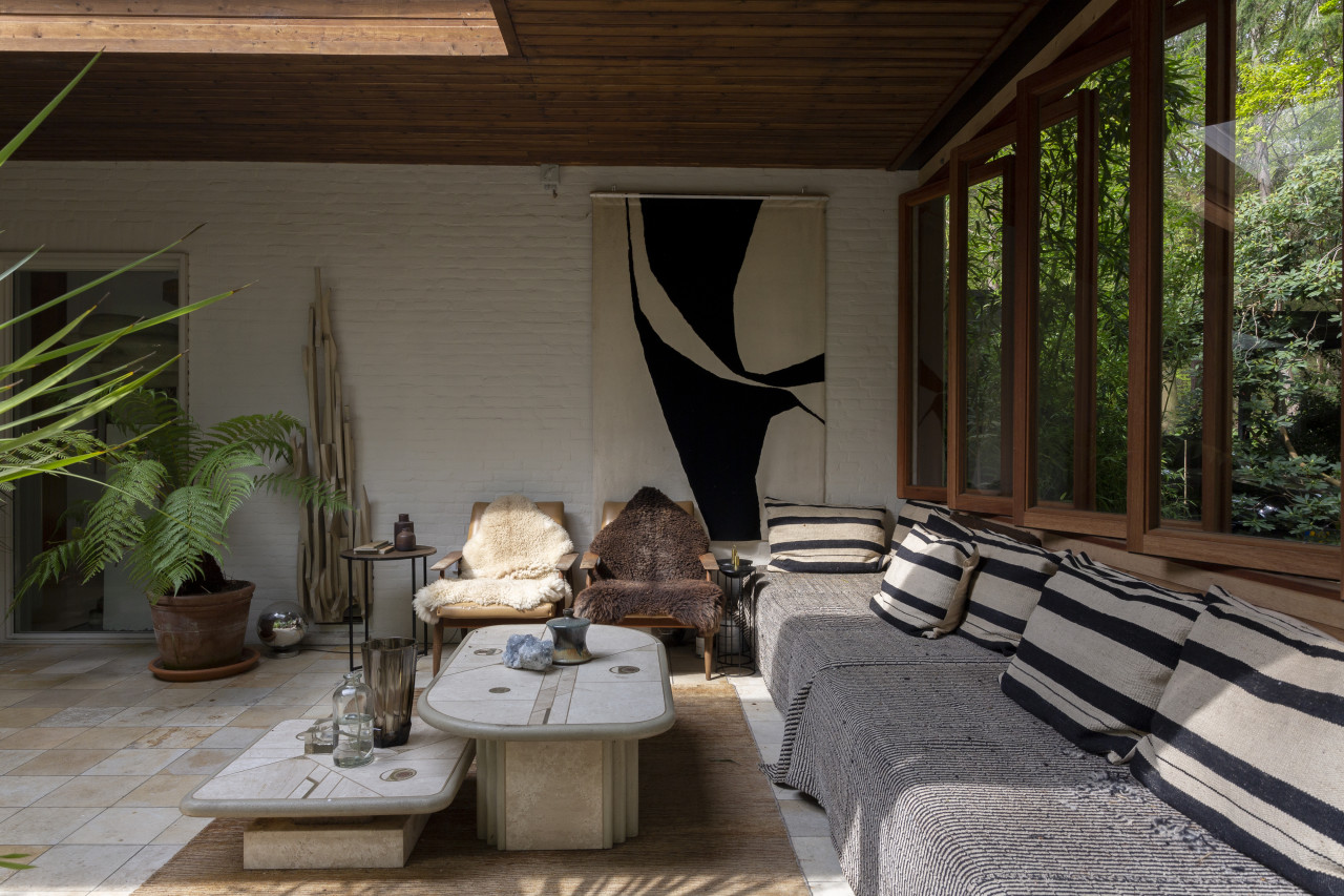 Entdecken Sie einen einzigartigen modernen Bungalow aus der Mitte des Jahrhunderts, umgeben von üppigem Grün, wo elegantes Design auf die beruhigende Präsenz der Natur trifft. Dieses weitläufige, lichtdurchflutete Haus verfügt über raumhohe Fenster, nahtlose Übergänge zwischen Innen- und Außenbereich und offen gestaltete Wohnräume, die sich perfekt für luxuriöse Unterhaltung und ruhige Entspannung eignen. Warme Holztöne, Steinverkleidungen und Designermöbel schaffen eine raffinierte Atmosphäre, während jedes Zimmer einen ruhigen Blick auf den Garten oder den Wald bietet. Die Küche des Küchenchefs ist mit hochwertigen Geräten und natürlichen Oberflächen ausgestattet, und die Bäder mit Spa-Charakter bieten einen beruhigenden Rückzugsort mit eleganten, organischen Akzenten. Mehrere Lounge- und Essbereiche bieten den perfekten Rahmen für Empfänge oder zum Entspannen, alles unterstrichen durch ausgewählte Kunst und Boutique-Details, die Wärme und Raffinesse in jeden Winkel bringen. Dieser Bungalow in ruhiger, privater Hanglage mit einfachem Zugang zur Stadt ist eine seltene Mischung aus Architektur und Natur und bietet gehobenes Wohnen vom Feinsten.