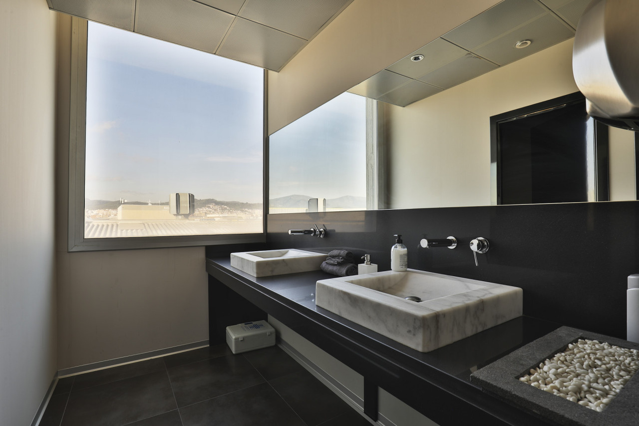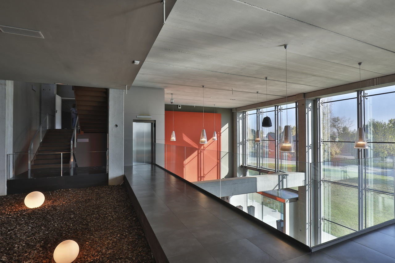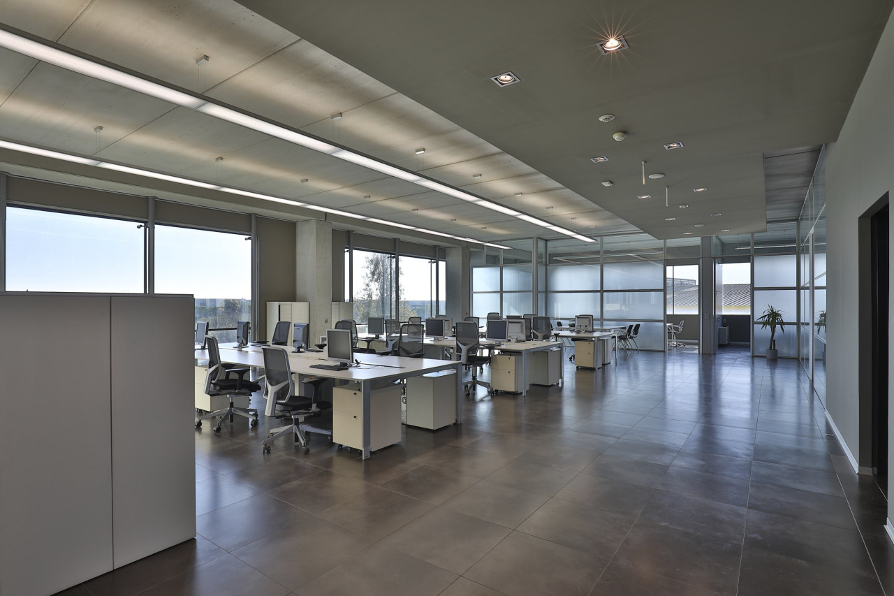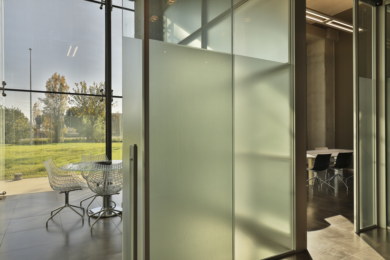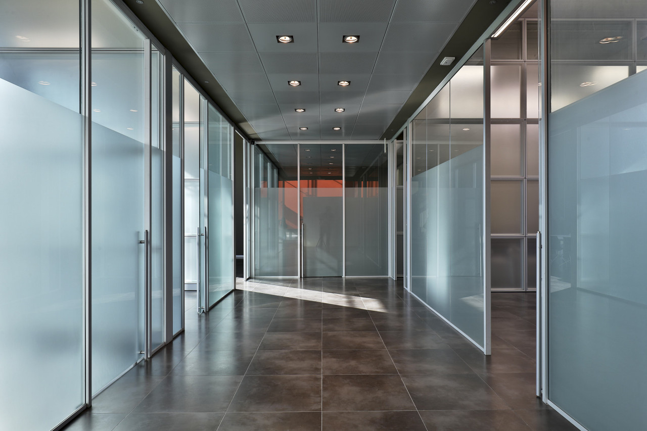 Die architektonische Sprache des Gebäudes verbindet Minimalismus mit subtilen industriellen Akzenten - polierte Böden, Betondecken, scharfe Linien und ein insgesamt elegantes Corporate Design. Gläserne Besprechungsräume, mattierte Trennwände und transparente Korridorwände schaffen ein elegantes Gefühl von Offenheit und wahren gleichzeitig die Privatsphäre.