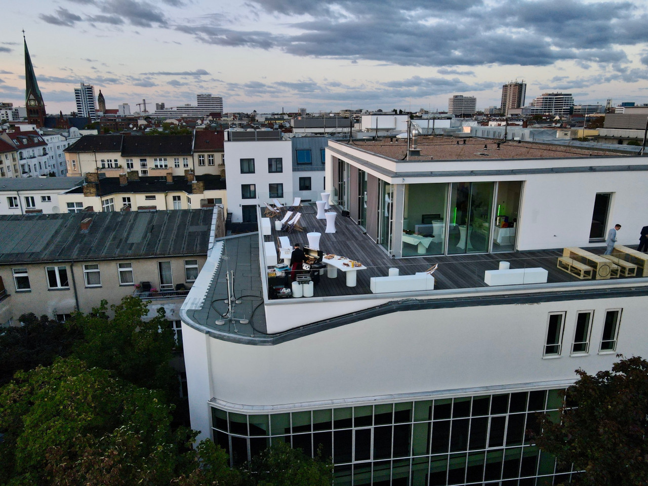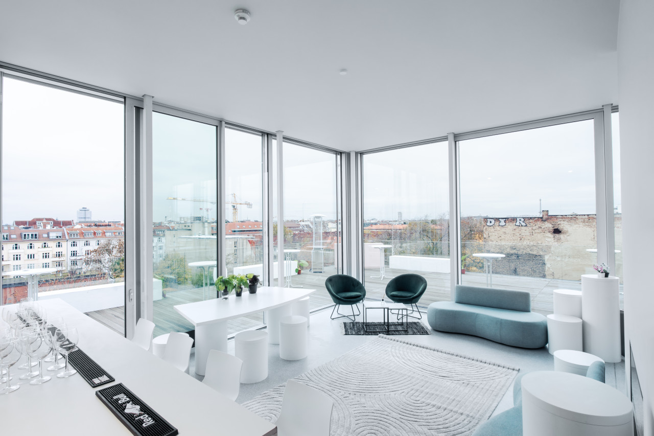 Dieses Rooftop ist ein exklusiver Veranstaltungsort im Herzen Berlins mit einer Gesamtfläche von 280 Quadratmetern und einer zusätzlichen 170 Quadratmeter großen Terrasse, die einen spektakulären Panoramablick über die Stadt bietet. Ideal für bis zu 60 Personen bei Dinner-Events und Show-Cooking oder bis zu 100 Gäste bei Stehempfängen, ist dies der perfekte Rahmen für Film- und Fotoproduktionen und Events.
