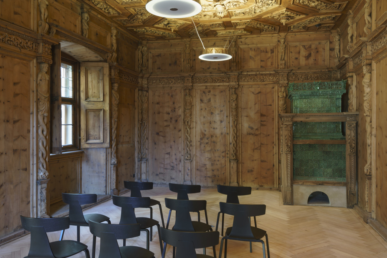 En su interior, los ricos paneles de madera, los techos tallados, las estufas de cerámica verde y los muebles antiguos crean una atmósfera cinematográfica y de viaje en el tiempo. Estos escenarios auténticamente conservados son ideales para producciones cinematográficas, sesiones fotográficas, proyectos editoriales y eventos culturales. Varias salas también se prestan maravillosamente a charlas privadas, conciertos íntimos o reuniones exclusivas.