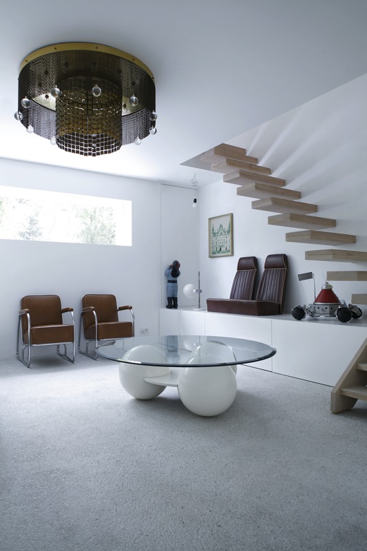 Adéntrese en el epítome de la sofisticación moderna con esta residencia de diseño impresionante, que cuenta con una decoración minimalista y una arquitectura contemporánea que se adaptan tanto al atractivo estético como a la vida funcional. El interior cuenta con una serie de espacios diáfanos y bien iluminados, entre los que se incluyen varias zonas de estar con muebles minimalistas y elegantes, una escultura de metal y una escalera flotante única que crea una sensación de amplitud. La sala de estar se fusiona sin esfuerzo con una cocina de última generación equipada con armarios blancos, electrodomésticos de alta gama y elegantes asientos ideales para reuniones sociales o serenos cafés matutinos junto a obras de arte bellamente enmarcadas.