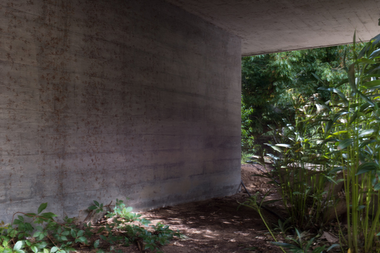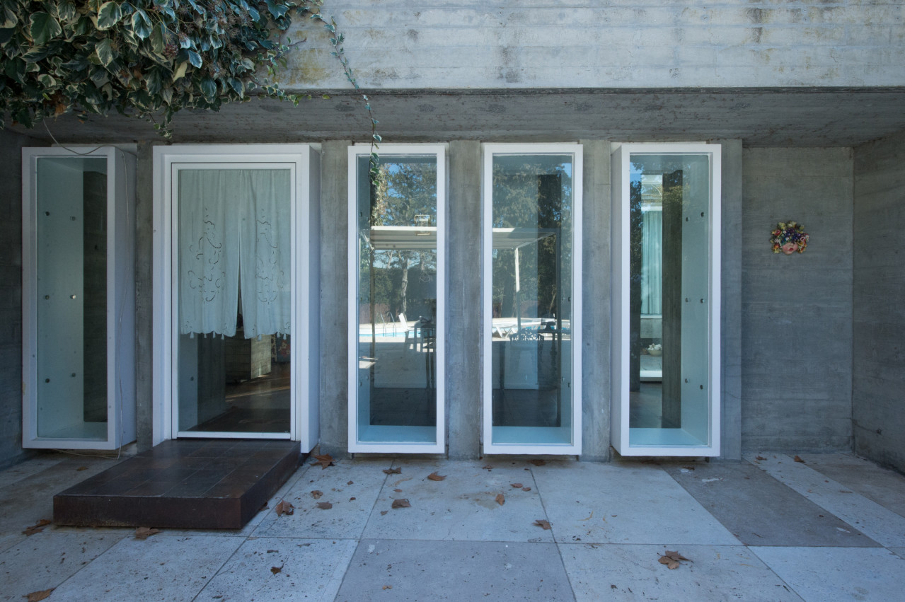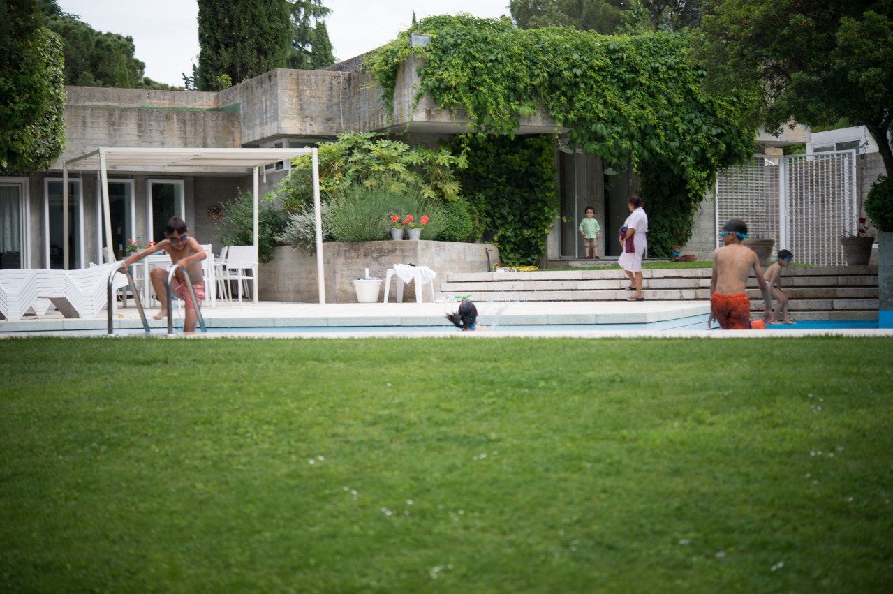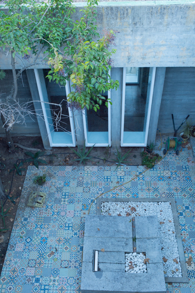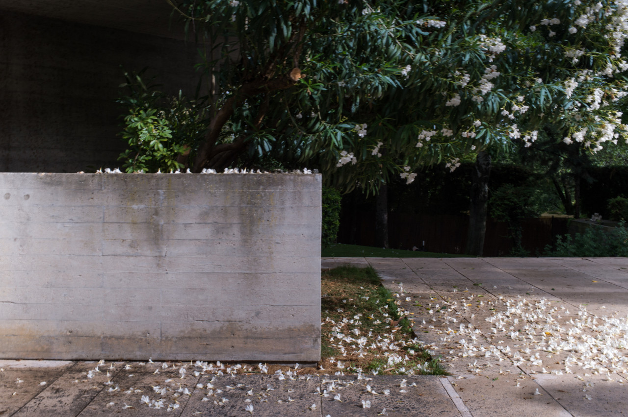 Su estilo brutalista, que parecía una escultura fuera de su tiempo, se funde con el entorno y la naturaleza; suaviza la dureza del hormigón para convertirse en el contenedor de un edén particular. Está construida en torno a dos patios interiores que hacen circular el flujo de la casa en forma de 8.