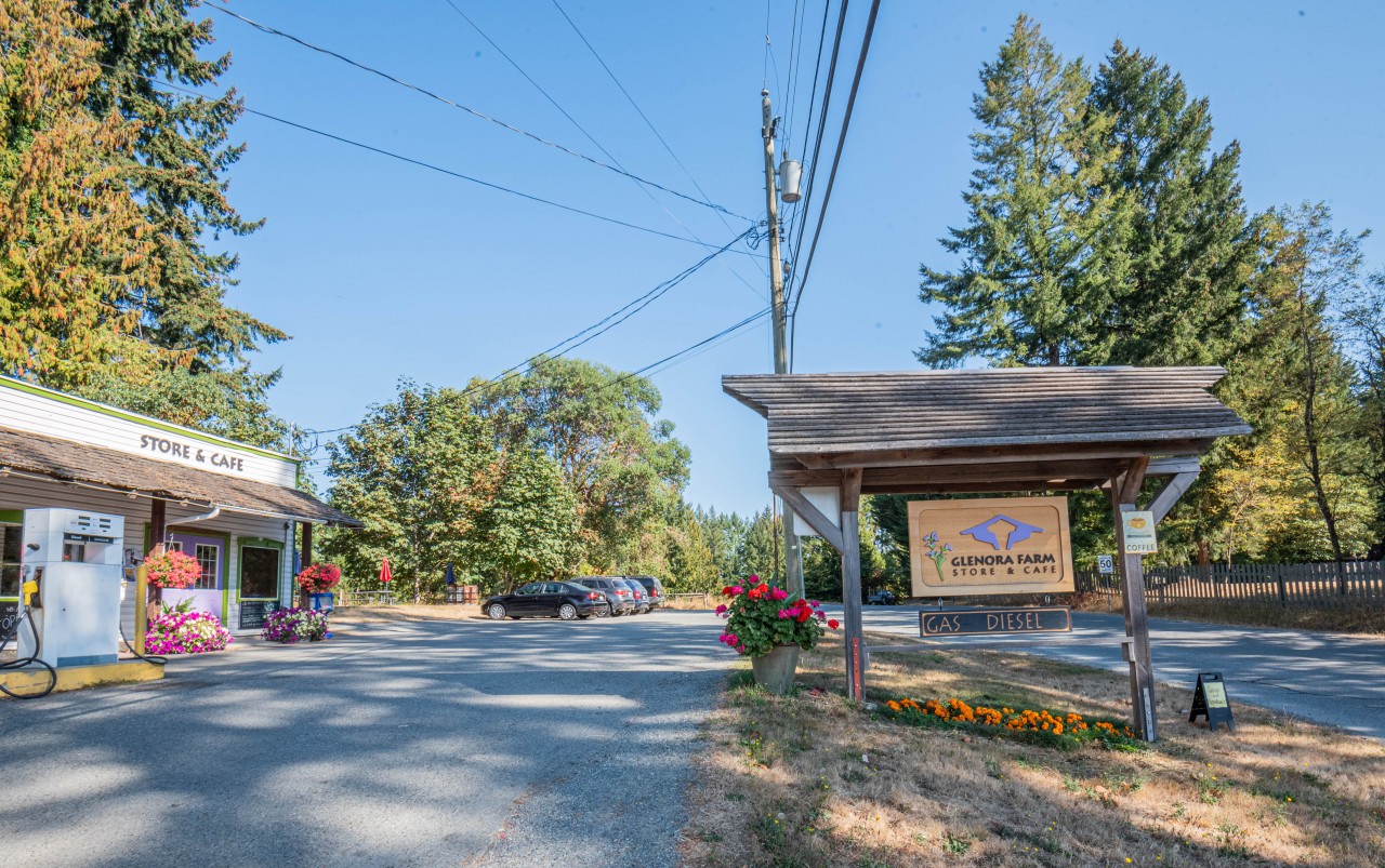 Descubra el encanto intemporal de esta rústica propiedad rural, que combina a la perfección el encanto de una tienda y cafetería de campo con la tranquila belleza de su entorno natural. Enclavado bajo un cielo azul despejado, el edificio principal recibe a los visitantes con coloridas y vibrantes flores y un pintoresco surtidor de gasolina de época, que crean un ambiente cálido y acogedor. La propiedad está adornada con banderas que ondean suavemente con la brisa, añadiendo un toque patriótico a su sereno entorno. Cada rincón de este establecimiento muestra una atención al detalle, desde las decoraciones florales bellamente cuidadas hasta el rústico refugio de madera que alberga el letrero de Glenora Farm Store, envuelto por una exuberante vegetación.