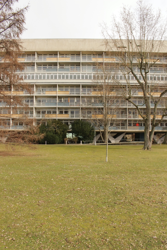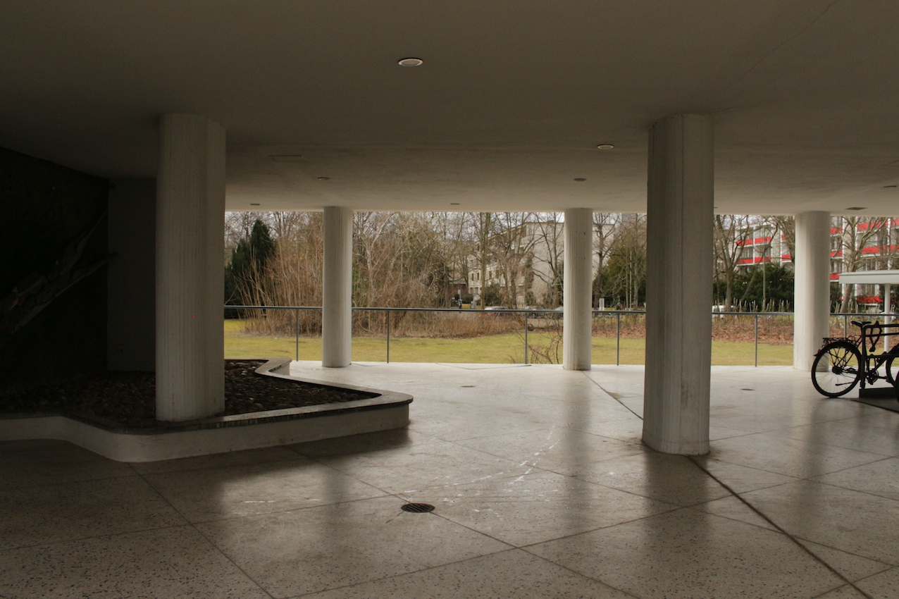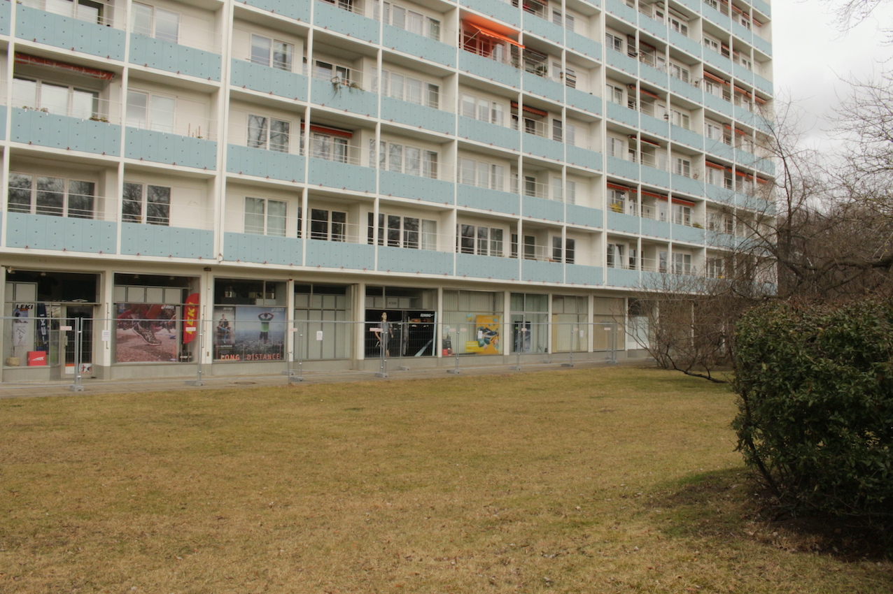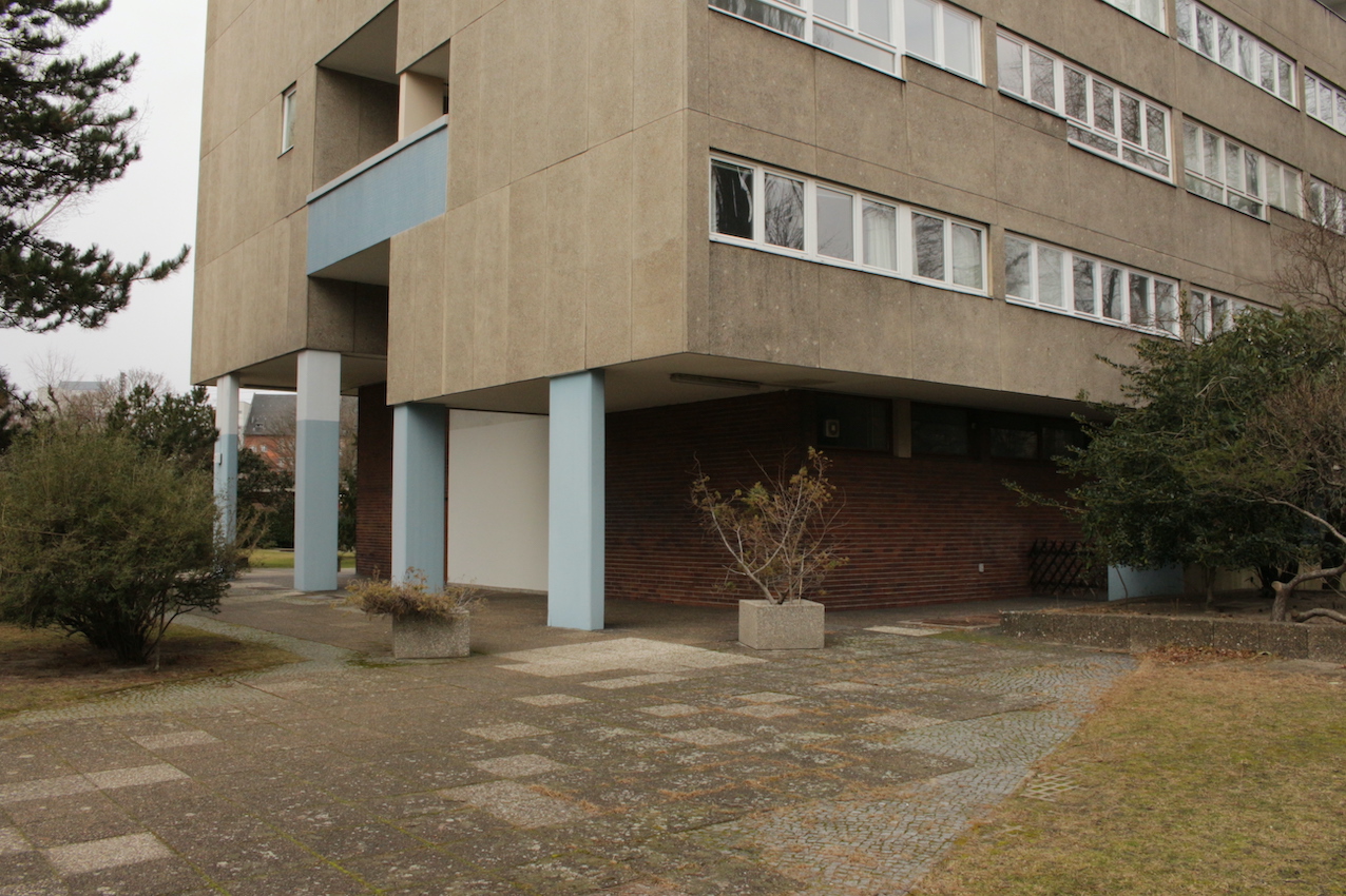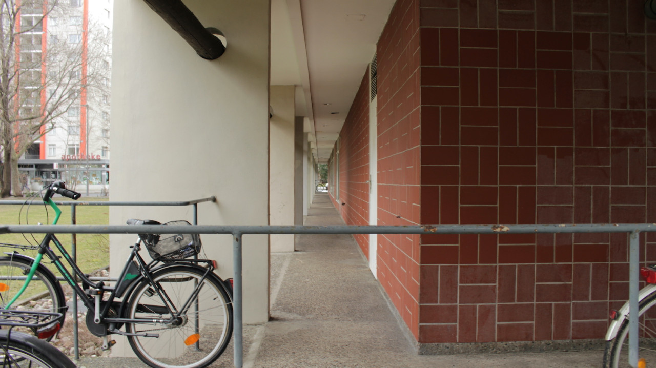 Los exteriores se caracterizan por hileras ordenadas de bancos, paseos estructurados y una matriz de césped salpicado de caminos empedrados, aparcabicicletas y macetas desgastadas. Las calles están flanqueadas por árboles maduros sin hojas y definidas por una sensación de quietud urbana, un ambiente sombrío, casi documental, acentuado por el cielo nublado y las figuras solitarias en un entramado de arquitectura residencial espectacular. Desde pasillos con amplios ventanales hasta balcones altos con barandillas lineales, todos los ángulos ofrecen un lienzo texturizado y cuidadosamente construido, idóneo para campañas editoriales, secuencias cinematográficas o instalaciones conceptuales que buscan tanto la calma como la intriga.