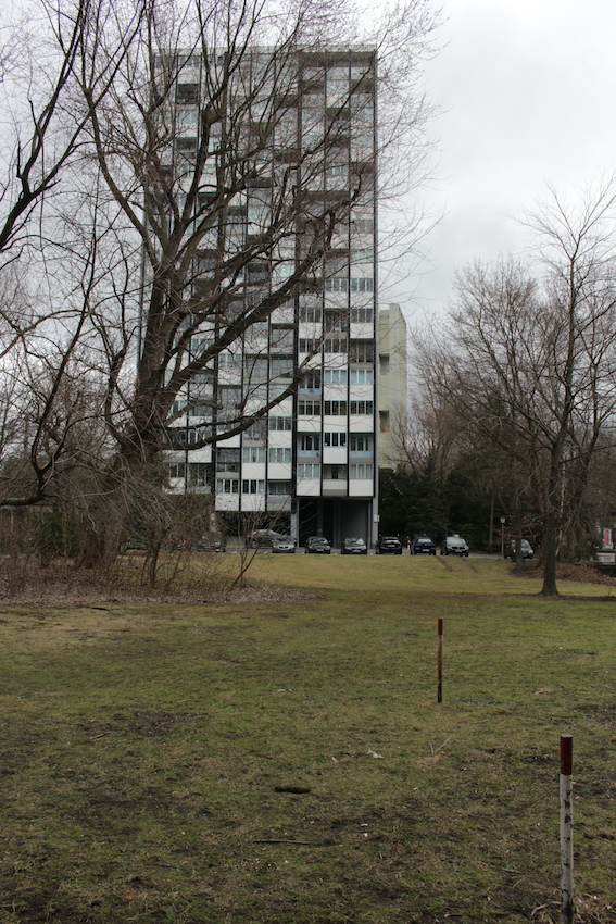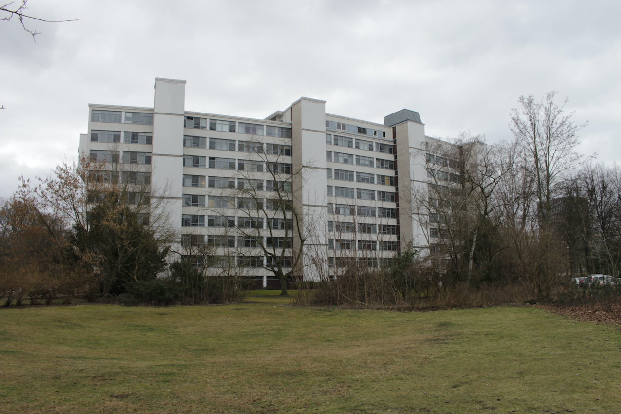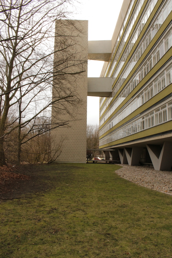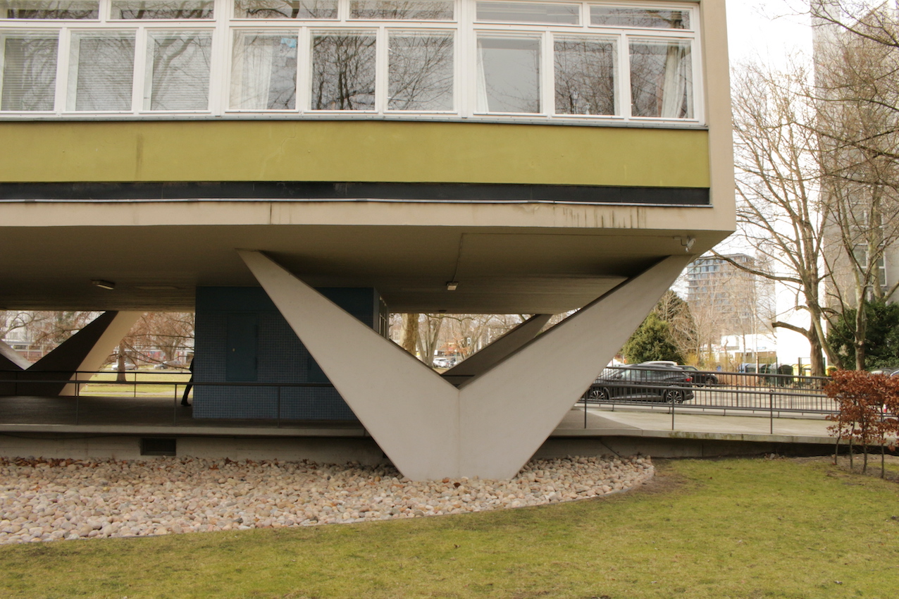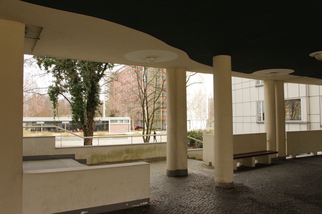 Los exteriores se caracterizan por hileras ordenadas de bancos, paseos estructurados y una matriz de césped salpicado de caminos empedrados, aparcabicicletas y macetas desgastadas. Las calles están flanqueadas por árboles maduros sin hojas y definidas por una sensación de quietud urbana, un ambiente sombrío, casi documental, acentuado por el cielo nublado y las figuras solitarias en un entramado de arquitectura residencial espectacular. Desde pasillos con amplios ventanales hasta balcones altos con barandillas lineales, todos los ángulos ofrecen un lienzo texturizado y cuidadosamente construido, idóneo para campañas editoriales, secuencias cinematográficas o instalaciones conceptuales que buscan tanto la calma como la intriga.