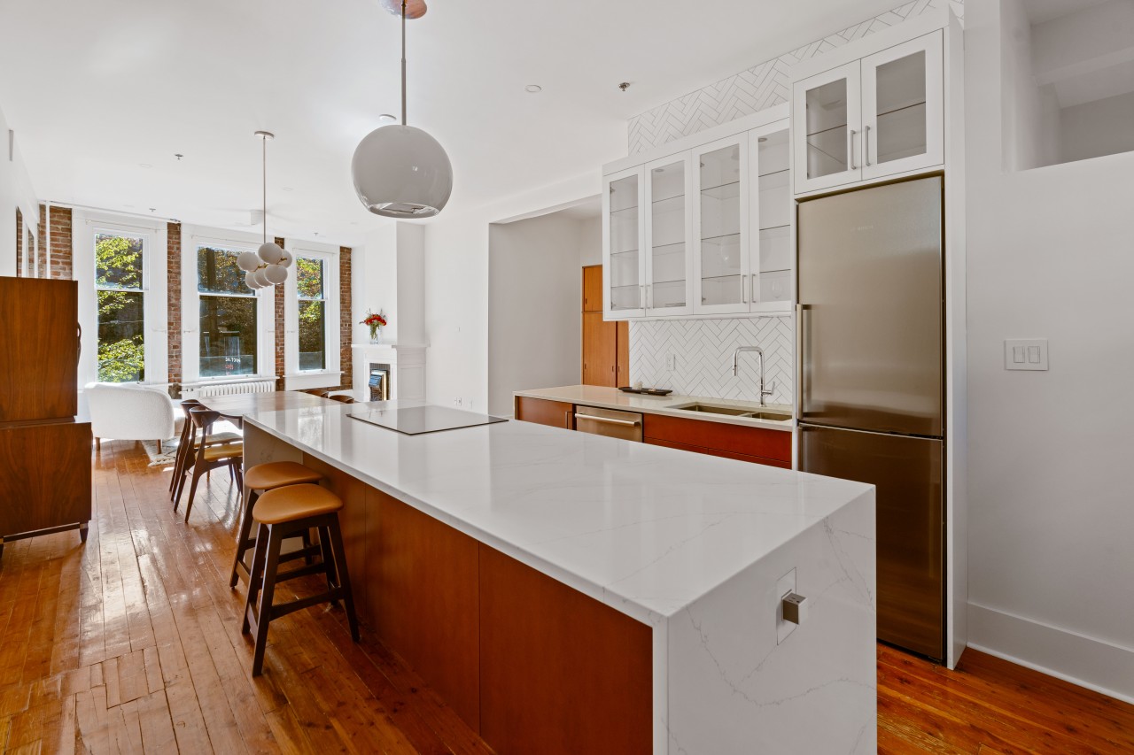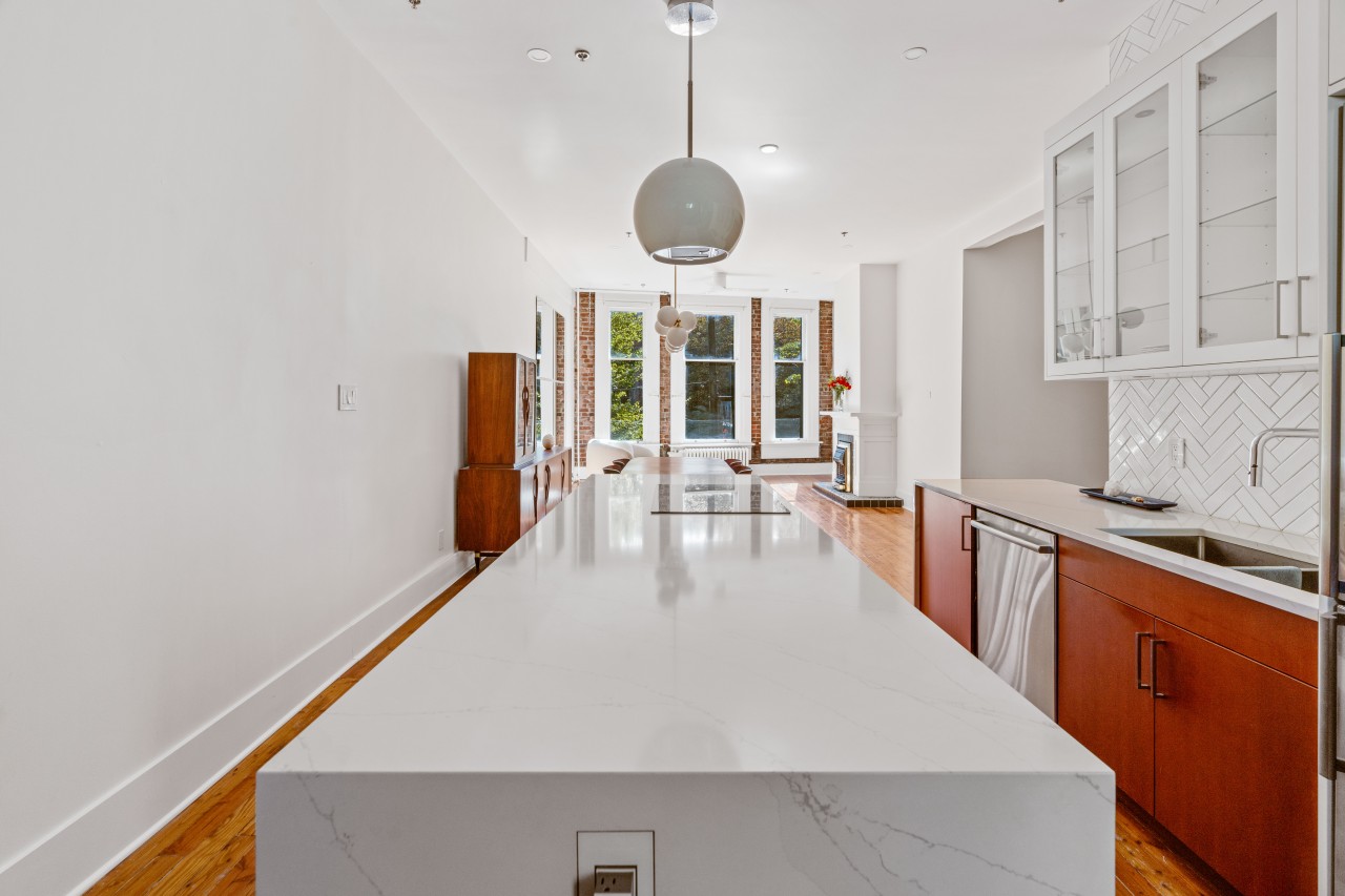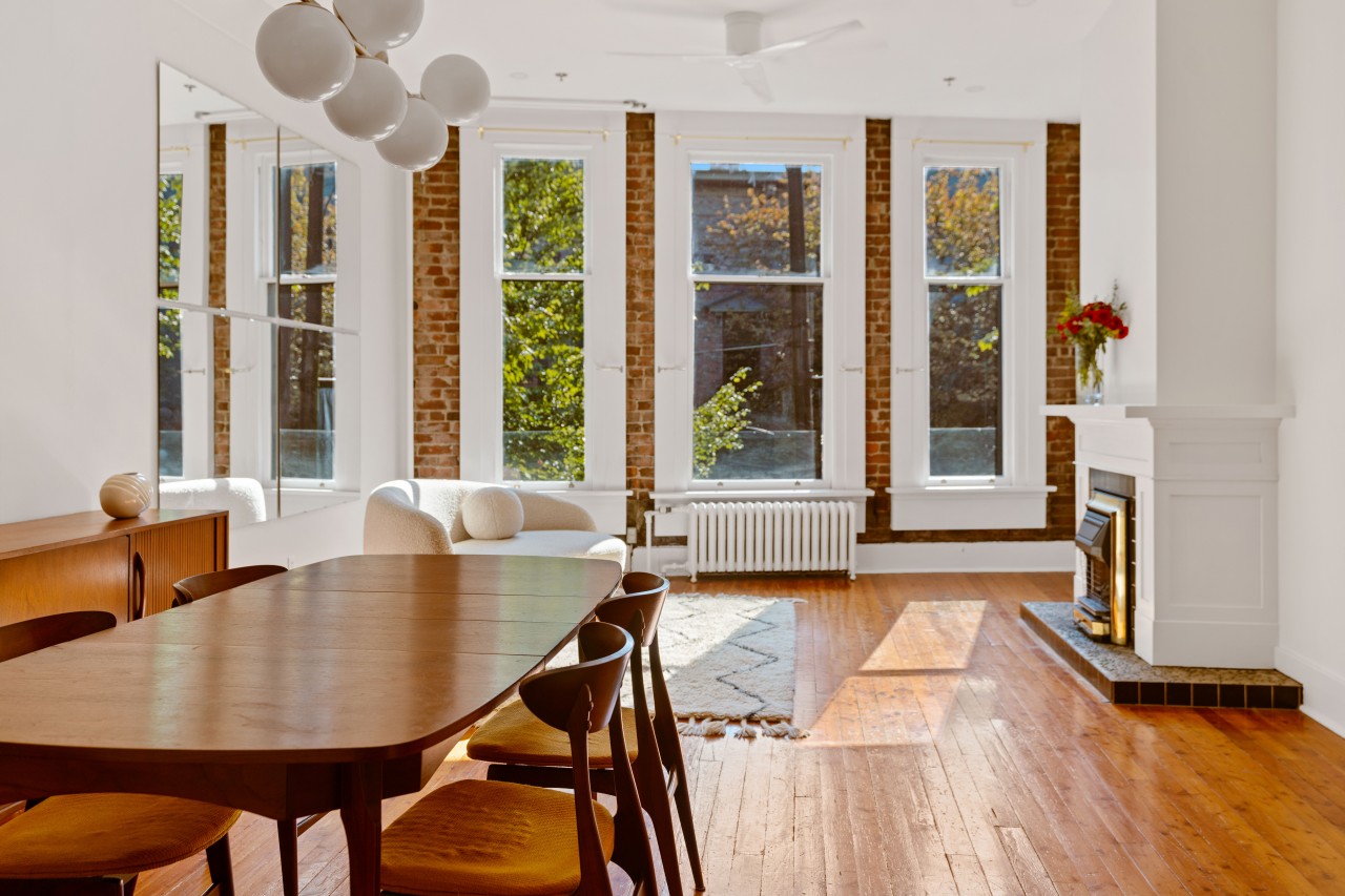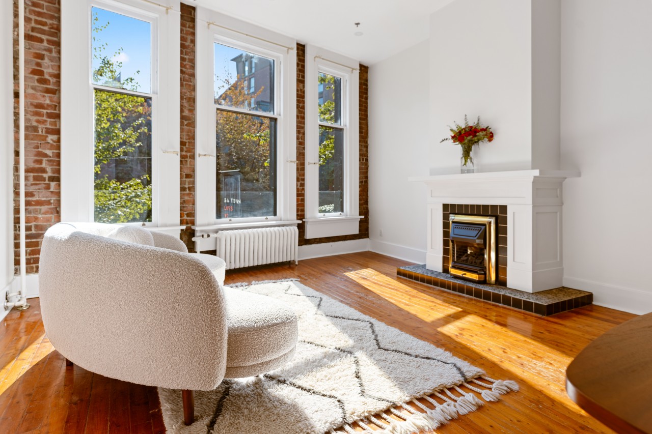 Actualizaciones modernas se hicieron para refinar este tema lofts vintage-moderno. Con hermoso ladrillo restaurado y pisos de madera, chimenea de gas, grandes ventanales que filtran mucha luz natural por lo que es perfecto para su próximo proyecto creativo.