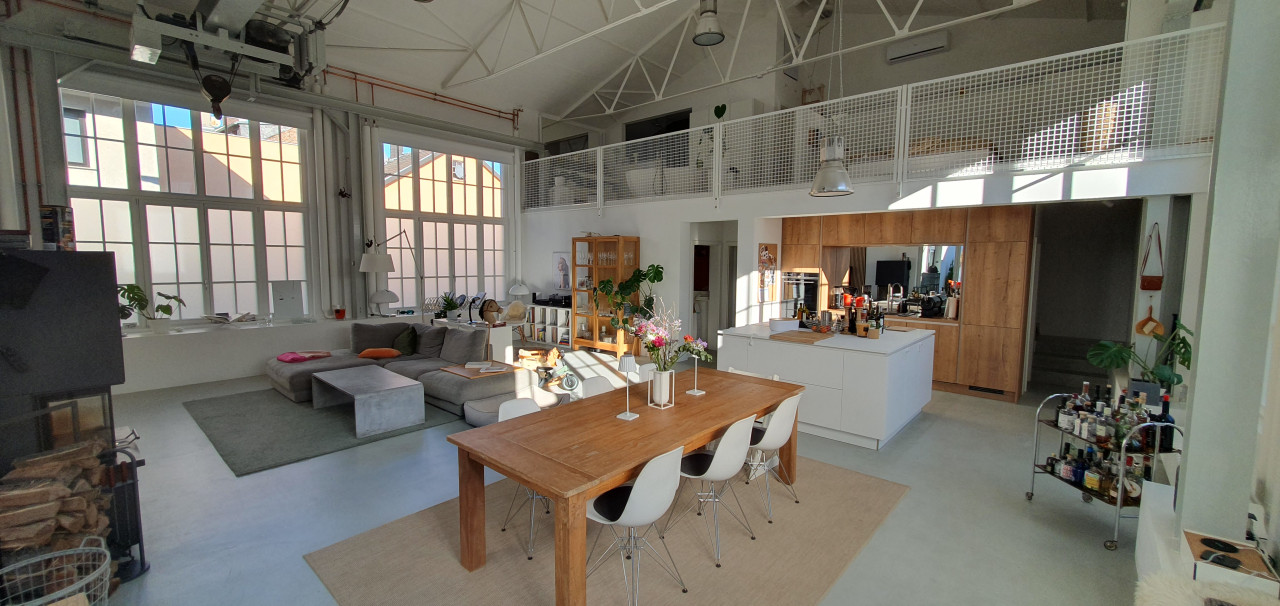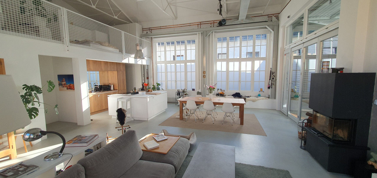 Transformado de un antiguo taller de motores navales en un loft contemporáneo, este lugar goza de una gran proximidad al Rin y de excelentes conexiones de transporte con las autopistas cercanas. Con fácil acceso a ciudades como Bonn y Colonia, el lugar también ofrece amplias plazas de aparcamiento y cuenta con un patio interior al que se accede a través de una cómoda puerta enrollable.