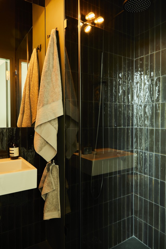 Esta joya iluminada se esconde en 61 m2 de la quinta planta de Lindower Strasse 18. El dormitorio, el baño, el salón-comedor, la cocina que puede ocultarse tras puertas batientes y, sobre todo, la gran terraza en la azotea con más asientos convierten este apartamento en un espacio seguro tremendamente cómodo en el cielo de Berlín.