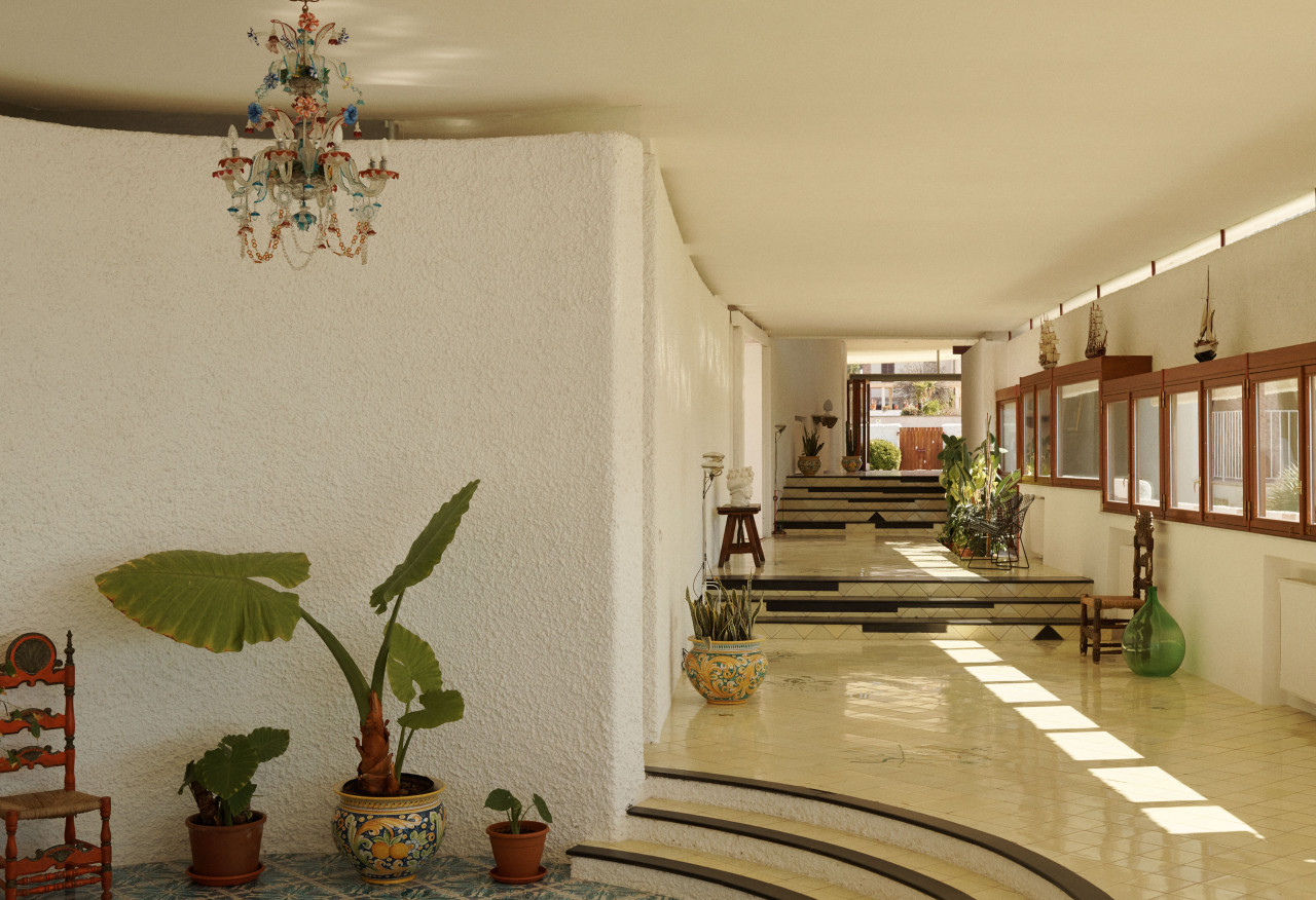 Pioppo se abre como un recuerdo del Mediterráneo, donde el sol juega sobre superficies artesanales y el mar dialoga constantemente con la arquitectura. Sus interiores y exteriores se mueven a la perfección entre lo construido y lo natural, donde el tiempo se detiene en una secuencia de luces cálidas, sombras alargadas y detalles táctiles. Las ásperas paredes de estuco blanco se curvan suavemente alrededor de suelos de baldosas y detalles de madera, formando una geometría sensual que es a la vez espontánea y precisa. Los interiores se enriquecen con muebles originales, cerámica vintage, azulejos pintados a mano y suaves reflejos de elementos de cristal de Murano. Los muebles, escultóricos o estrictamente modernistas, se colocan en equilibrio con las líneas fluidas de la arquitectura. Cada habitación se abre a una vista enmarcada -el jardín, el mar o las terrazas- creando una atmósfera cinematográfica que nunca parece escenificada. Una paleta de tonos neutros bañados por el sol se combina con toques de azul, verde y óxido, que reflejan el paisaje costero del exterior. Este lugar invita al movimiento lento y a la quietud observadora. Las escaleras se envuelven en curvas, los patios se extienden hacia el horizonte y las texturas guían la mirada con mínimas distracciones. La luz transforma la casa a lo largo del día, pasando de nítida y brillante a suave y ambarina. La ubicación ofrece distintas oportunidades fotográficas, desde detalles arquitectónicos gráficos y piezas de diseño vintage hasta planos amplios envolventes que combinan espacio y paisaje. El sonido natural se limita al viento, el mar y el crujido ocasional de la madera vieja, lo que ofrece unas condiciones ideales para el rodaje. Es un escenario que no necesita intervención: se presta naturalmente a producciones narrativas, editoriales y atmosféricas por igual. Pioppo no es un telón de fondo, sino una presencia elegante, tranquila y profundamente arraigada en el lugar.