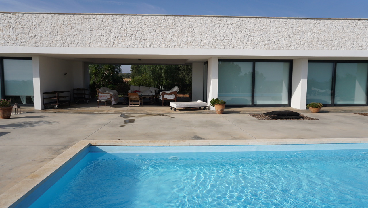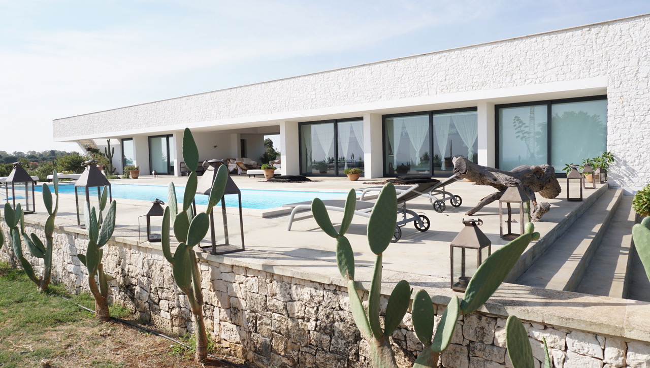 Experimente el epítome de la vida moderna de lujo en esta impresionante villa blanca, diseñada con una ingeniosa mezcla de elegancia de alta gama y serenidad natural. Rodeada de paisajes tranquilos y exuberante vegetación, la casa cuenta con amplios ventanales que reflejan el cielo azul, ofreciendo un ambiente armonioso en el interior y al aire libre. La piscina transparente y reflectante es la pieza central del espacio de ocio al aire libre, flanqueada por cómodas tumbonas y muebles rústicos de madera con lujosos cojines blancos, perfectos para tomar el sol o disfrutar de tardes tranquilas en un entorno apacible.