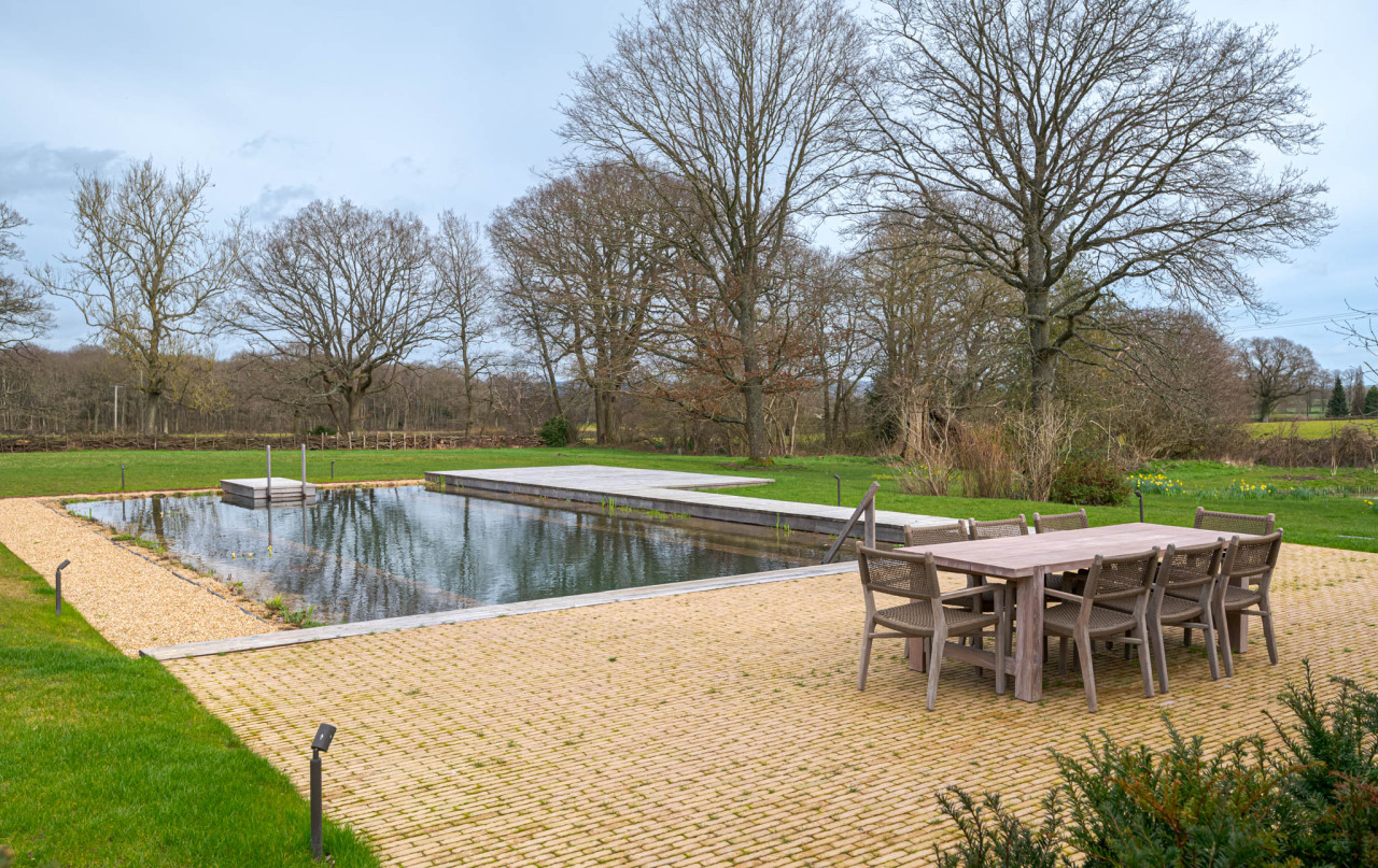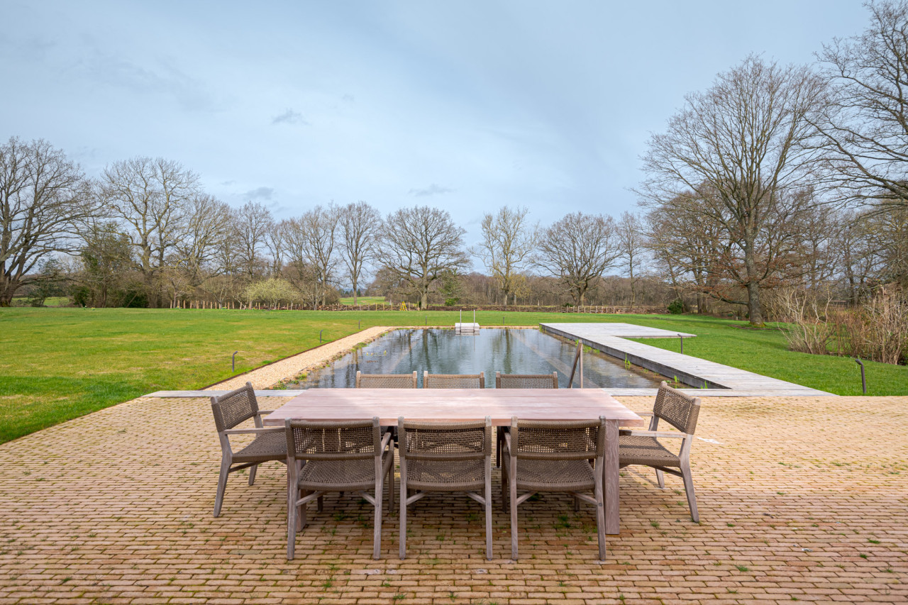 Impresionante reforma de una granja con piscina natural, estanques, bosque y granero con sala de cine. Preciosa casa de diseño con hermosas salas de estar, dormitorios y baños, rodeado de bosques con zona de estar de madera y pozo de fuego.