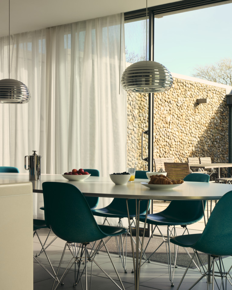 Esta casa arquitectónica, diseñada por los aclamados arquitectos Sir Michael y Lady Patty Hopkins, está situada en Cockthorpe, Norfolk, con vistas a las espectaculares marismas, ensenadas y calas de la costa del Mar del Norte.