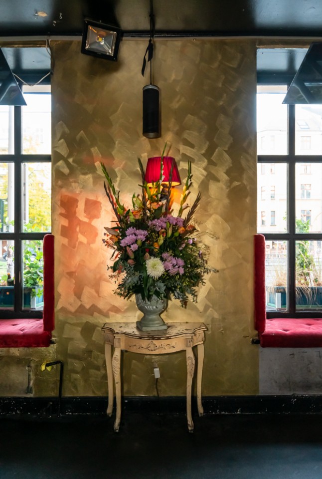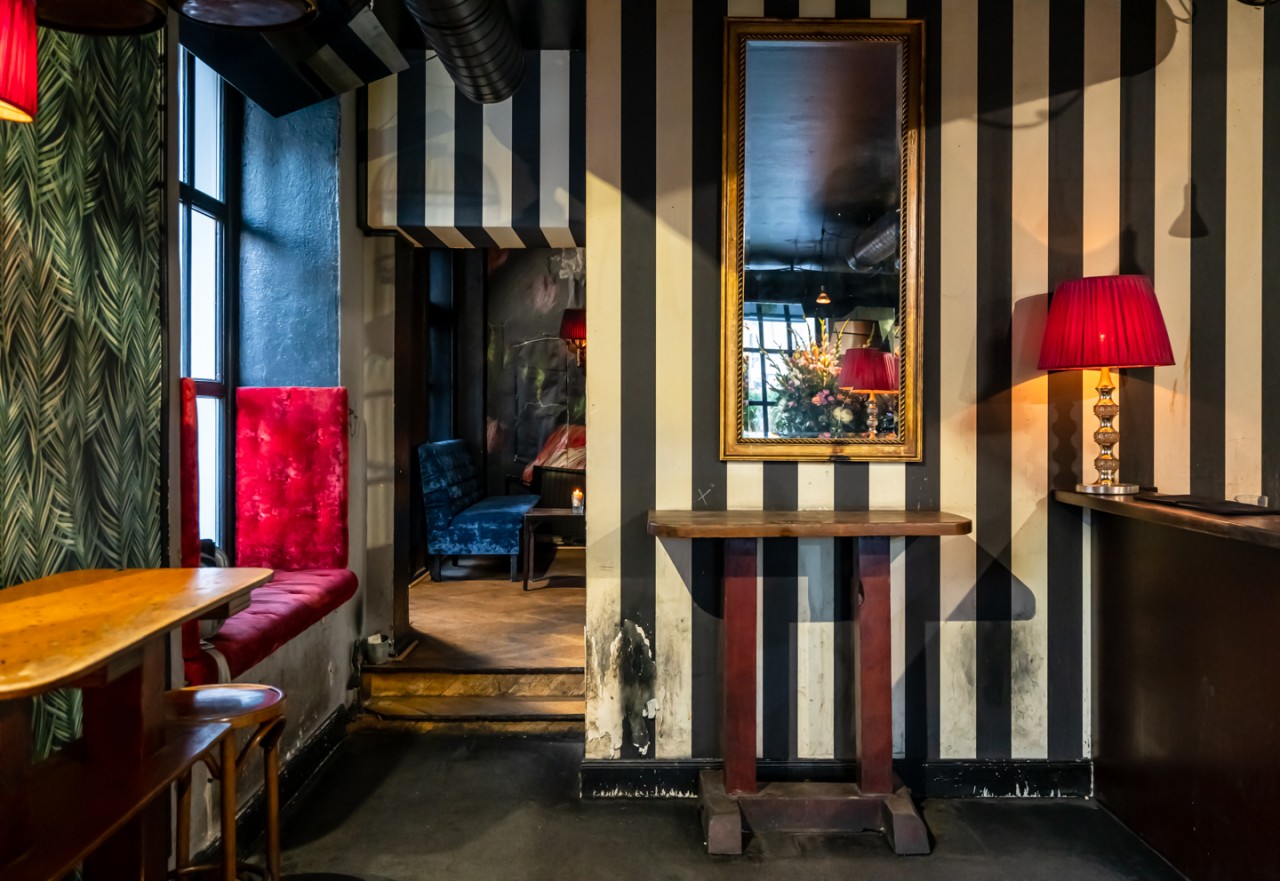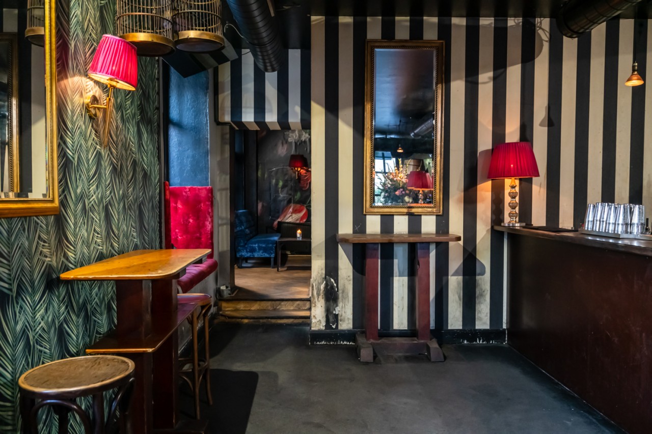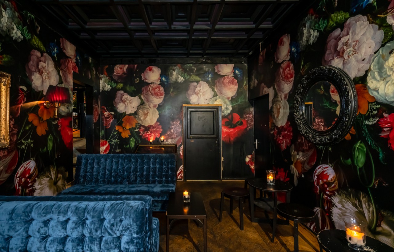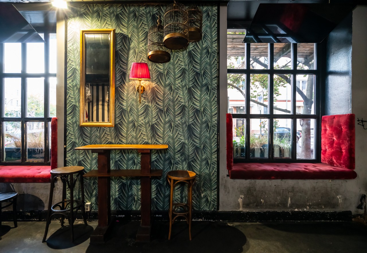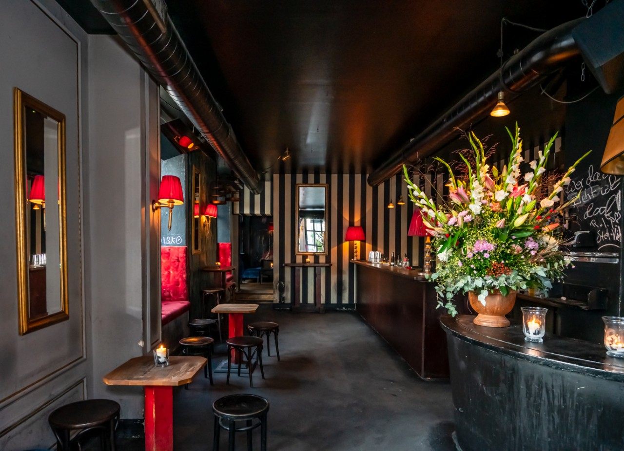 En el exterior cuenta con acogedores asientos y un alféizar acolchado; si entras, encontrarás un bar poco iluminado con velas y mesas de madera, papel pintado de flores y sofás de terciopelo azul que le confieren un ambiente chic atemporal.