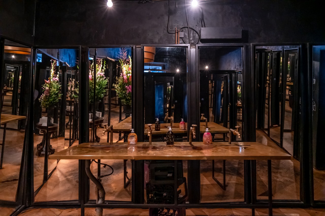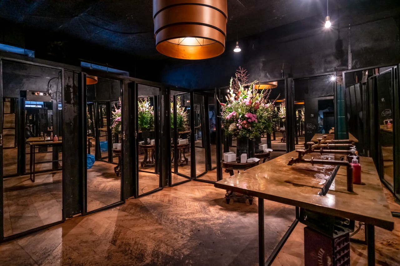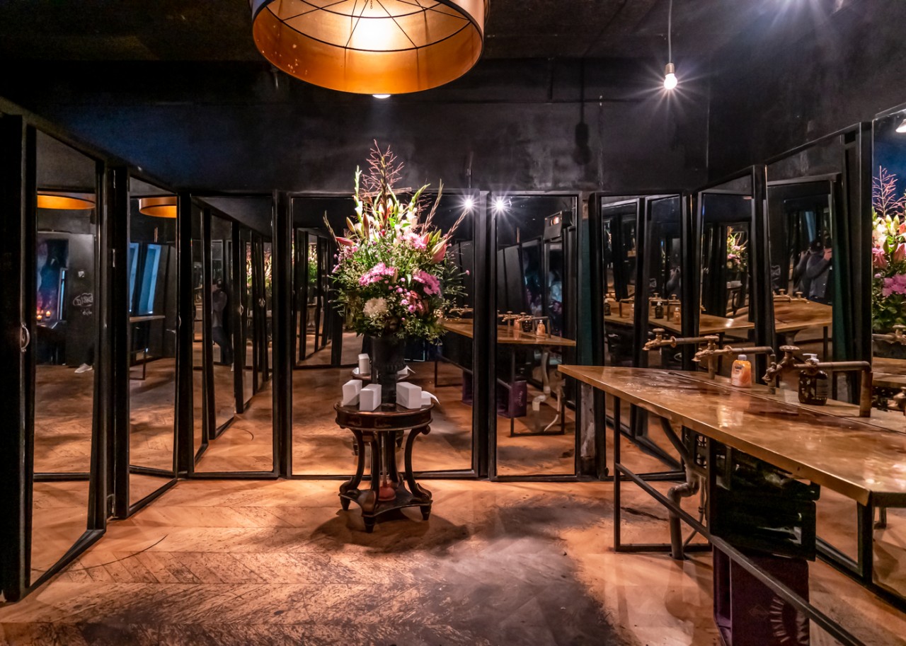 Los cuartos de baño también son únicos: muchos espejos, grifos extravagantes, flores y, en general, una decoración encantadora que le proporcionará una experiencia única mientras se empolva la nariz. Ideal para motivos de marcas cosméticas.