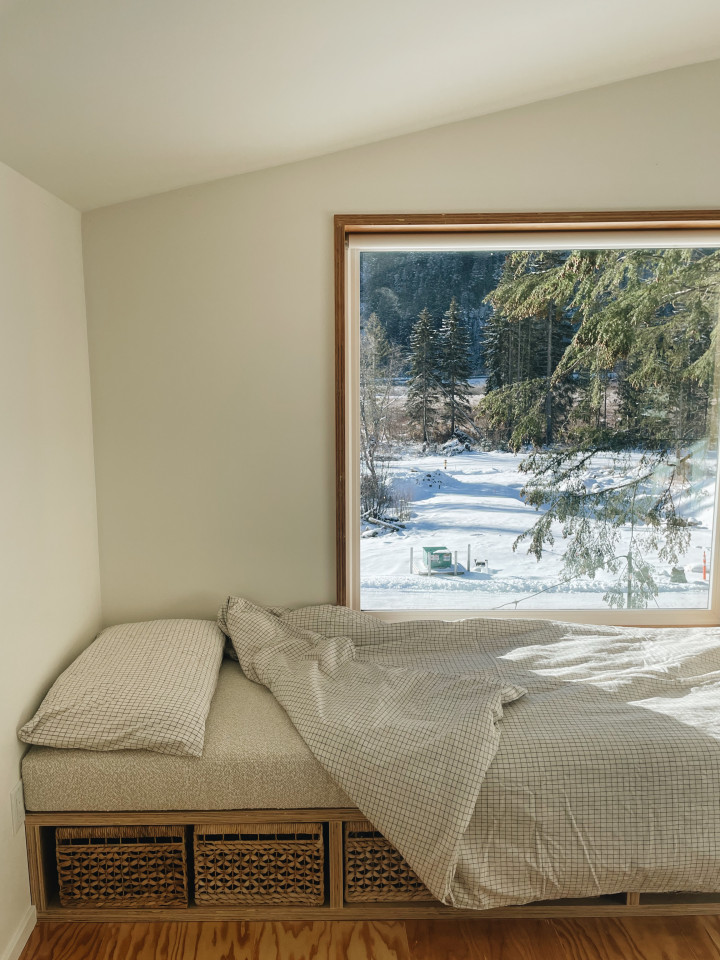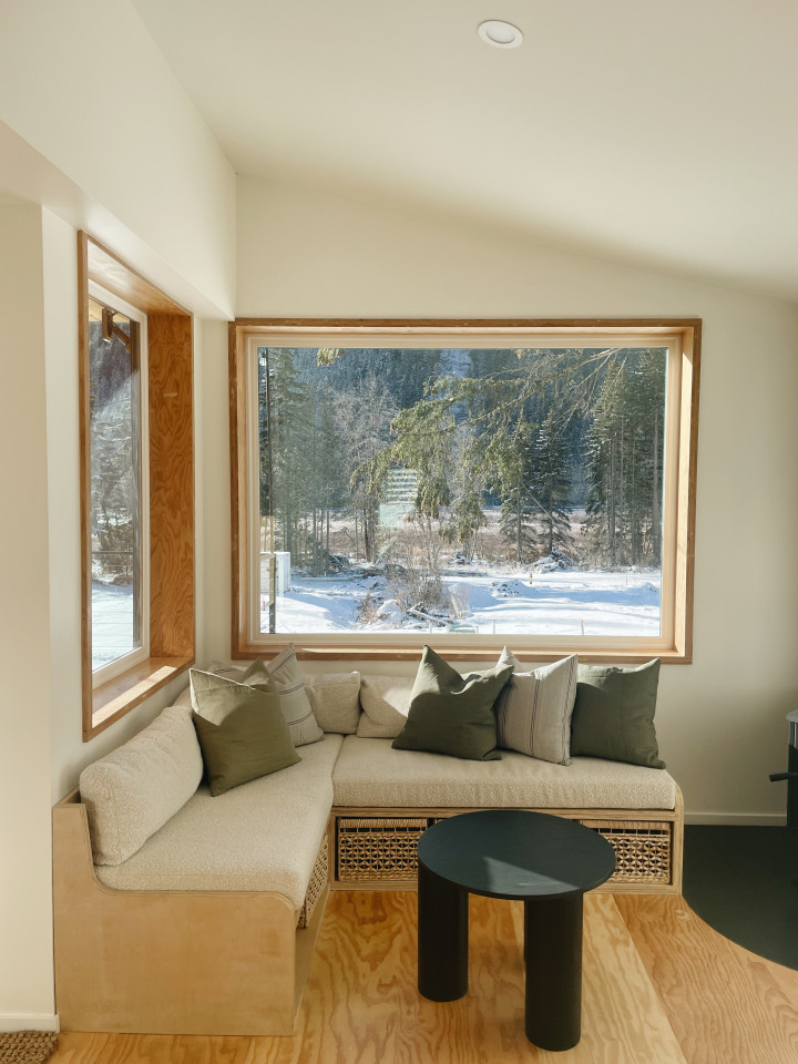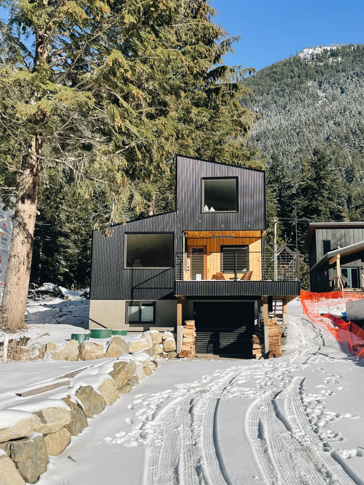 Questa casa moderna, progettata con cura, si trova leggermente arroccata sul fianco della montagna nella Sunshine Valley. (2 ore a est di Vancouver). Presenta tocchi speciali come le finiture e i pavimenti in legno naturale per collegare lo spazio con l'ambiente forestale circostante.