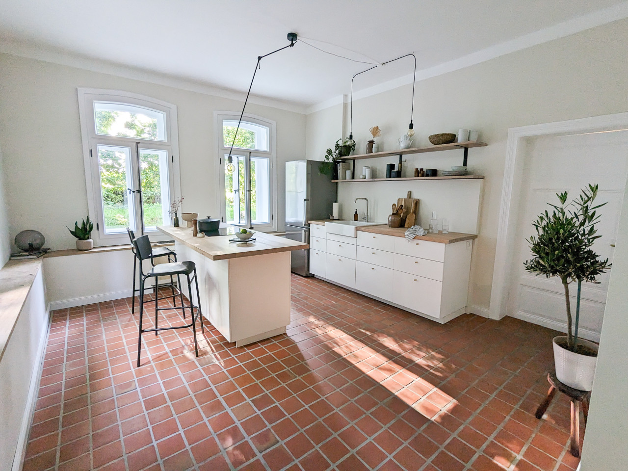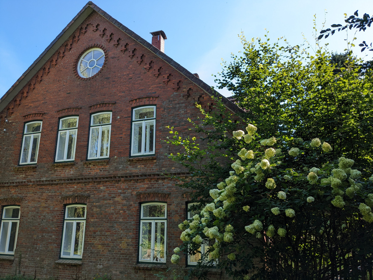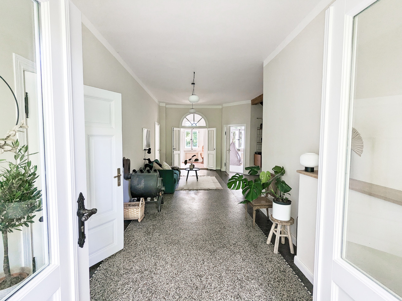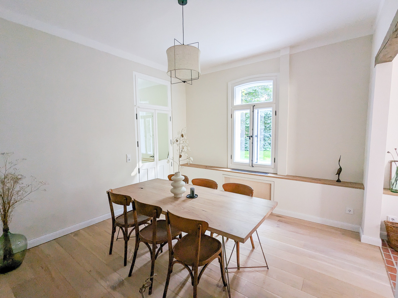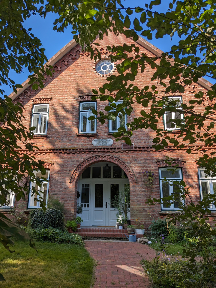 A refined convergence of historic brickwork and curated modernity, this evocative house presents a cinematic canvas for creative projects. The exterior—classic red and white brick, climbing florals, and an arched entry framed by lush gardens and sunlit pathways—offers timeless, editorial backdrops with a subtle rural nostalgia, inviting striking transitions from verdant serenity to contemporary interiors. Mature trees and sculpted greenery envelop the distinct facade, while terracotta roof tiles and original architectural contours lend a narrative richness and sense of place rarely encountered.