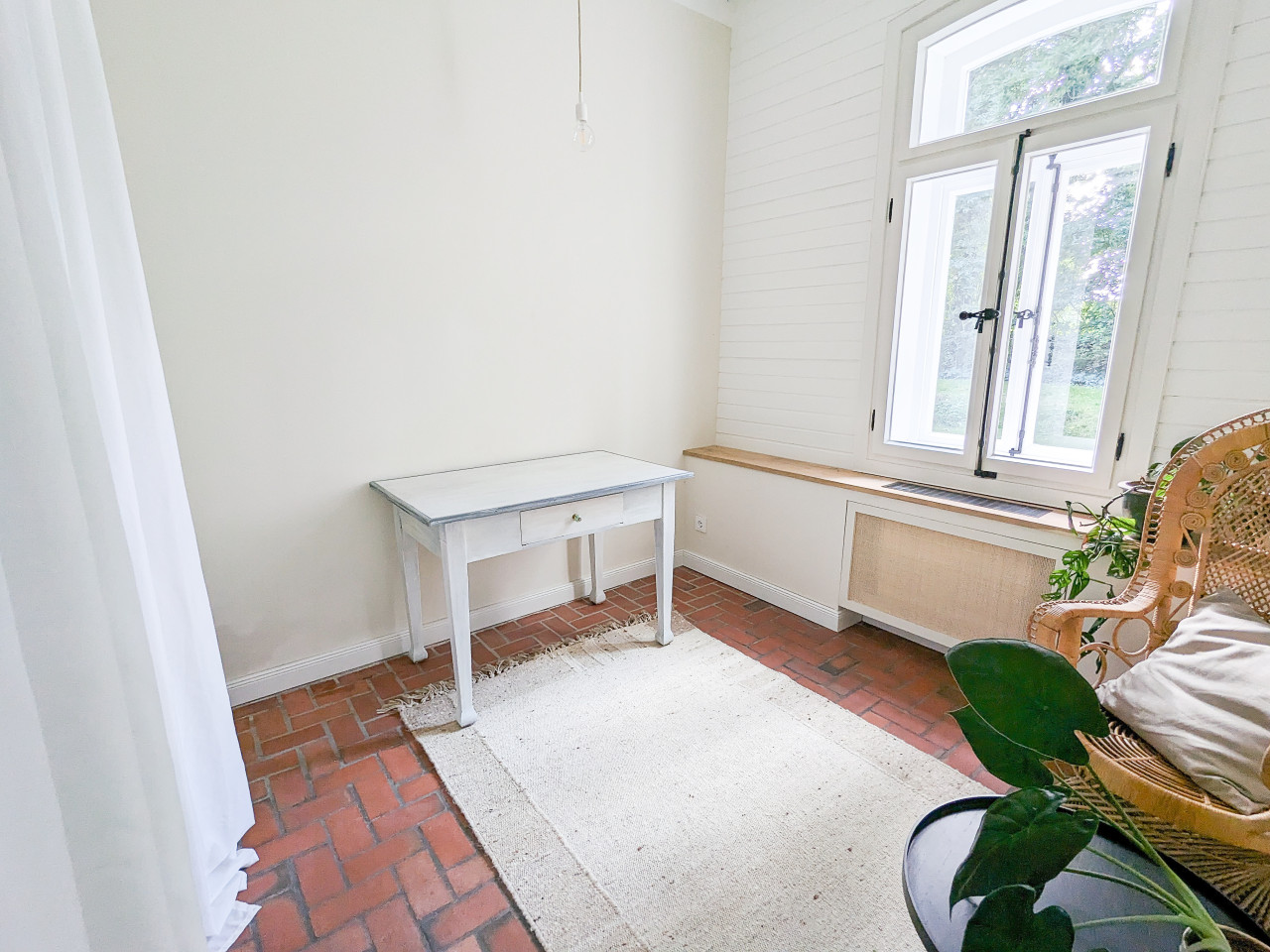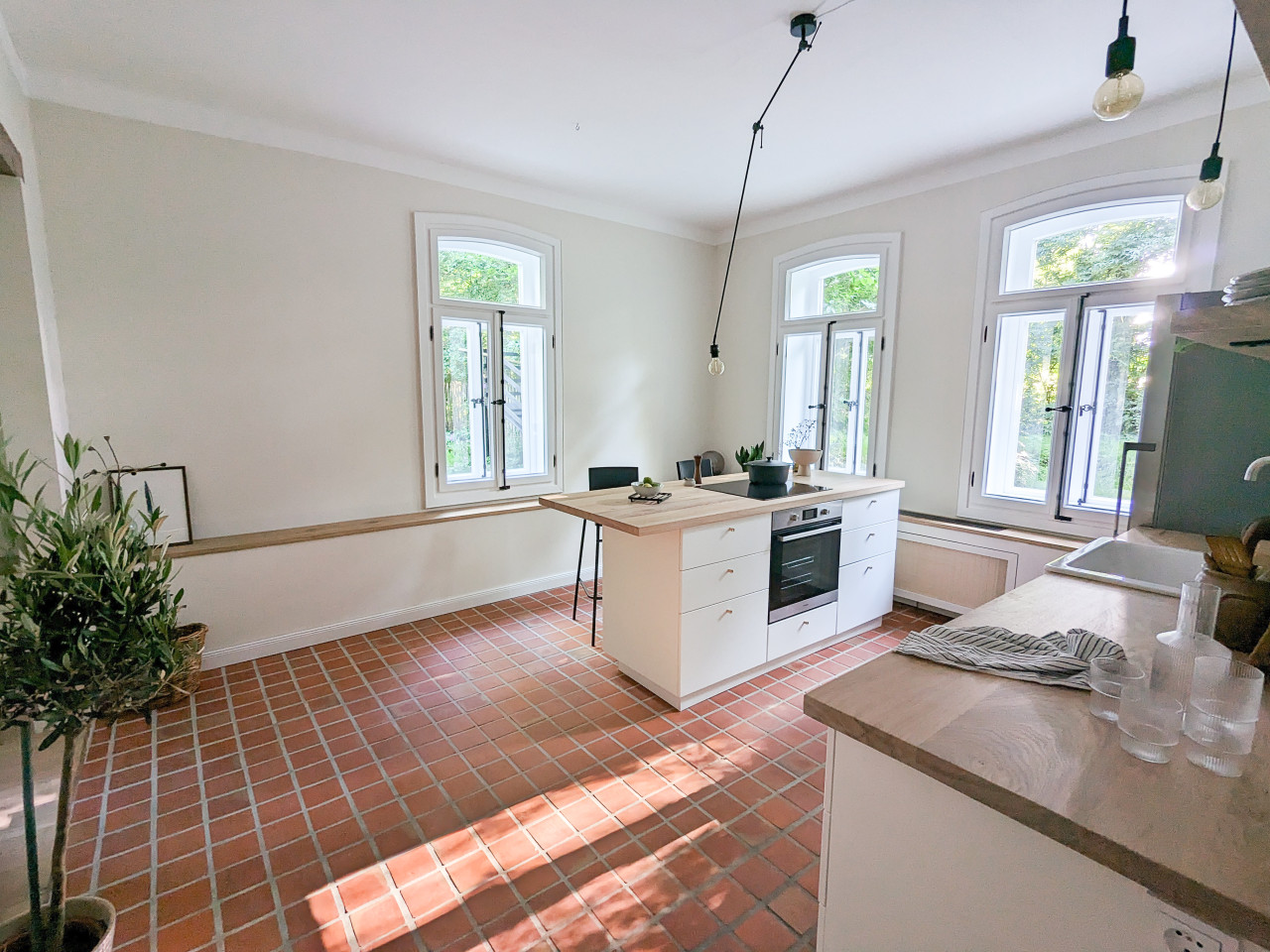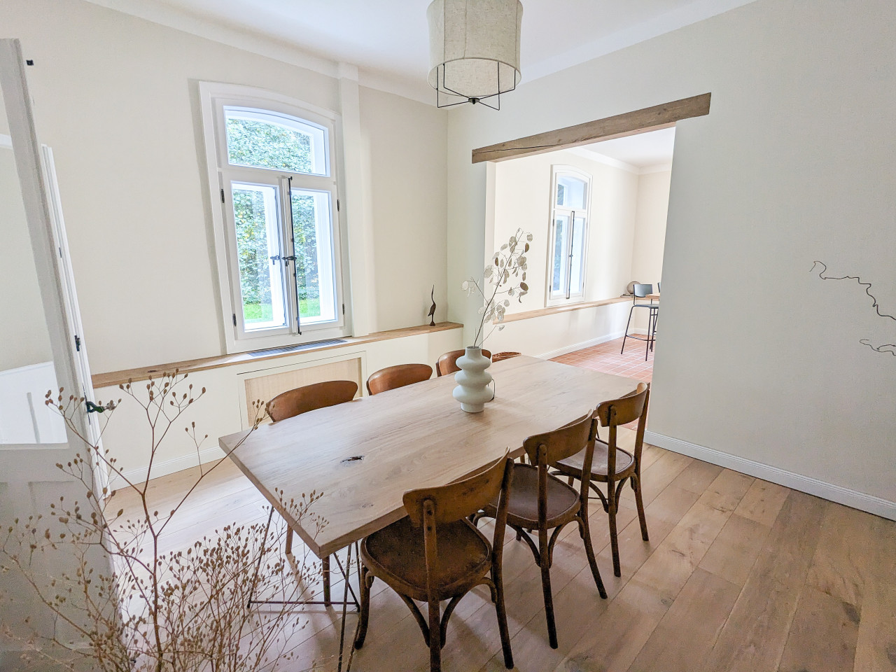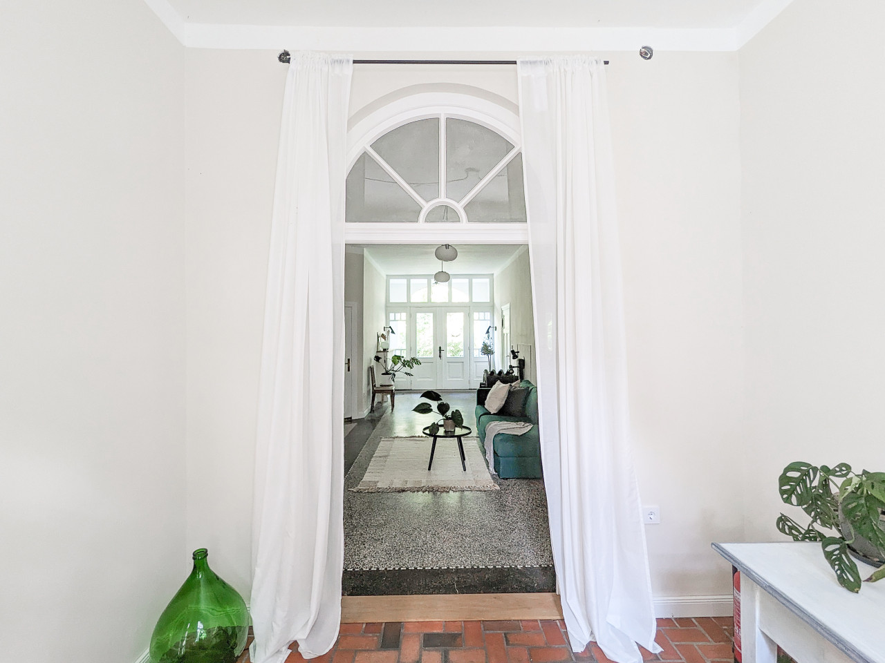 A refined convergence of historic brickwork and curated modernity, this evocative house presents a cinematic canvas for creative projects. The exterior—classic red and white brick, climbing florals, and an arched entry framed by lush gardens and sunlit pathways—offers timeless, editorial backdrops with a subtle rural nostalgia, inviting striking transitions from verdant serenity to contemporary interiors. Mature trees and sculpted greenery envelop the distinct facade, while terracotta roof tiles and original architectural contours lend a narrative richness and sense of place rarely encountered.