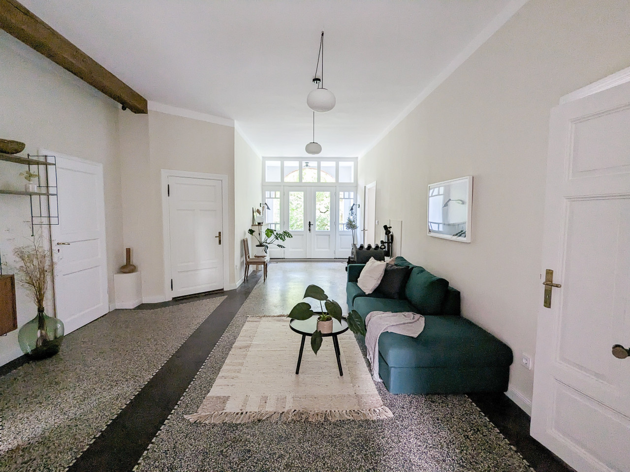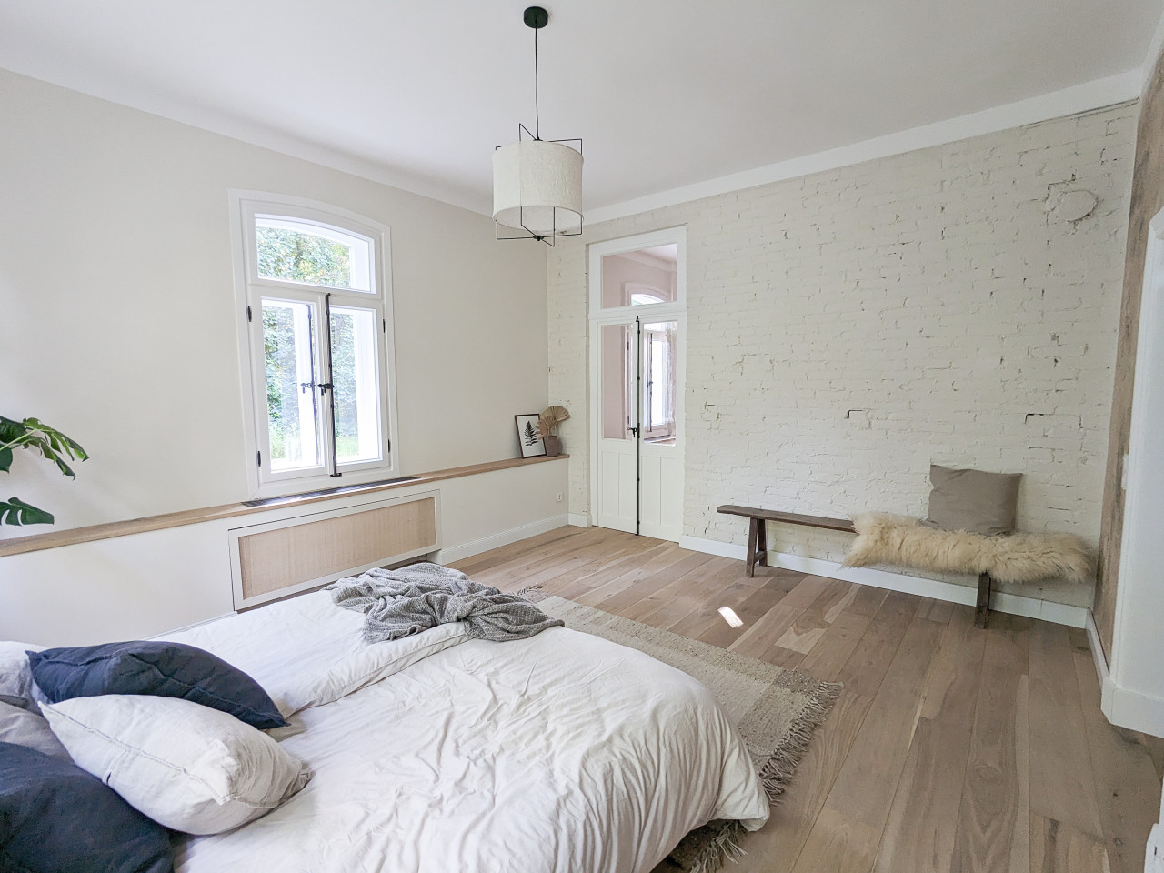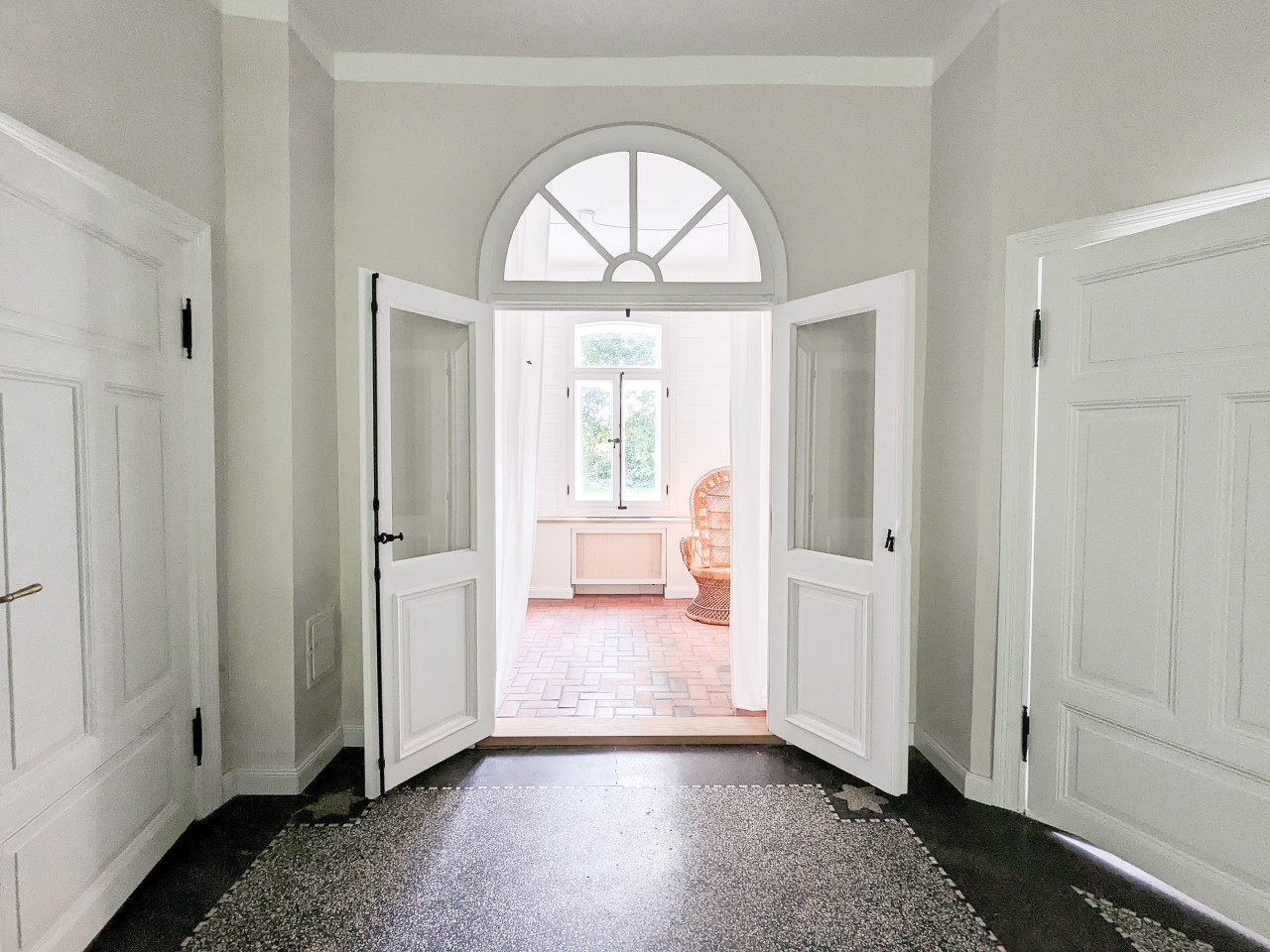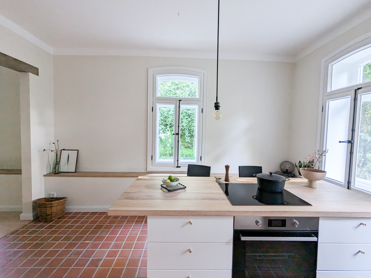 A refined convergence of historic brickwork and curated modernity, this evocative house presents a cinematic canvas for creative projects. The exterior—classic red and white brick, climbing florals, and an arched entry framed by lush gardens and sunlit pathways—offers timeless, editorial backdrops with a subtle rural nostalgia, inviting striking transitions from verdant serenity to contemporary interiors. Mature trees and sculpted greenery envelop the distinct facade, while terracotta roof tiles and original architectural contours lend a narrative richness and sense of place rarely encountered.