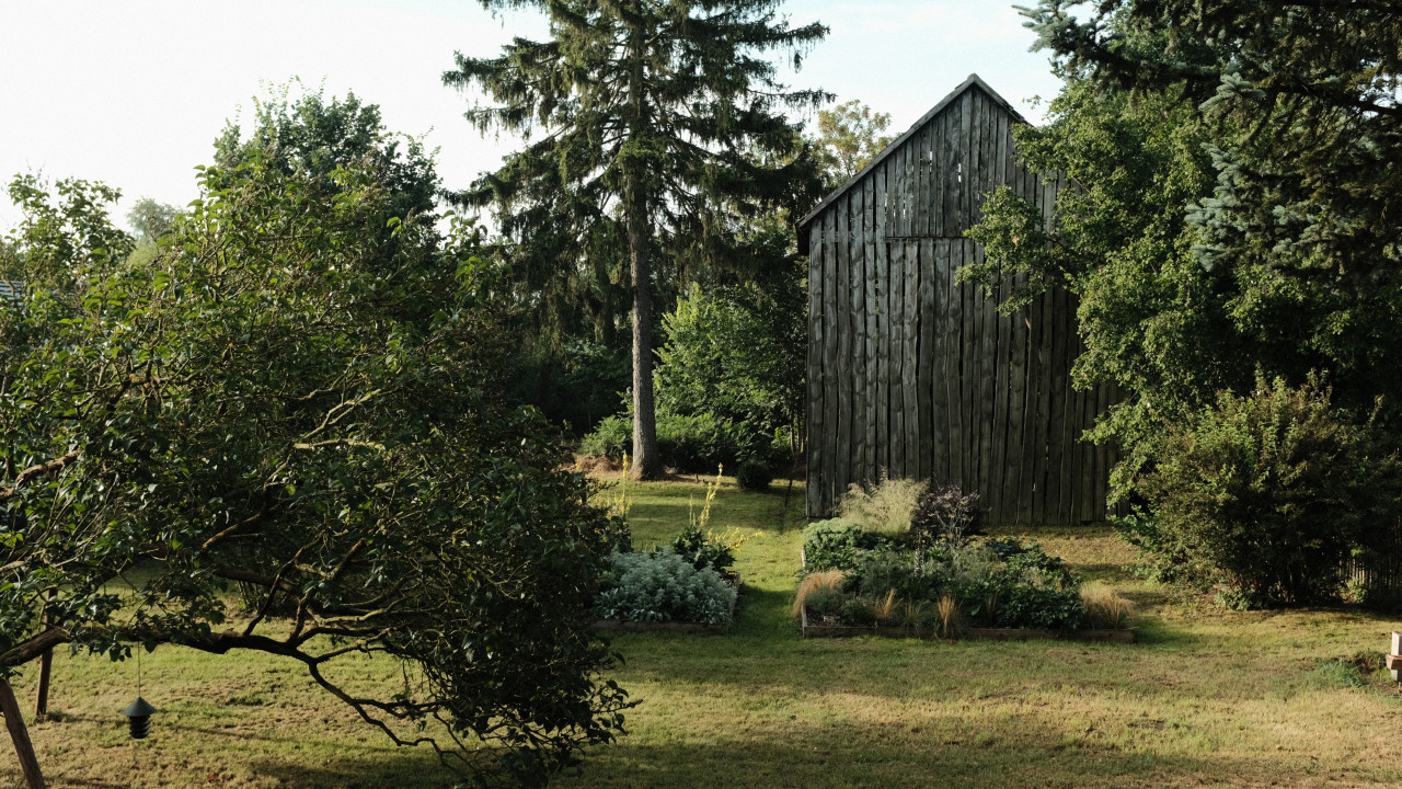 Circondato da campi, prati e boschi infiniti, il paesaggio intorno a questo idilliaco villaggio dell'Uckermark è tranquillo e ampio. Ai margini del villaggio si trova questa fattoria indipendente su tre lati, dove solo una gru occasionale fa la sua comparsa. A parte le attività agricole stagionali o le rare auto di passaggio, la tranquillità regna nella tenuta con giardino di 7.000 metri quadrati. La proprietà comprende una casa, una stalla e un capannone, oltre a uno storico fienile in legno per il tabacco tipico della regione.
