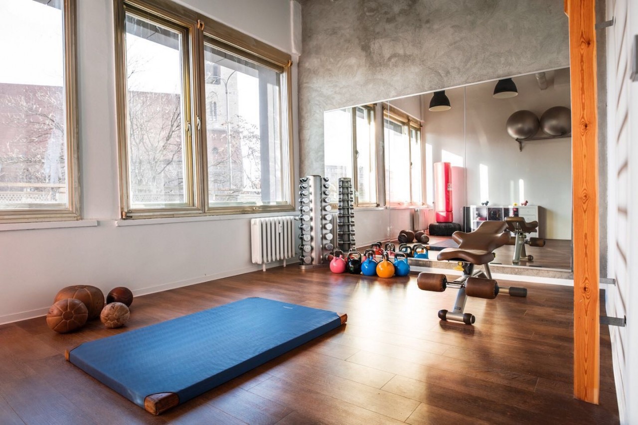 Entrate in un mondo in cui fitness e design si fondono perfettamente in questa struttura moderna, che vanta una palestra interna all'avanguardia e un bagno minimalista ed elegante. L'area della palestra è dotata di una serie di attrezzature di alta qualità, tra cui manubri, kettlebell, palle mediche, panche e bande di resistenza. I pavimenti in legno sono presenti in tutta l'area e conferiscono allo spazio un aspetto caldo e raffinato, mentre le ampie finestre invitano alla luce naturale per creare un ambiente stimolante per l'allenamento. La palette di accenti grigi, neri e blu della palestra, in contrasto con i tocchi rustici del legno e delle finiture metalliche, riflette sia la concentrazione che la motivazione di chi desidera mantenere il proprio regime di fitness. Il bagno della proprietà mantiene gli stessi elevati standard di stile e funzionalità, con un netto contrasto tra le pareti grigio scuro e gli infissi bianchi, per garantire un rifugio sereno. Grazie a soluzioni intelligenti per lo stoccaggio, come armadietti eleganti e piastrelle beige, questo spazio è tanto efficiente quanto rilassante. Grazie a un'illuminazione accurata, questa proprietà promette una miscela di lusso, comfort e utilità, perfetta per gli individui più esigenti che amano l'estetica moderna e uno stile di vita attivo.
