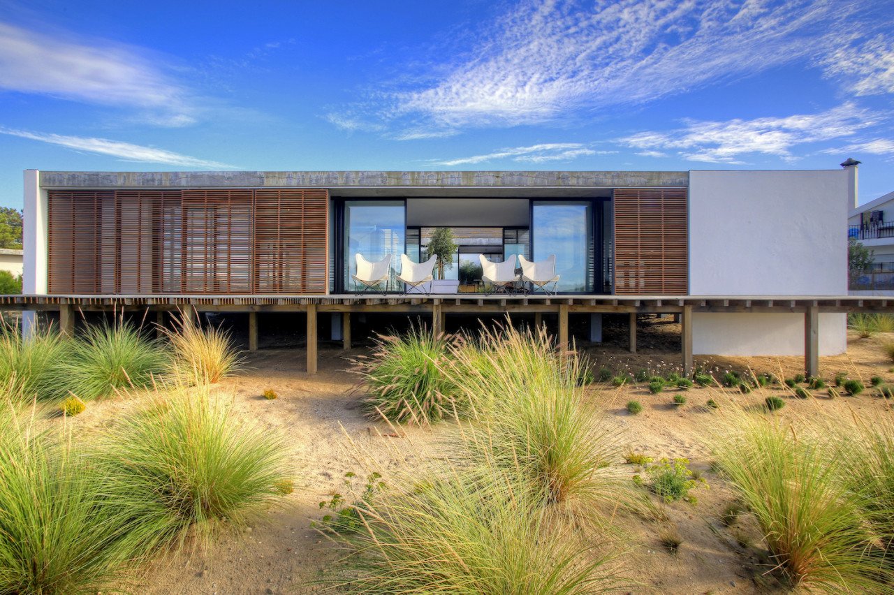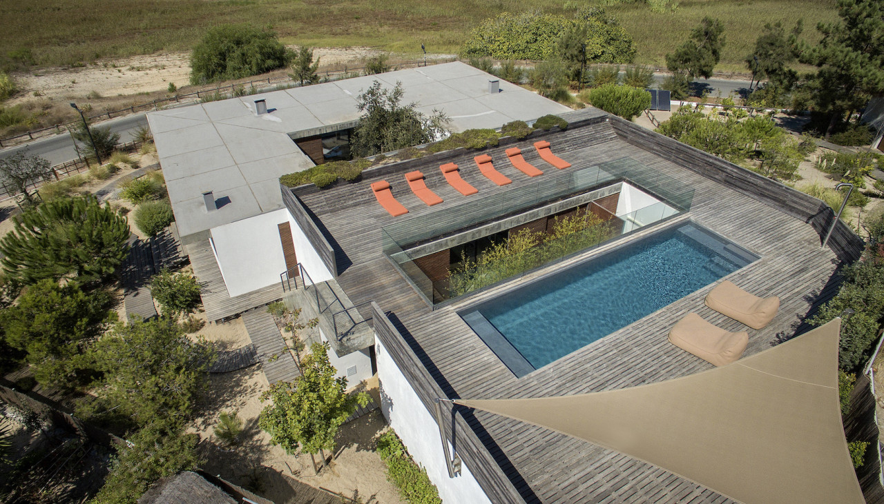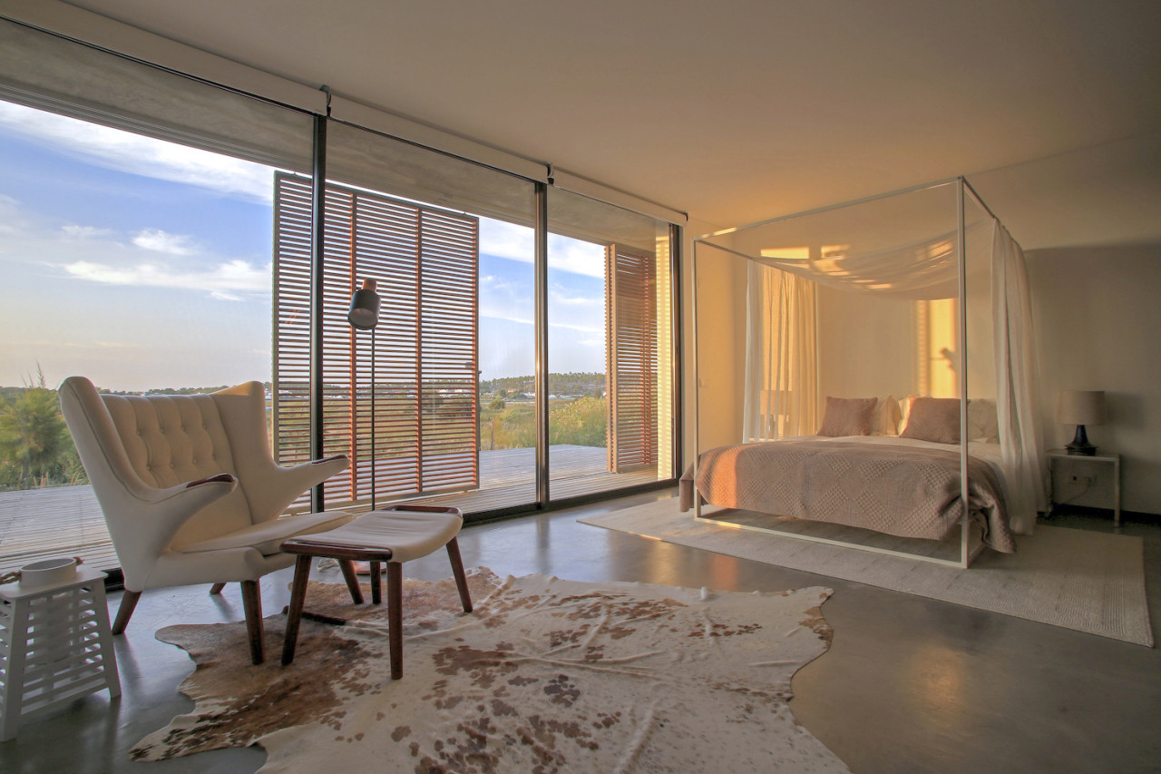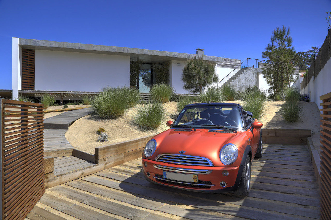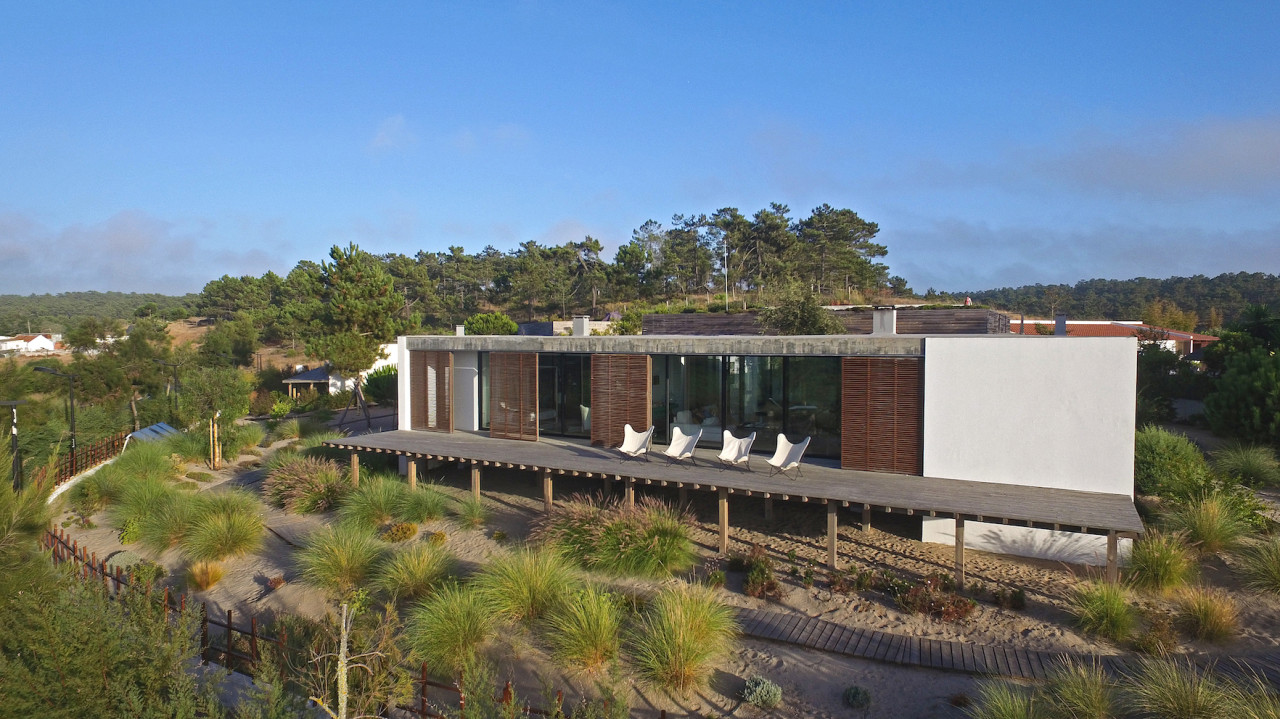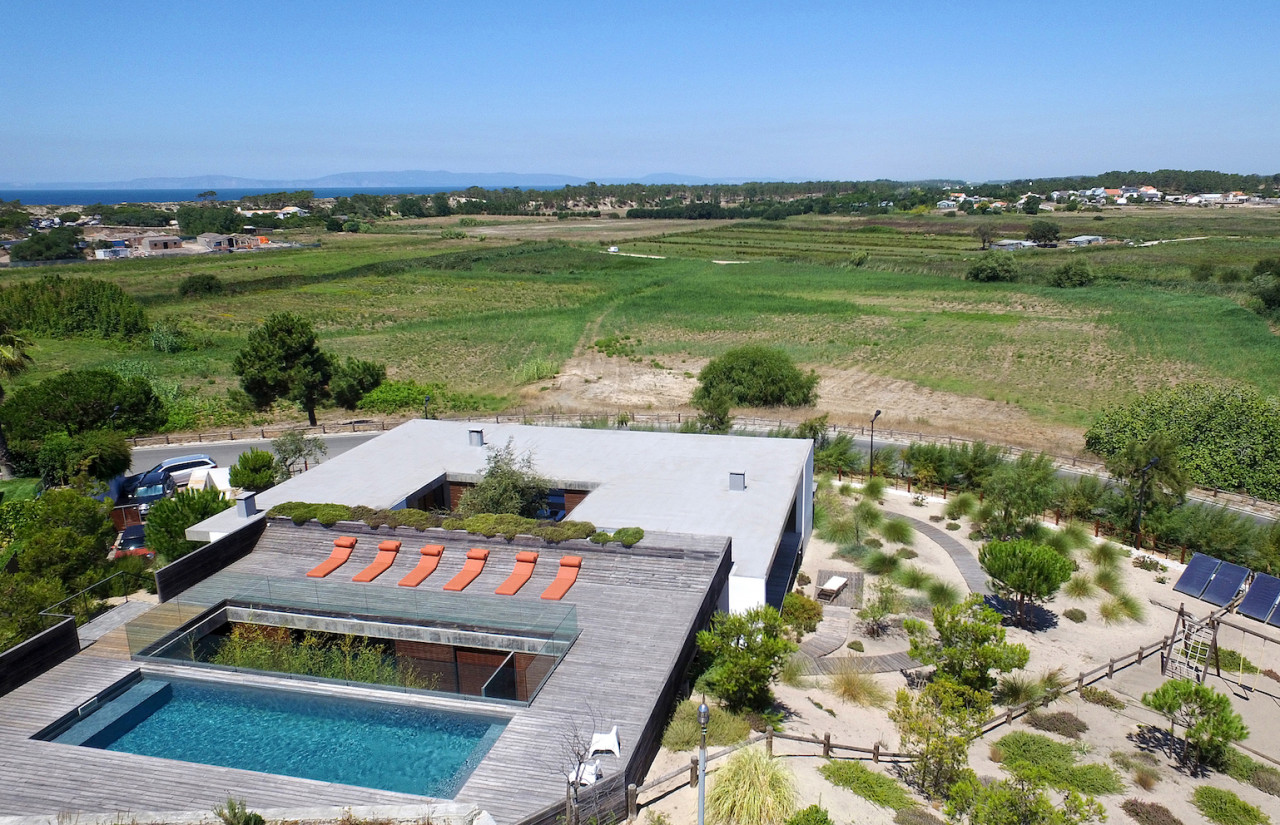 Questa villa di lusso sulla spiaggia è uno dei luoghi più esclusivi del Portogallo, un gioiello di architettura moderna progettato da Pedro Ferreira Pinto. Incastonata tra le dune di sabbia e situata a pochi metri dall'oceano, la villa si erge senza soluzione di continuità dal paesaggio naturale. Il suo design pulito e moderno mescola cemento, vetro e ponti in legno di pino per creare una fusione armoniosa tra architettura e natura. La casa presenta interni spaziosi e luminosi con mobili iconici della metà del secolo scorso, tra cui un camino sospeso. Finestre a tutta altezza si aprono su varie aree esterne, tra cui un giardino privato, un patio interno e un ponte anteriore che offre una vista mozzafiato. In cima alla villa si trova una soleggiata terrazza sul tetto rifinita in legno di pino, che vanta una splendida piscina riscaldata con vista panoramica sull'Atlantico e sulle dune circostanti. Le zone giorno a pianta aperta sono progettate per garantire comfort e stile, compresa una cucina elegante con finiture naturali e passaggi fluidi tra spazi interni ed esterni. Questo rifugio appartato offre privacy totale, tranquillità e un'atmosfera lussuosa, rendendolo una fuga davvero indimenticabile sulla costa portoghese.