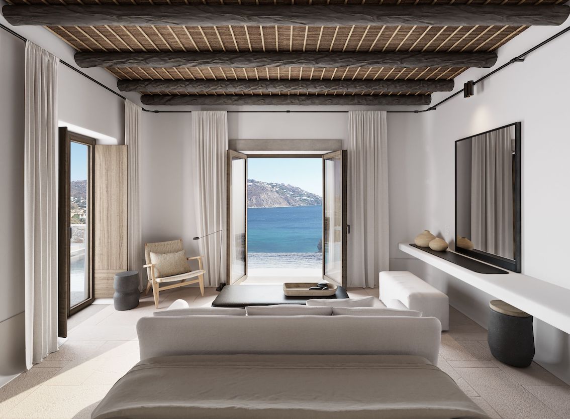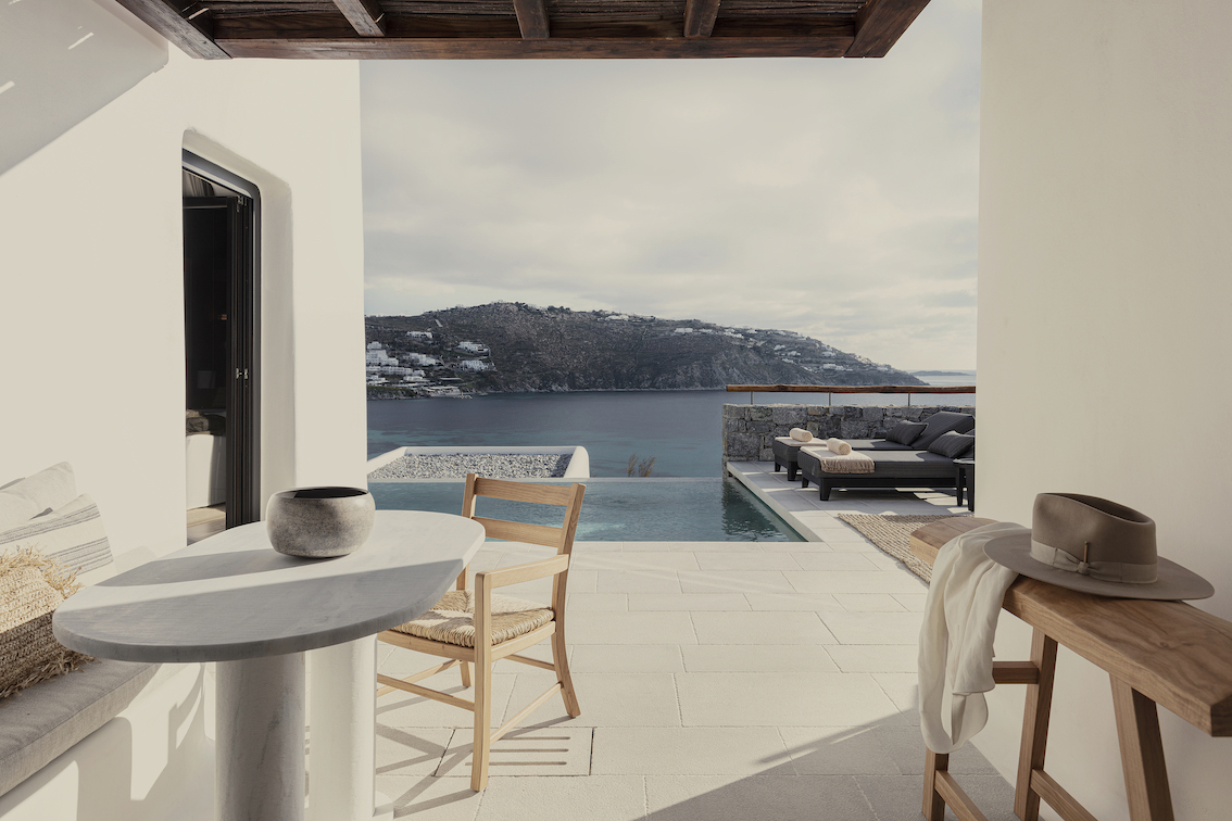 Kálesma Mykonos è il frutto di una collaborazione senza punti di sutura tra K-Studio, Studio Bonarchi e i proprietari dell'hotel, che unisce il modernismo alla tradizione locale, reinventando l'ospitalità di Mykonos e proponendo un'esperienza di vita isolana rilassata.