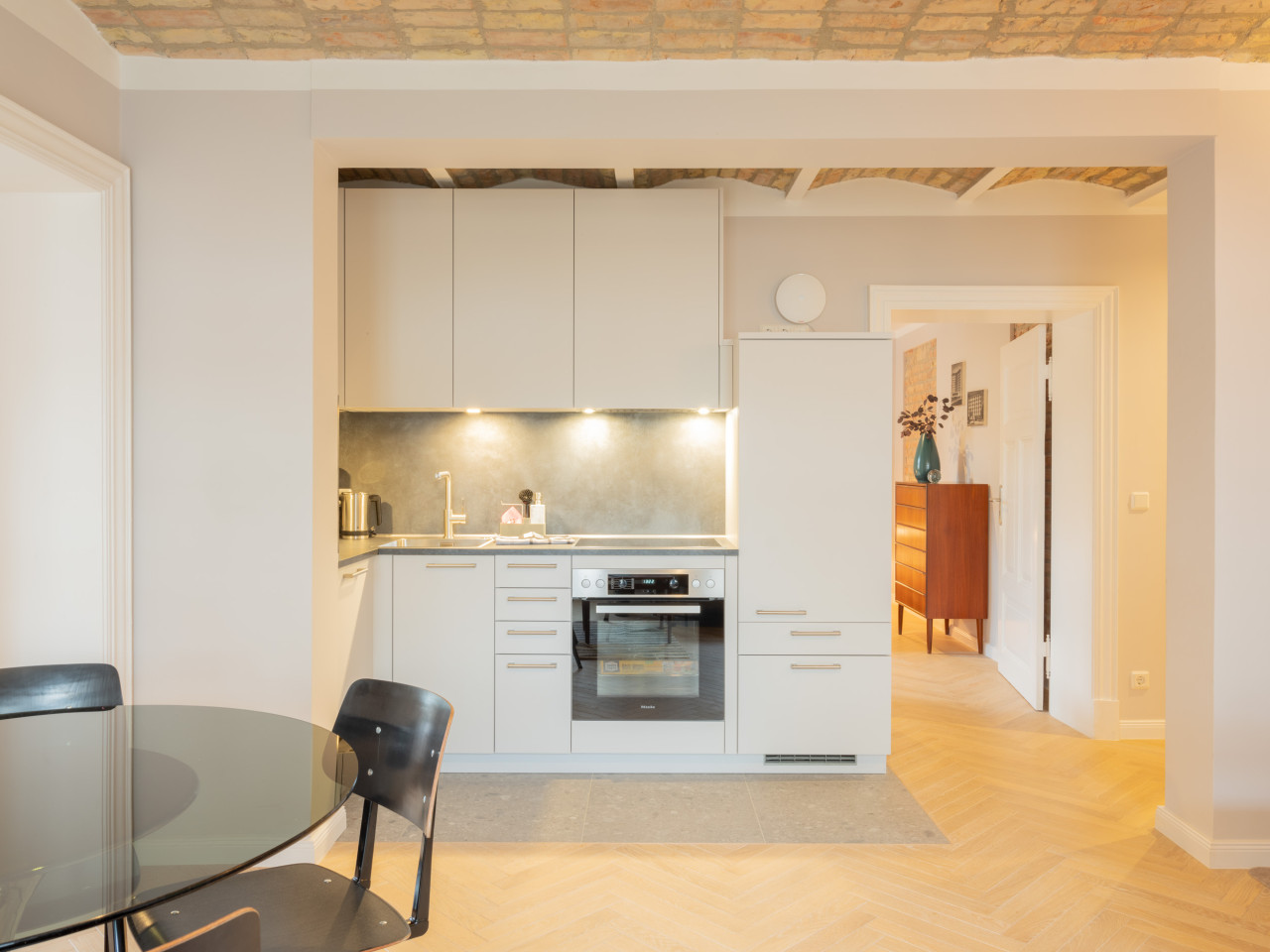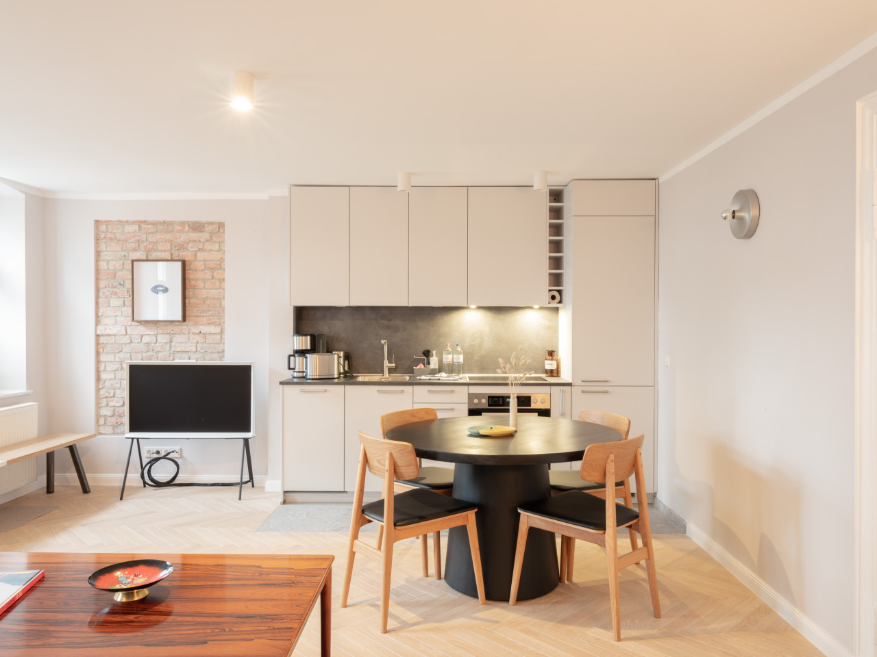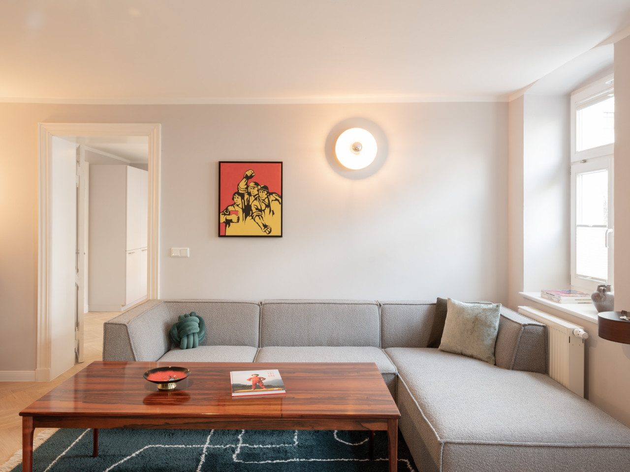Meticolosamente ristrutturati con grande attenzione ai dettagli, forniscono la cornice perfetta per interni accuratamente selezionati e ben posizionati, creando un'estetica senza tempo. Oggetti di design di marchi e atelier come VON WILMOWSKY, Caspar Huckfeldt, NUTSANDWOODS e Loft Kolasiński sono abbinati a tesori storici come i manifesti originali delle Olimpiadi di Monaco del 1972.