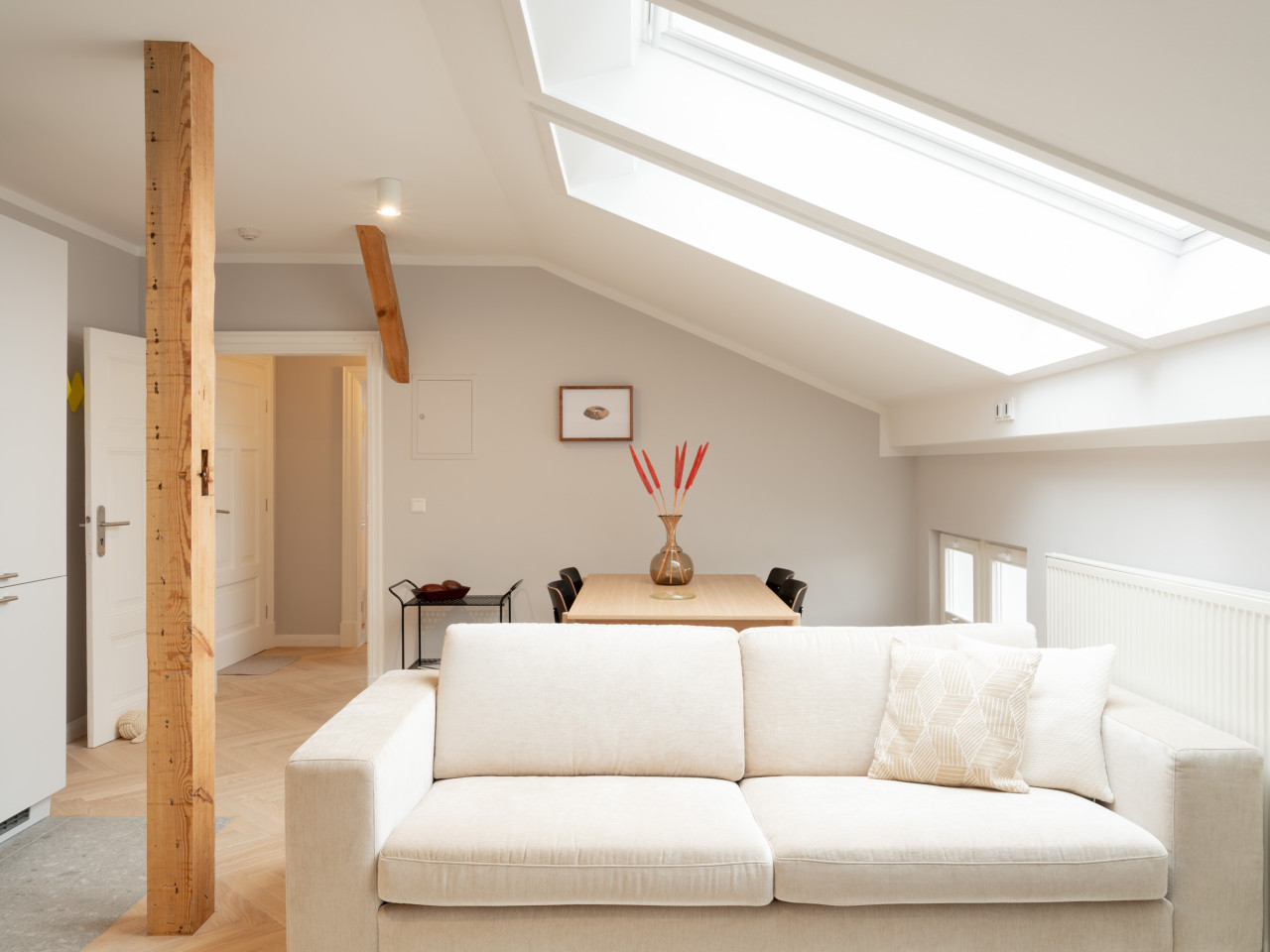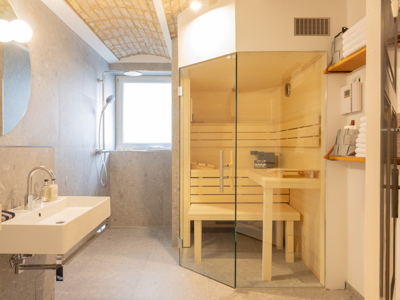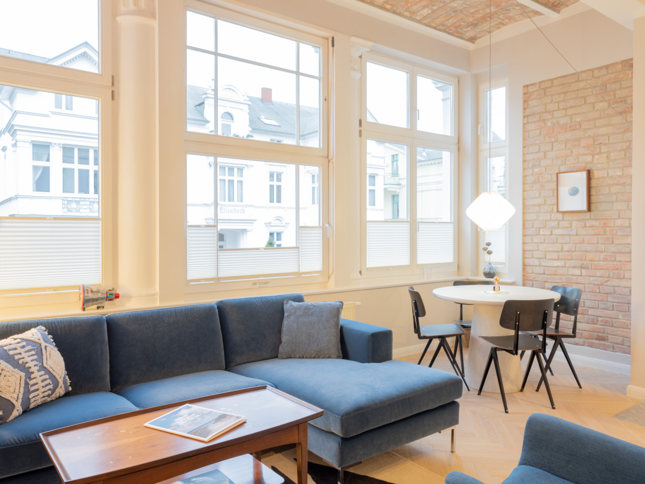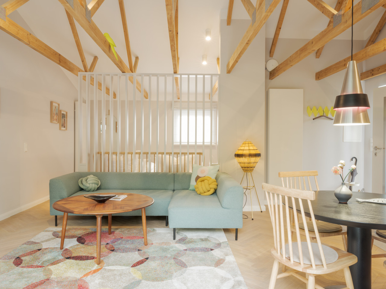 Meticolosamente ristrutturati con grande attenzione ai dettagli, forniscono la cornice perfetta per interni accuratamente selezionati e ben posizionati, creando un'estetica senza tempo. Oggetti di design di marchi e atelier come VON WILMOWSKY, Caspar Huckfeldt, NUTSANDWOODS e Loft Kolasiński sono abbinati a tesori storici come i manifesti originali delle Olimpiadi di Monaco del 1972.