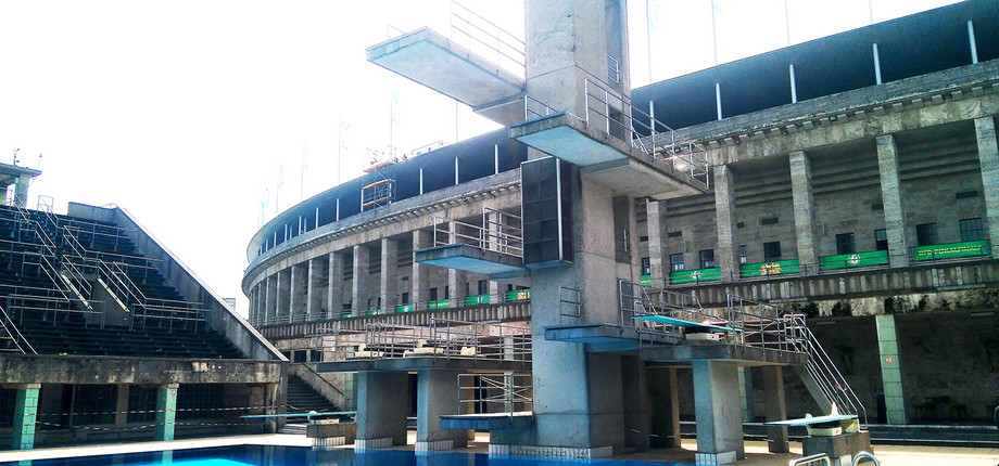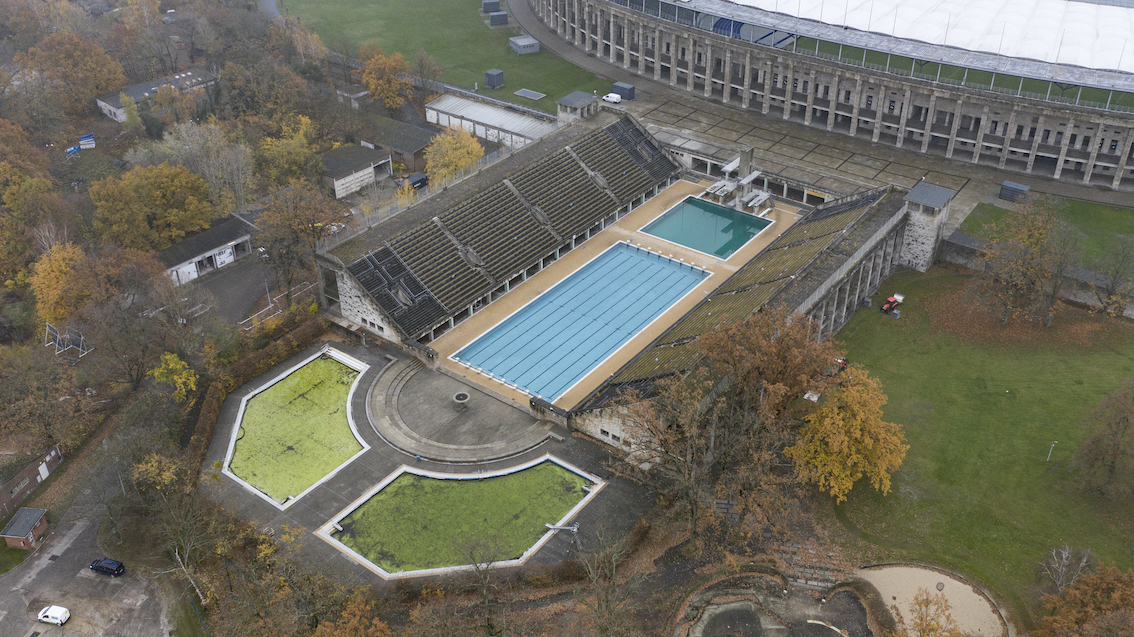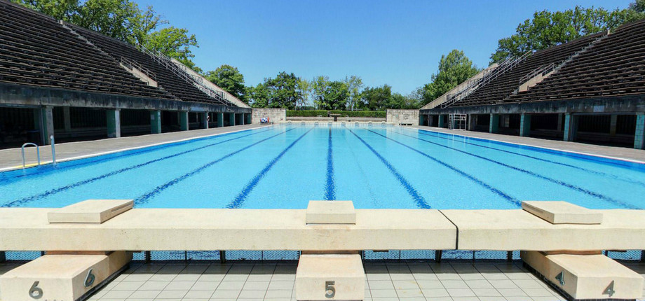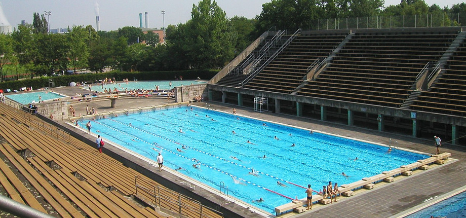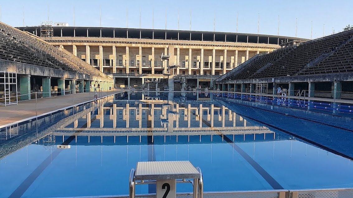 Esempio di design monumentale ispirato al Bauhaus, la Piscina Olimpica di Berlino è un gioiello architettonico che bilancia simmetria pulita, texture di pietra grezza e vaste distese all'aperto. Costruita accanto all'Olympiastadion per i Giochi Olimpici del 1936, i suoi colonnati scenografici, le linee geometriche nette e le imponenti piattaforme per i tuffi creano un'ambientazione di grande impatto visivo, perfetta per produzioni cinematografiche, fotografiche e per eventi.