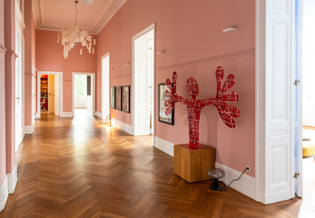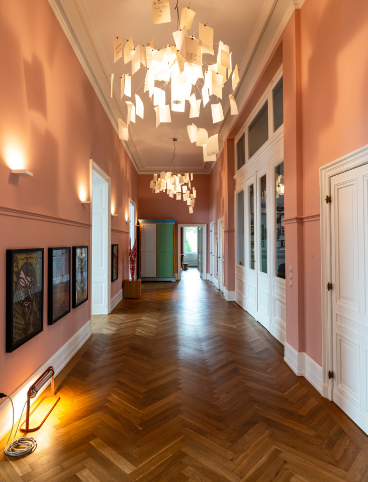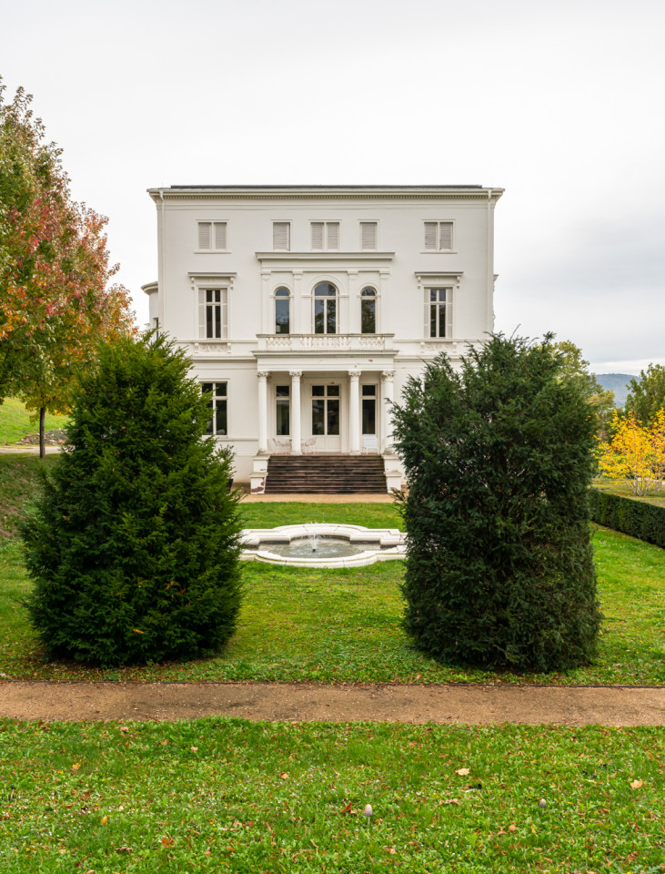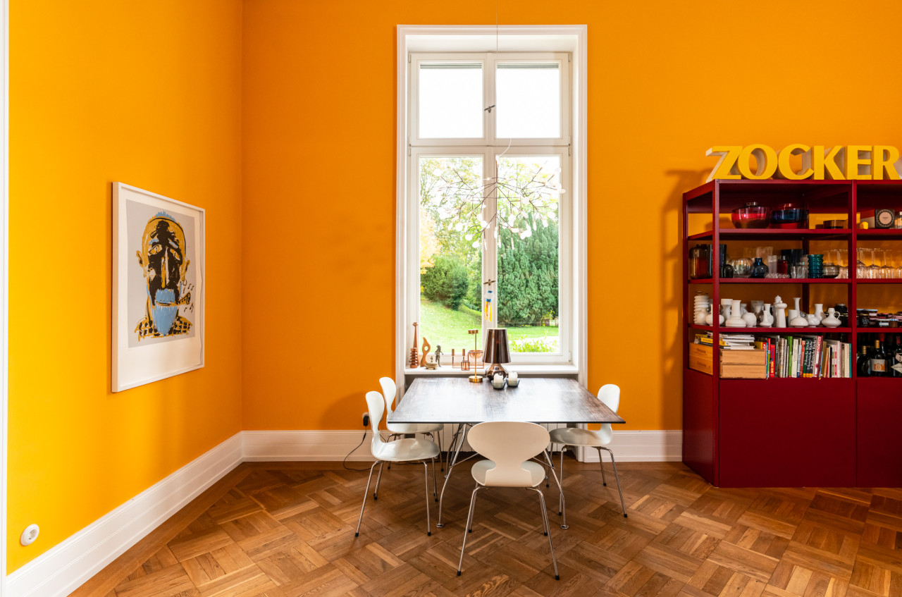 A solo un'ora di distanza dalla vivace città di Francoforte, questa splendida villa bianca combina un'eleganza senza tempo con un design interno vivace e moderno.