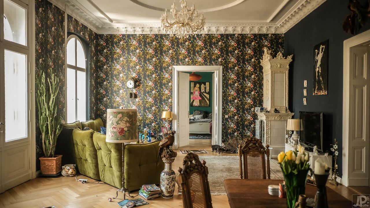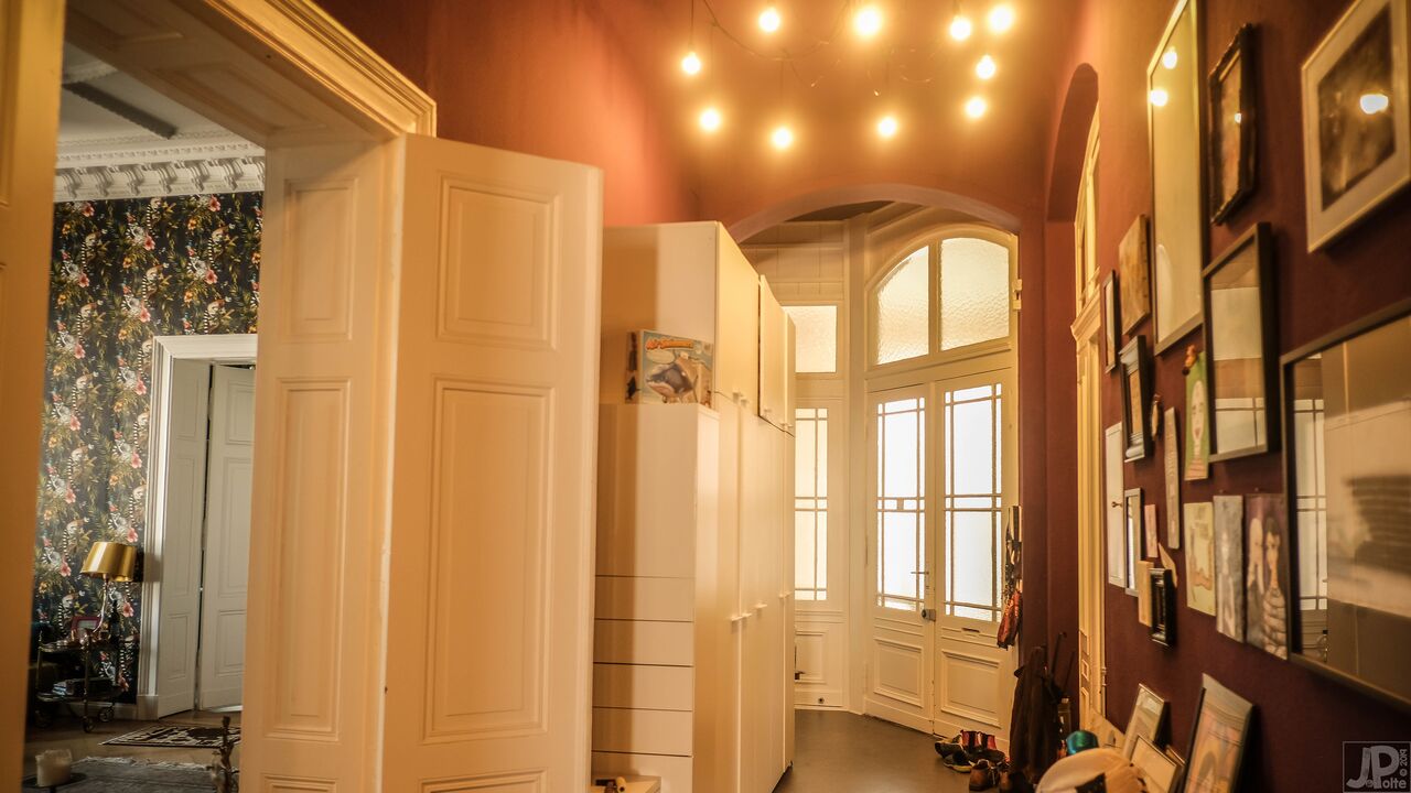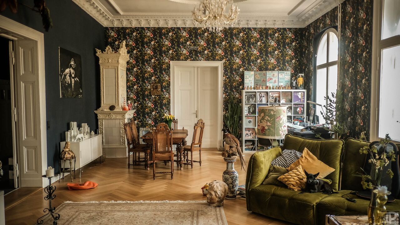 Scoprite il fascino senza tempo di questo storico edificio in mattoni, impreziosito dalla sua vicinanza al sussurro di alberi verdi e alle pittoresche strade di ciottoli. L'edificio vanta un carismatico mix di architettura storica e sereno ambiente naturale, con un balcone bianco che si affaccia su un giardino che si tinge di mistero e sottile decadenza. All'interno, ogni stanza racconta una storia, dai salotti vintage elegantemente arredati con carta da parati floreale e accoglienti divani verdi ai tocchi artistici nei corridoi, ornati da opere d'arte eclettiche e da un singolare teschio di cervo. Gli spazi abitativi sono pervasi da un senso di rilassata eleganza, sottolineata dai toni caldi delle pareti color terra e dal bagliore della luce naturale che filtra dalle ampie finestre.