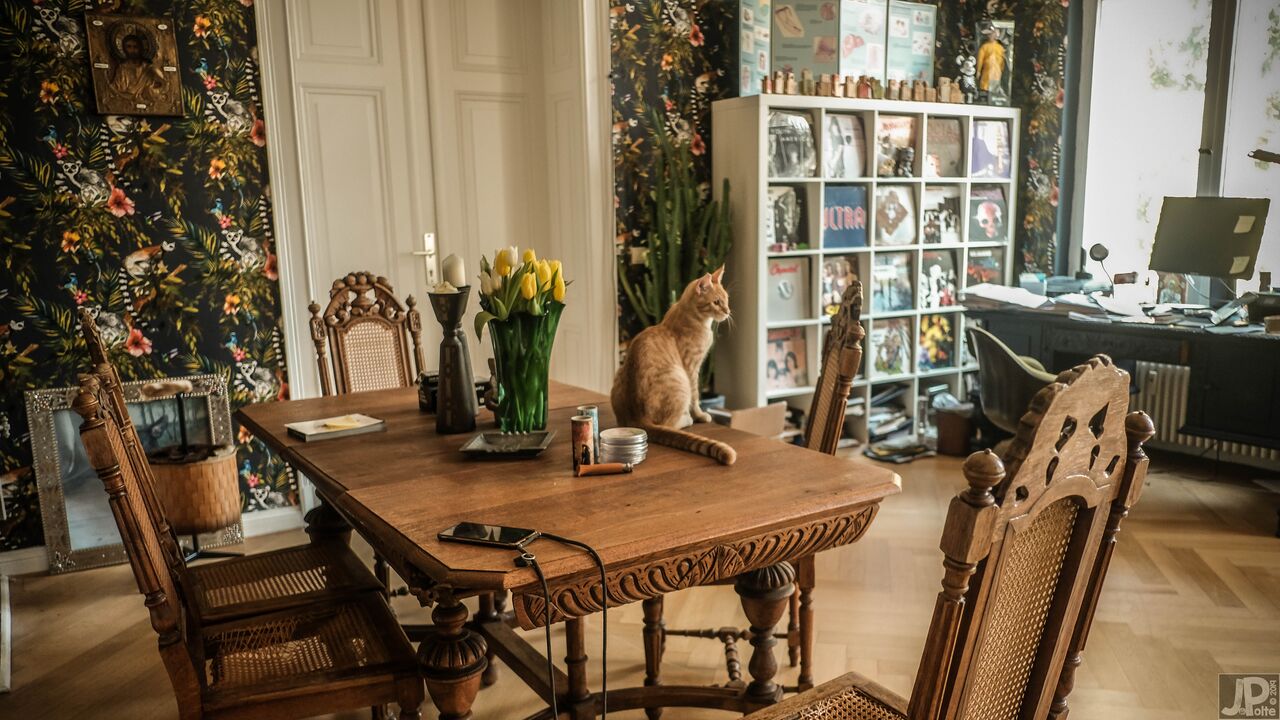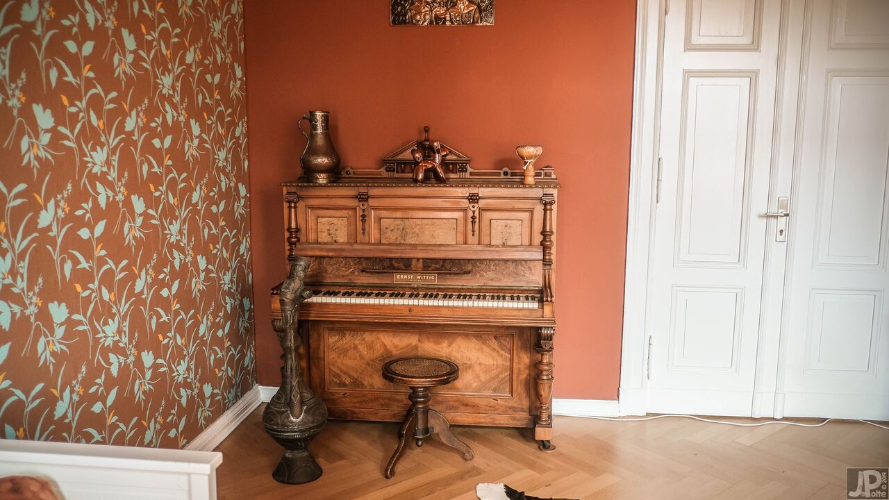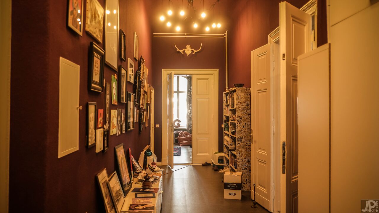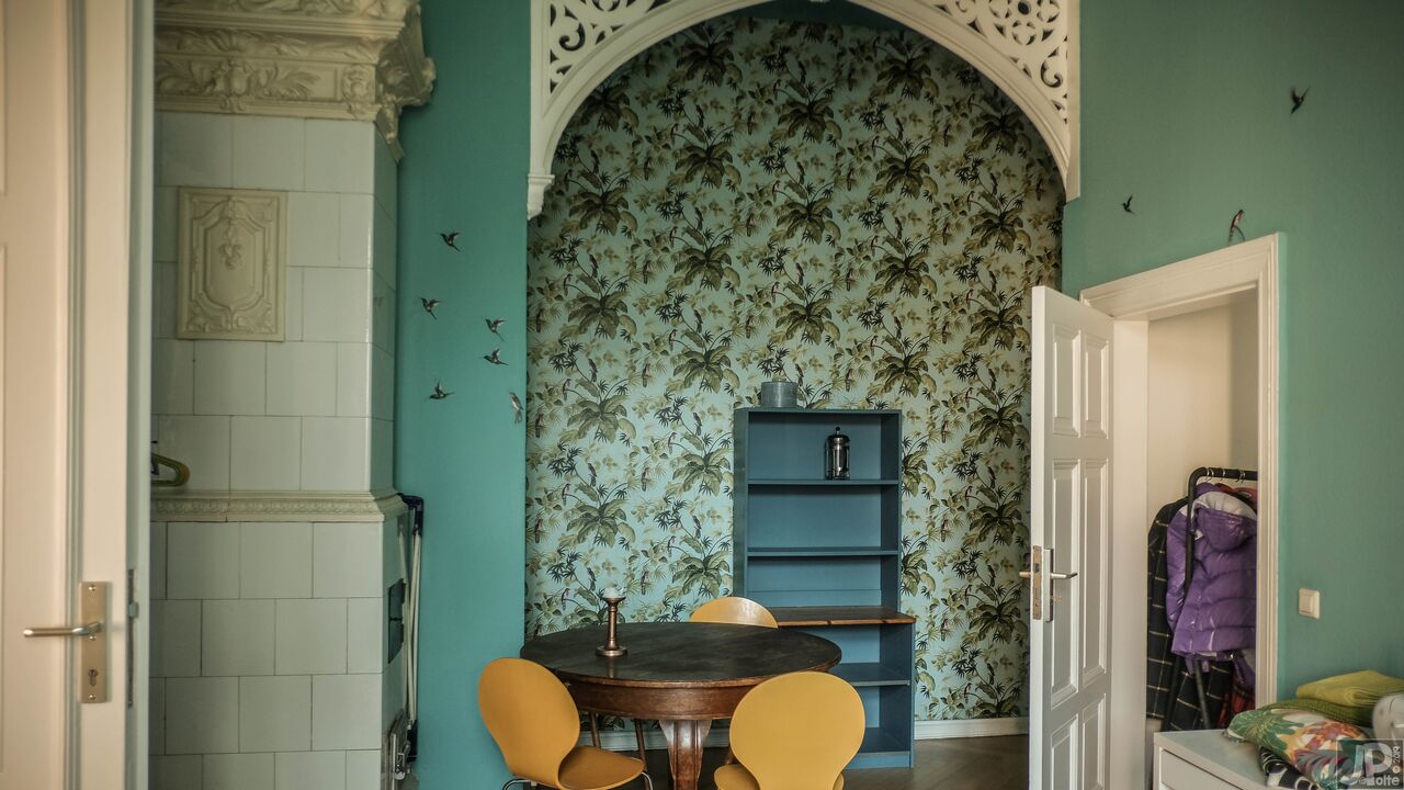 Scoprite il fascino senza tempo di questo storico edificio in mattoni, impreziosito dalla sua vicinanza al sussurro di alberi verdi e alle pittoresche strade di ciottoli. L'edificio vanta un carismatico mix di architettura storica e sereno ambiente naturale, con un balcone bianco che si affaccia su un giardino che si tinge di mistero e sottile decadenza. All'interno, ogni stanza racconta una storia, dai salotti vintage elegantemente arredati con carta da parati floreale e accoglienti divani verdi ai tocchi artistici nei corridoi, ornati da opere d'arte eclettiche e da un singolare teschio di cervo. Gli spazi abitativi sono pervasi da un senso di rilassata eleganza, sottolineata dai toni caldi delle pareti color terra e dal bagliore della luce naturale che filtra dalle ampie finestre.