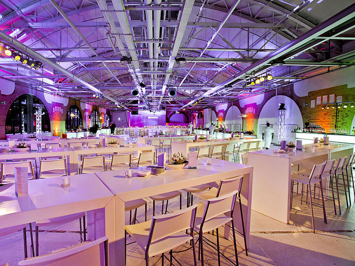 Scoprite una squisita miscela di storia industriale ed eleganza moderna in questa struttura tentacolare che combina senza sforzo un'architettura spaziosa con una finezza contemporanea. Con ampie sale dai soffitti alti, incorniciate da suggestive pareti in mattoni e grandi finestre ad arco, questo locale offre un'atmosfera serena e al tempo stesso vibrante. Il pavimento bianco lucido e le superfici riflettenti amplificano la luce naturale che entra, creando un ambiente invitante perfetto per una varietà di eventi, da mostre esuberanti a conferenze sofisticate.