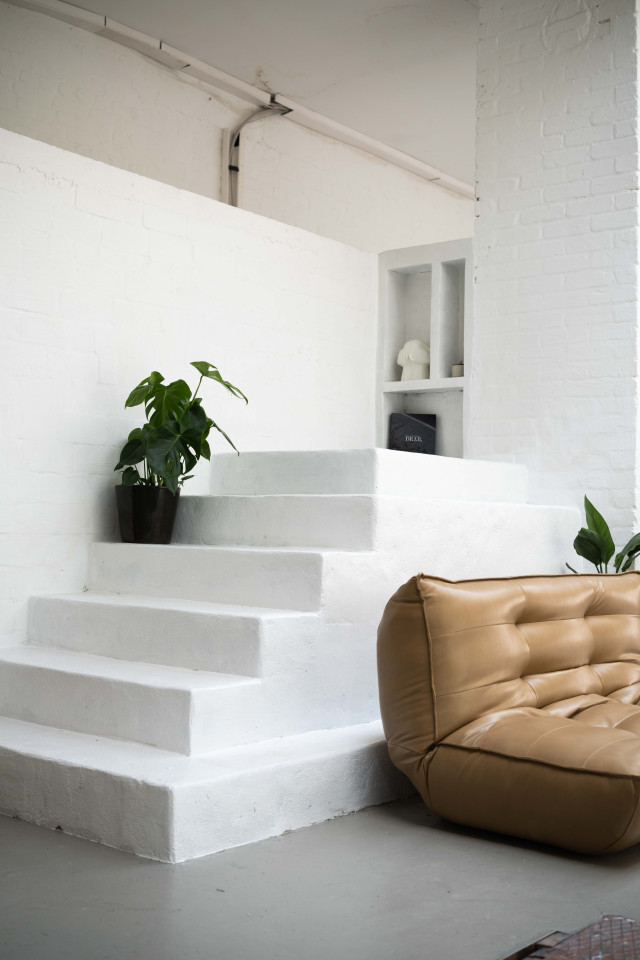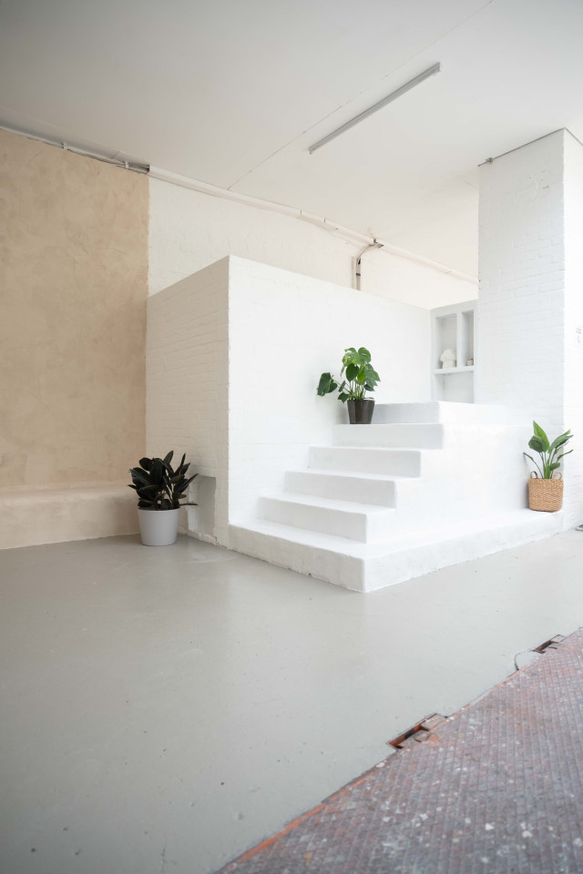 Il nostro studio al piano interrato è uno spazio completamente bianco di circa 200 mq con luce solare diretta e luci a soffitto attenuate, che consentono di creare foto e video con luce naturale. Lo studio è dotato anche di una cucina e di un giardino che potrete utilizzare per pranzare durante le vostre giornate di riprese, workshop, ecc.