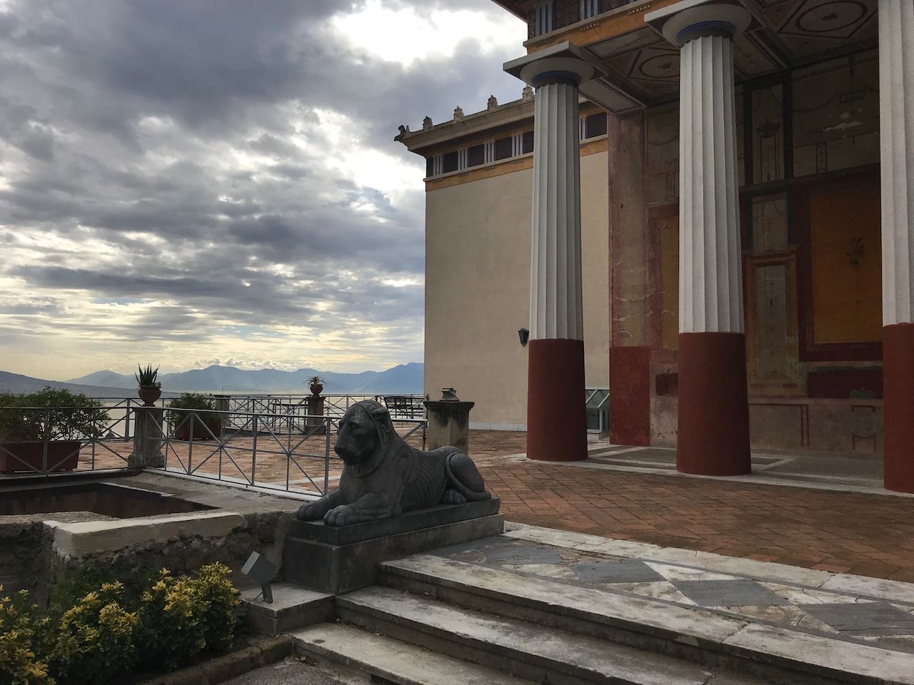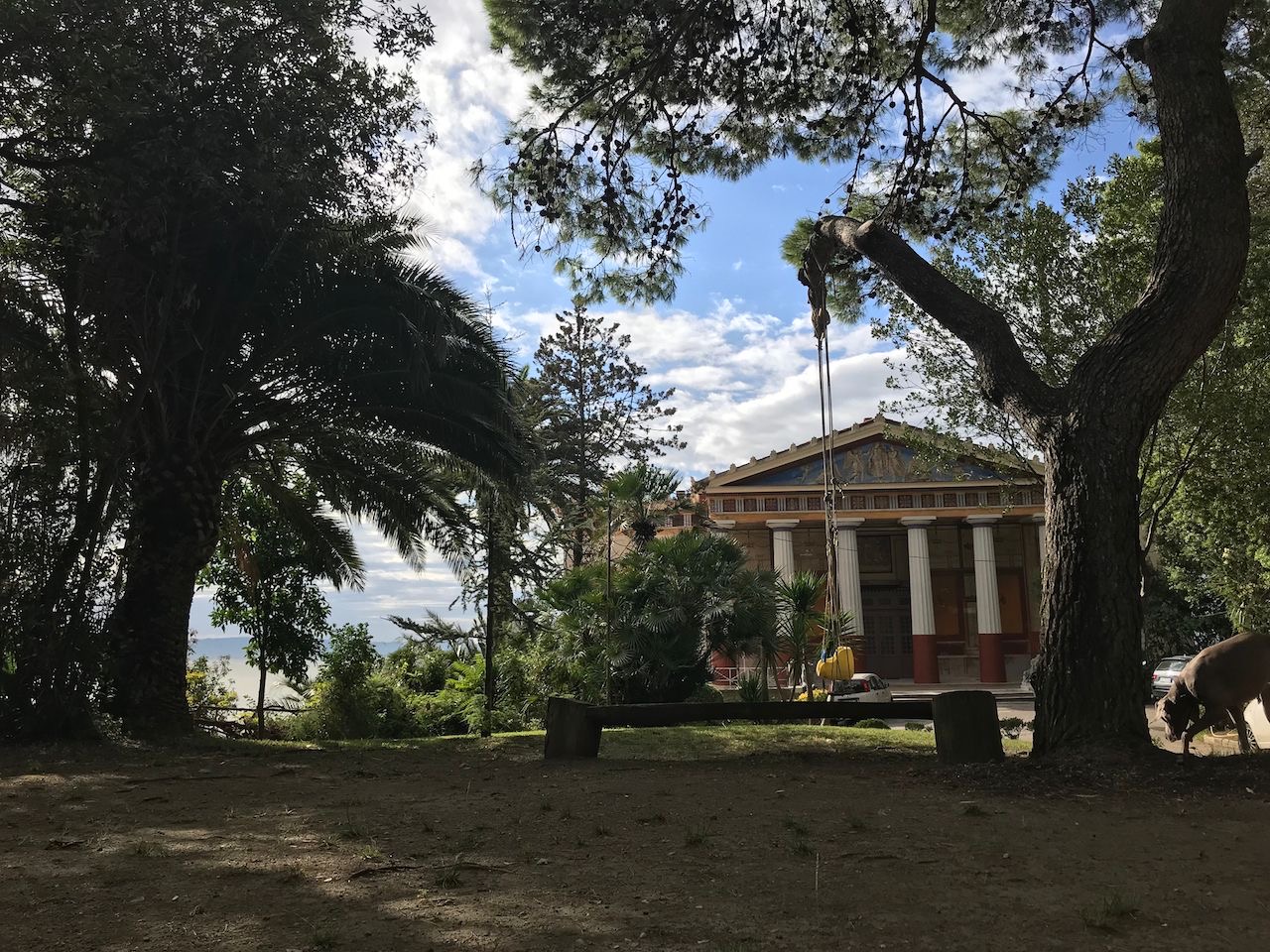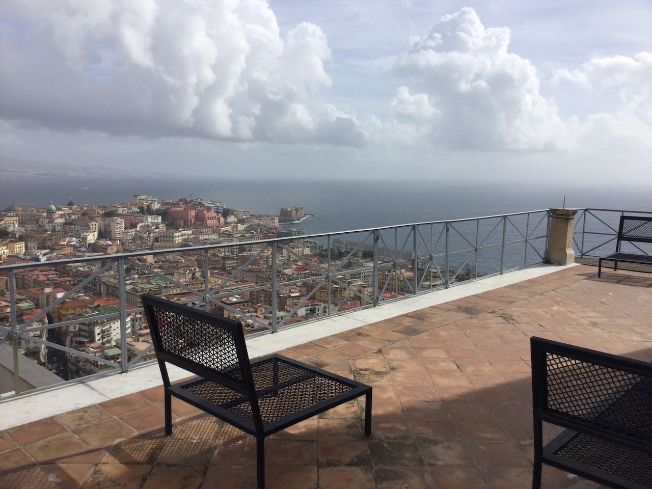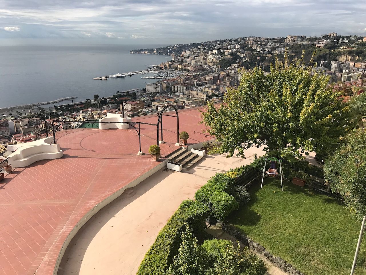 L'esterno della villa aggiunge ulteriore valore alla produzione. Diverse immagini mostrano ampie terrazze e sentieri del giardino che si affacciano su Napoli e sul mare, incorniciati da balaustre classiche e colonne architettoniche. Questi punti di osservazione sono eccellenti per le riprese con il drone, i momenti da eroe o le silhouette dell'ora d'oro. Le vedute si estendono dalla città alla costa, offrendo una luce d'atmosfera e una drammaticità visiva per tutto il giorno.