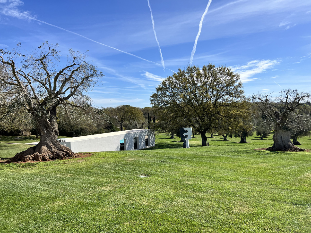 Gli spazi esterni sono splendidamente composti: gli edifici storici in pietra e i camminamenti evocano un'atmosfera da Europa meridionale, mentre la moderna villa bianca con grandi finestre e linee pulite aggiunge un contrasto sofisticato. I grandi prati, gli uliveti e il cortile panoramico offrono un ampio spazio e una profondità cinematografica per le scene all'aperto o per gli eventi all'aperto.